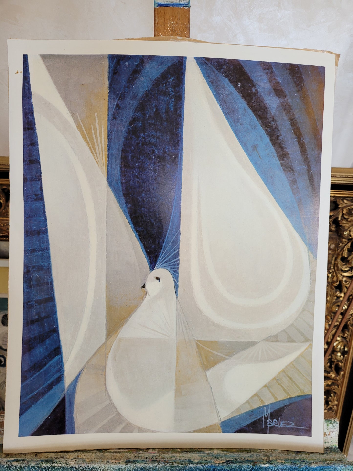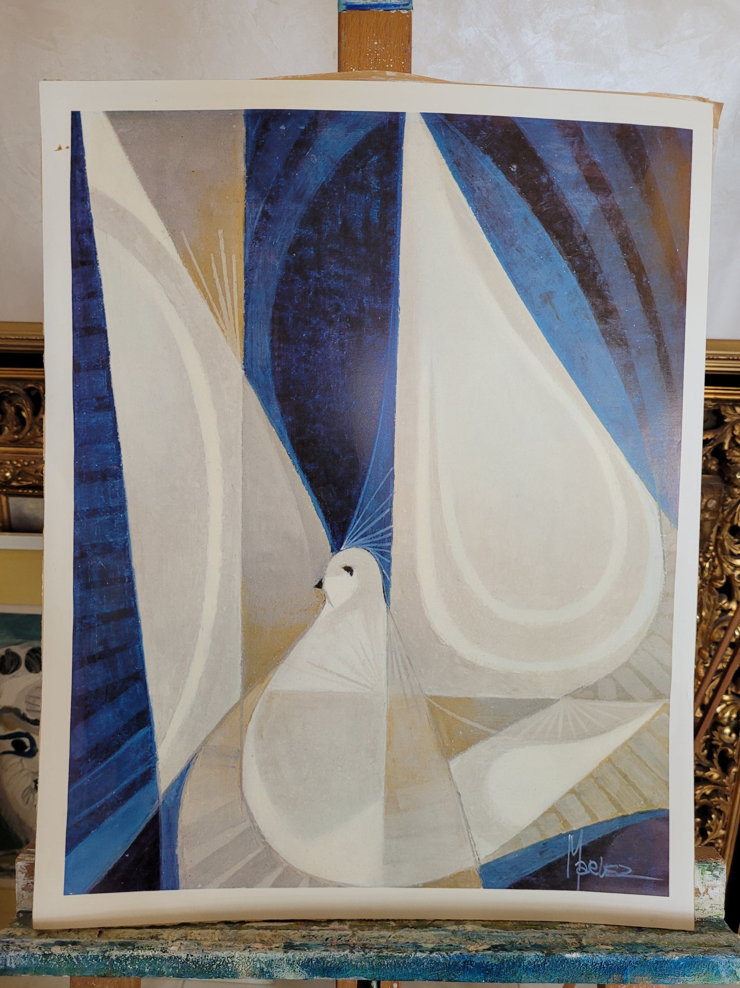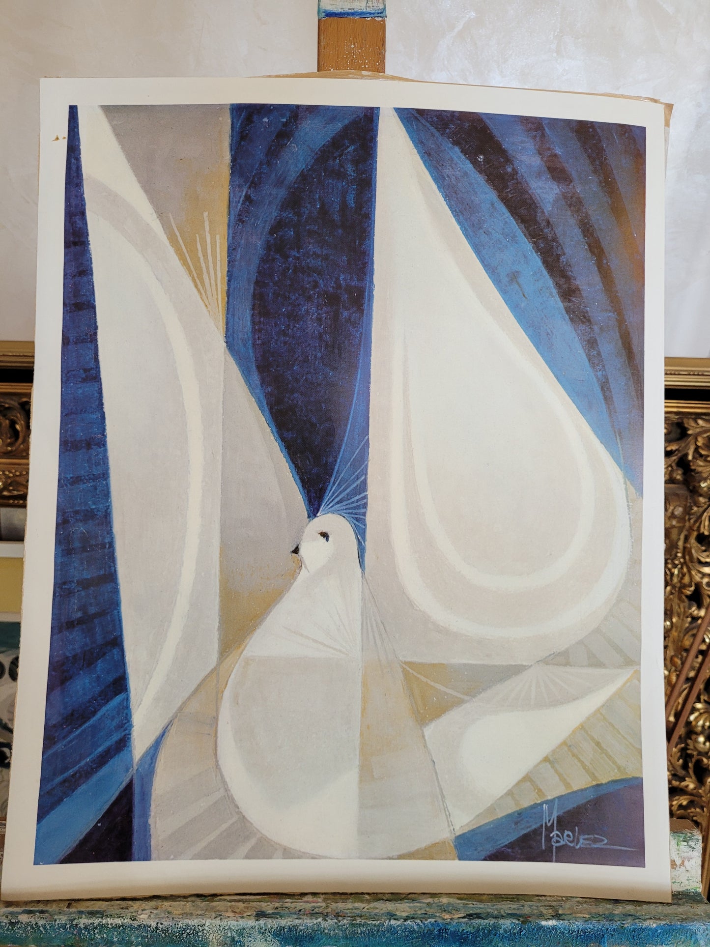 Grafik Multiple Kunst Anmut in Blau und Weiß Taube, Vogel
