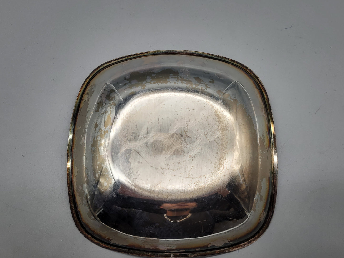 Beschreibung: Tauchen Sie ein in die Welt des Luxus vergangener Zeiten mit dieser wunderschönen antiken 835er Silberschale. Mit einem Gewicht von 160 g und Maßen von 17x17 cm strahlt diese Schale zeitlose Eleganz aus. Ihr sehr guter Zustand macht sie zu einem begehrten Sammlerstück für Liebhaber von antikem Silbergeschirr. Verleihen Sie Ihren besonderen Anlässen einen Hauch von Raffinesse und Stil mit diesem kunstvollen Stück.