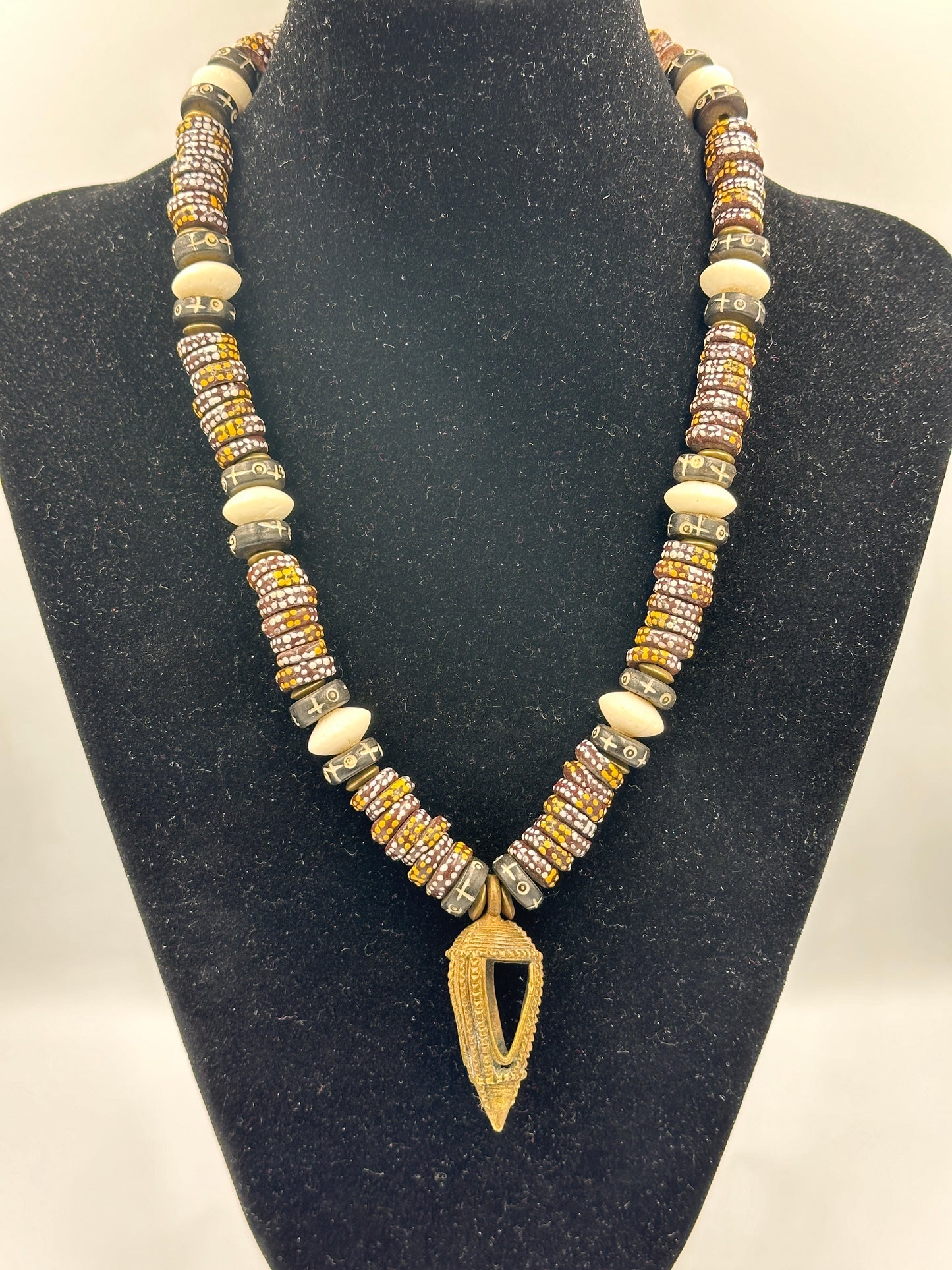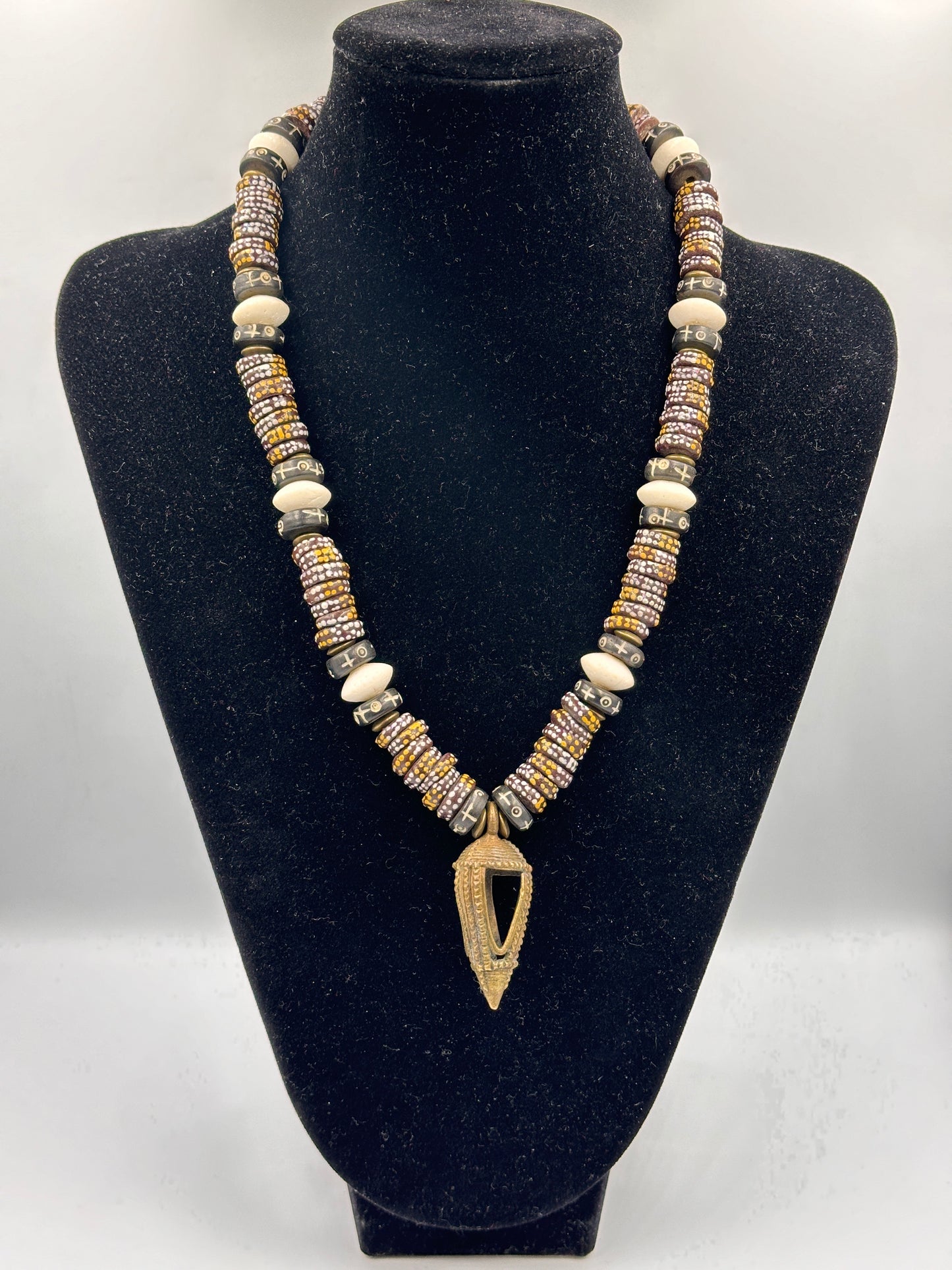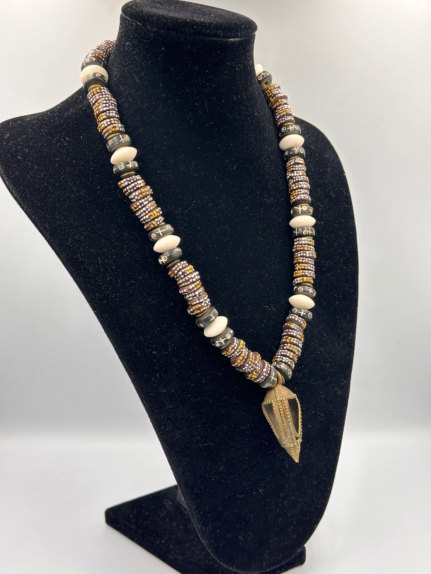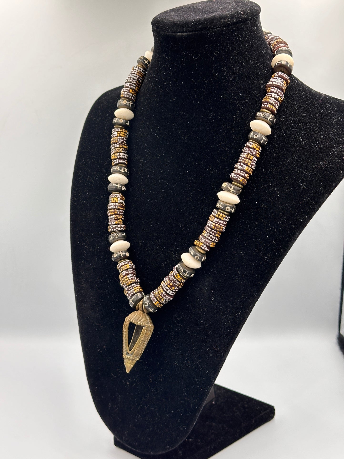 Erleben Sie die faszinierende Welt afrikanischer Handwerkskunst mit unserer antiken Halskette. Dieses einzigartige Schmuckstück ist nicht nur ein Accessoire, sondern auch ein Ausdruck von Geschichte und Kultur. Ideal für Liebhaber von Vintage-Schmuck und ethnischen Designs.