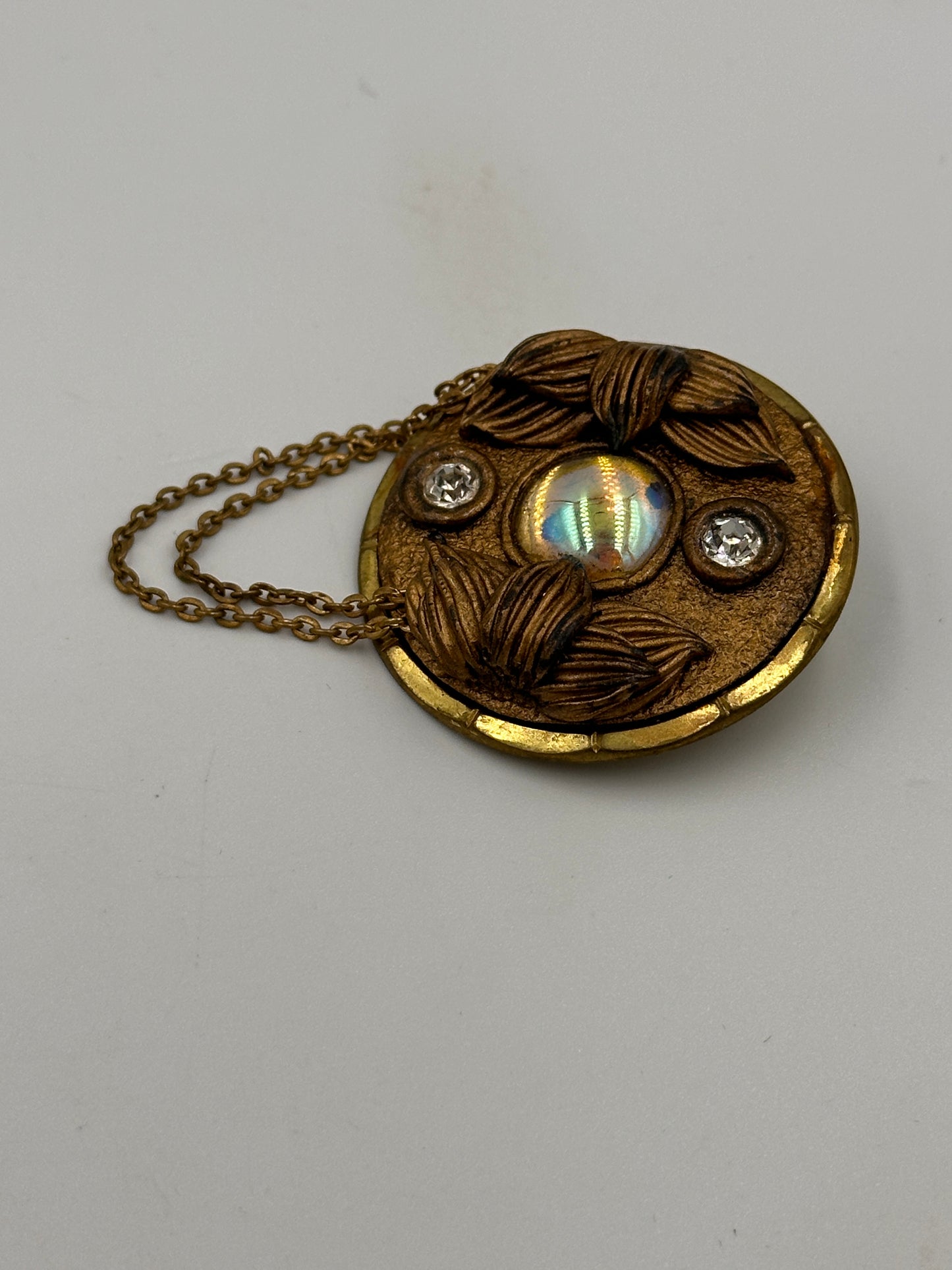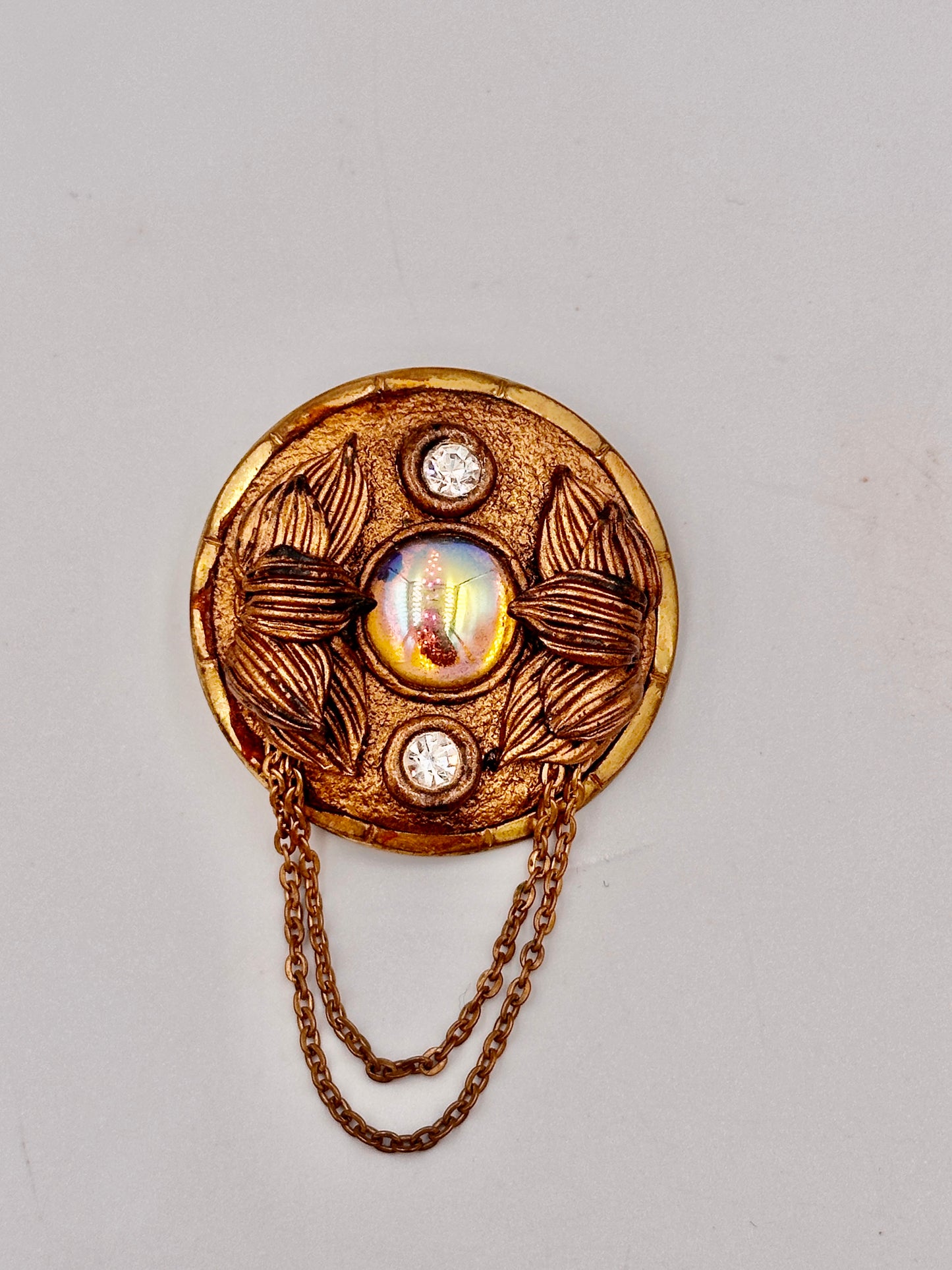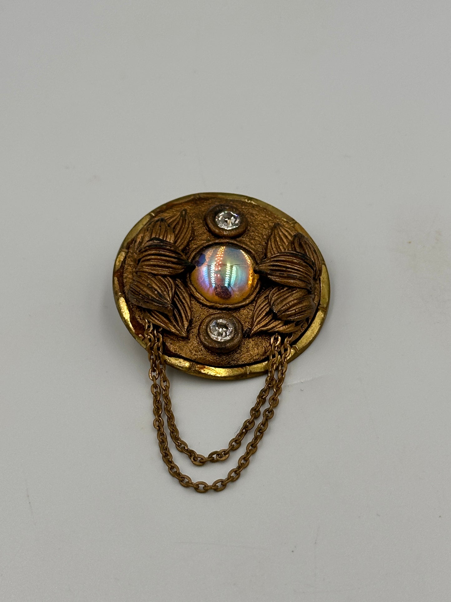 Antike Brosche Vergoldet mit Zirkonia Steinen