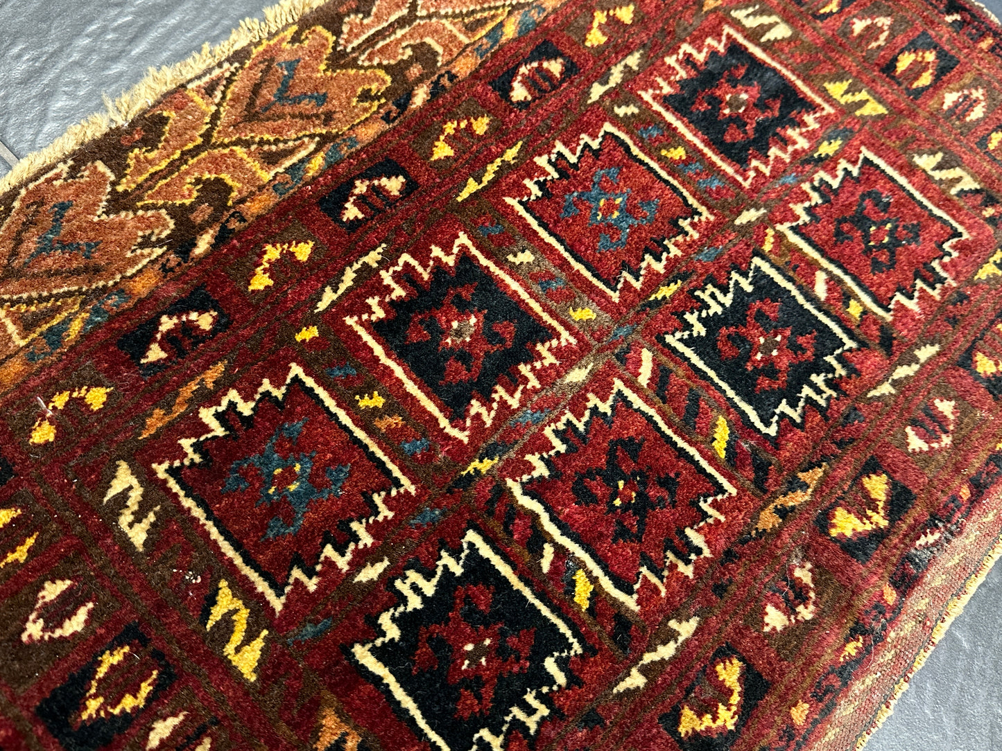 • Antike Gaschgai Shiraz Tasche: Ein kunstvolles Stück, das die Schönheit eines handgeknüpften Perser Orientteppichs in Ihr Zuhause bringt.