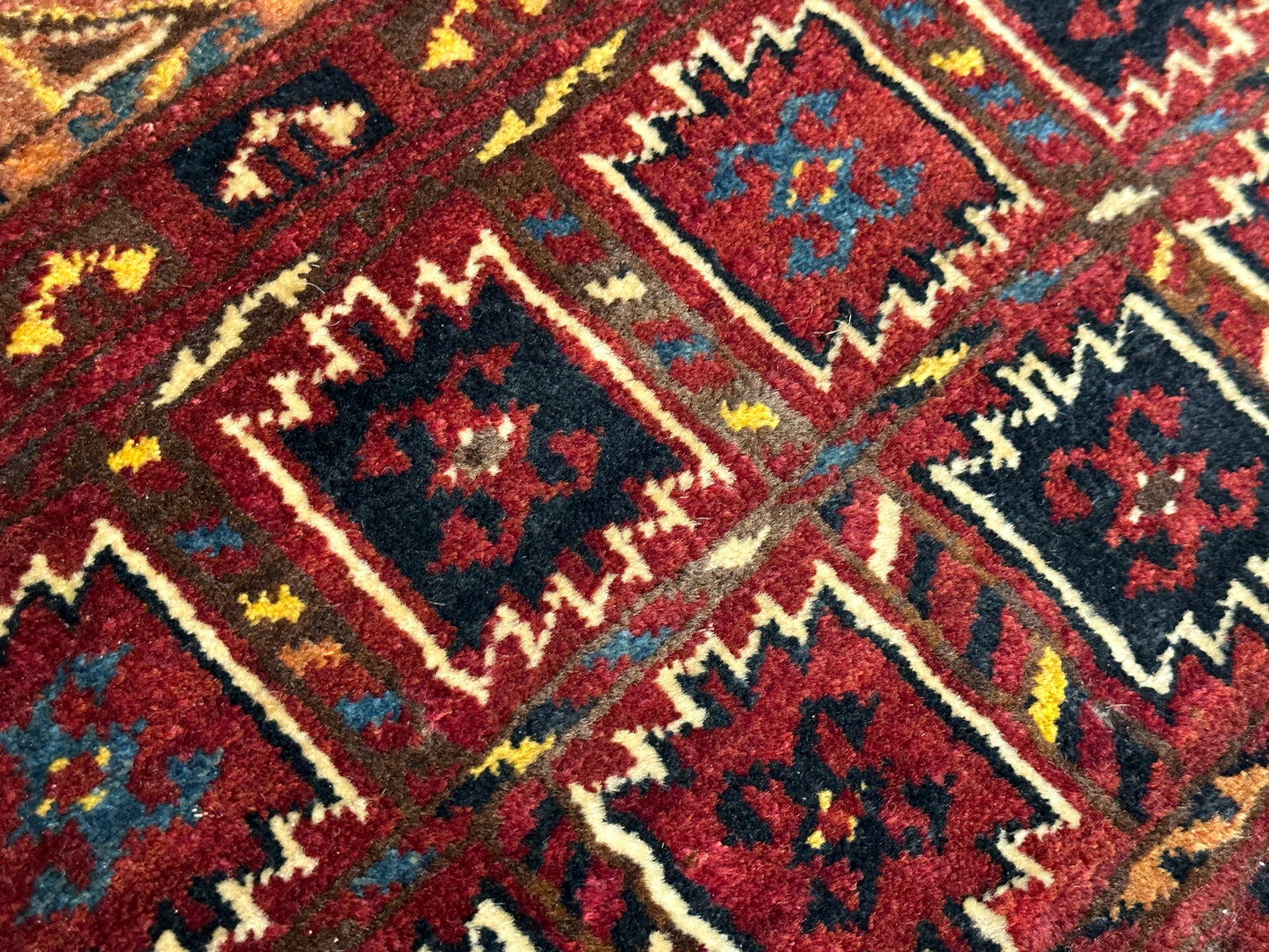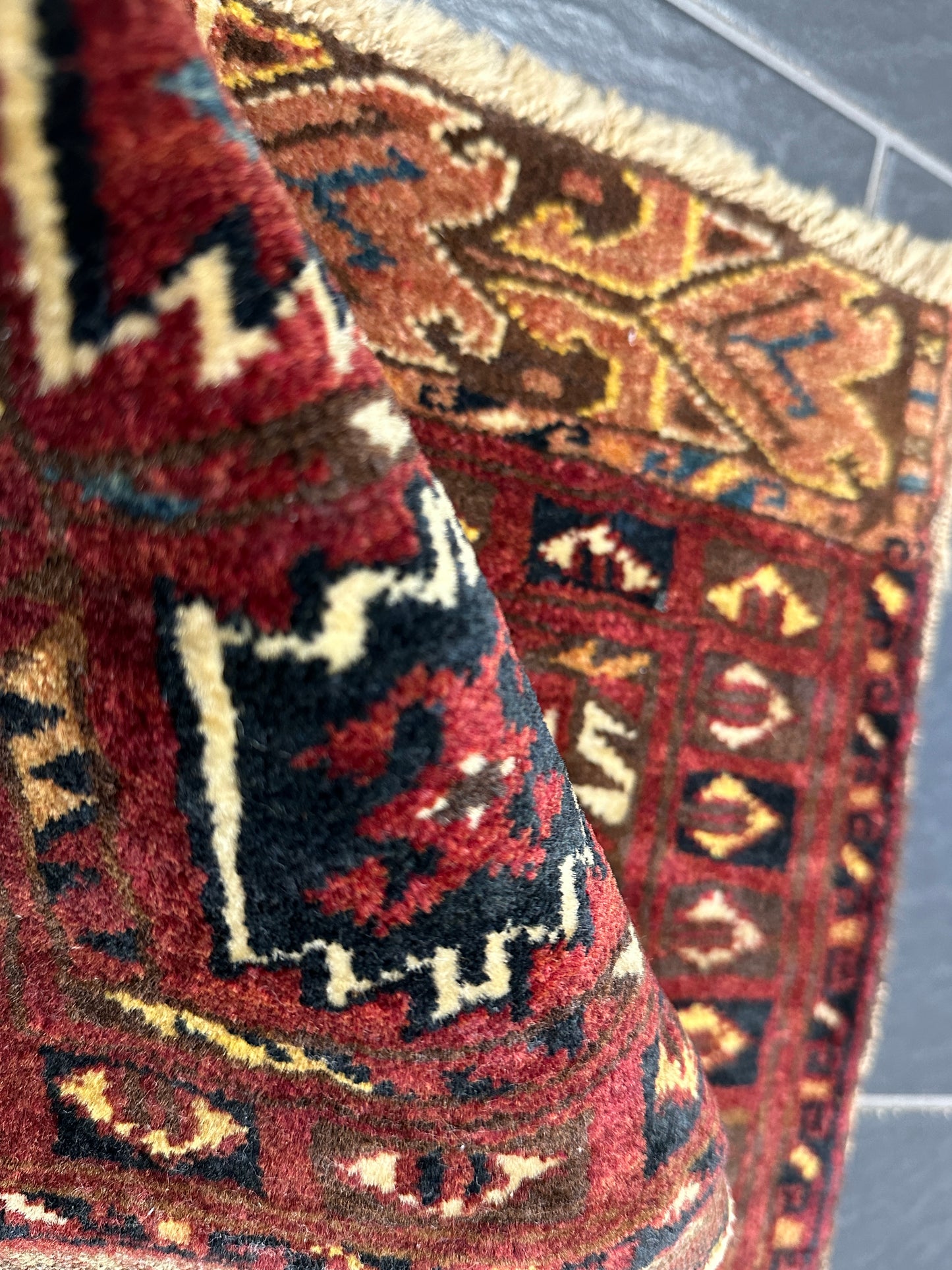 • Handgeknüpfte Präzision: Jeder Knoten wurde von geschickten Handwerkern sorgfältig platziert, um ein beeindruckendes Muster und eine robuste Struktur zu schaffen.