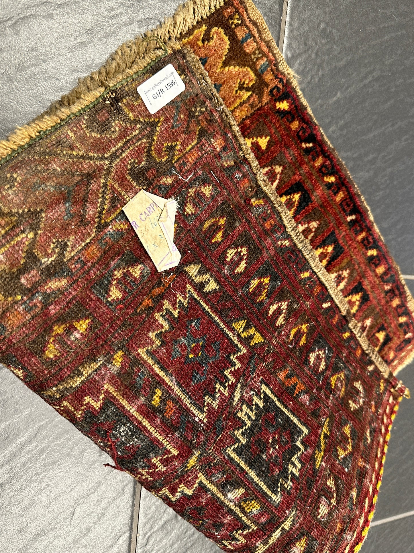 Titel: Antike Gaschgai Shiraz Tasche - Handgeknüpfter Perser Orientteppich - Neu - 44x64 cm - Artikelnummer GJ/R 1596
