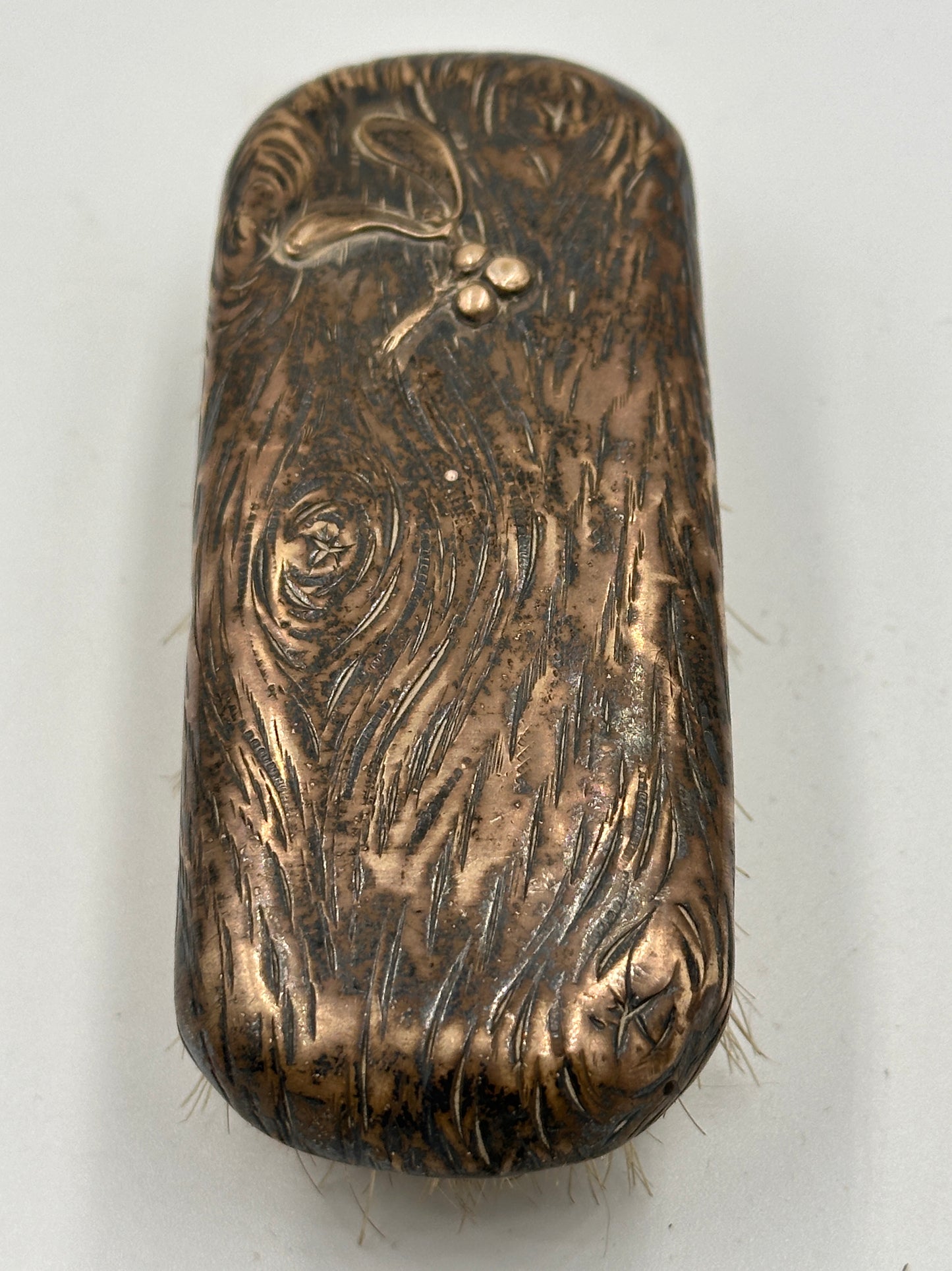 Diese antike Bürste besticht durch ihr zeitloses Design und die feine Handwerkskunst. Sie eignet sich hervorragend als stilvolles Accessoire für Ihre Kommode oder als besonderes Geschenk für Liebhaber antiker Stücke. Trotz ihres gebrauchten Zustands ist die Bürste gut erhalten und strahlt eine besondere Patina aus, die ihre Geschichte erzählt.