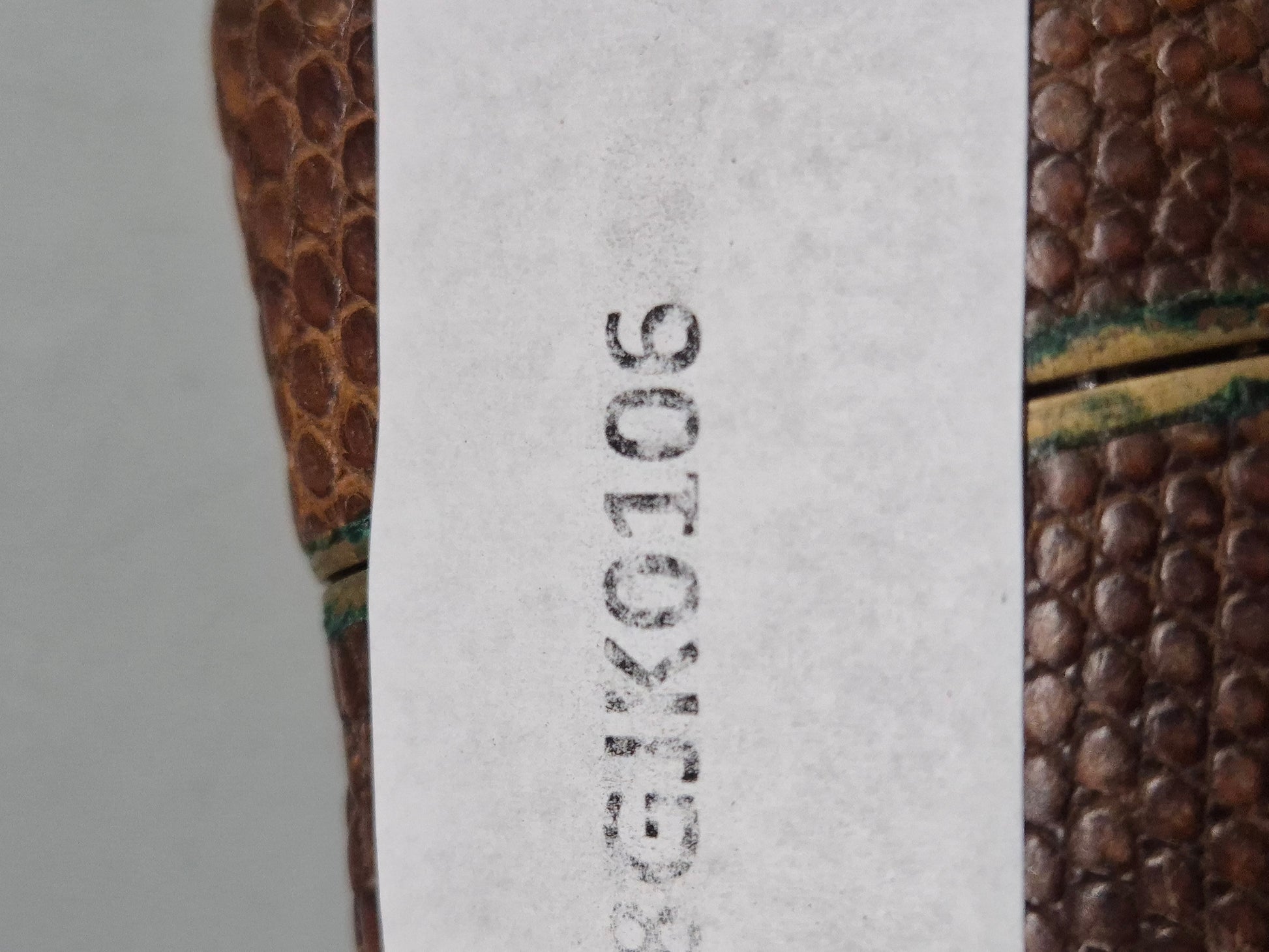 Schuber: Lederbezug, reptilähnliche Struktur (wahrscheinlich Lepidolith)