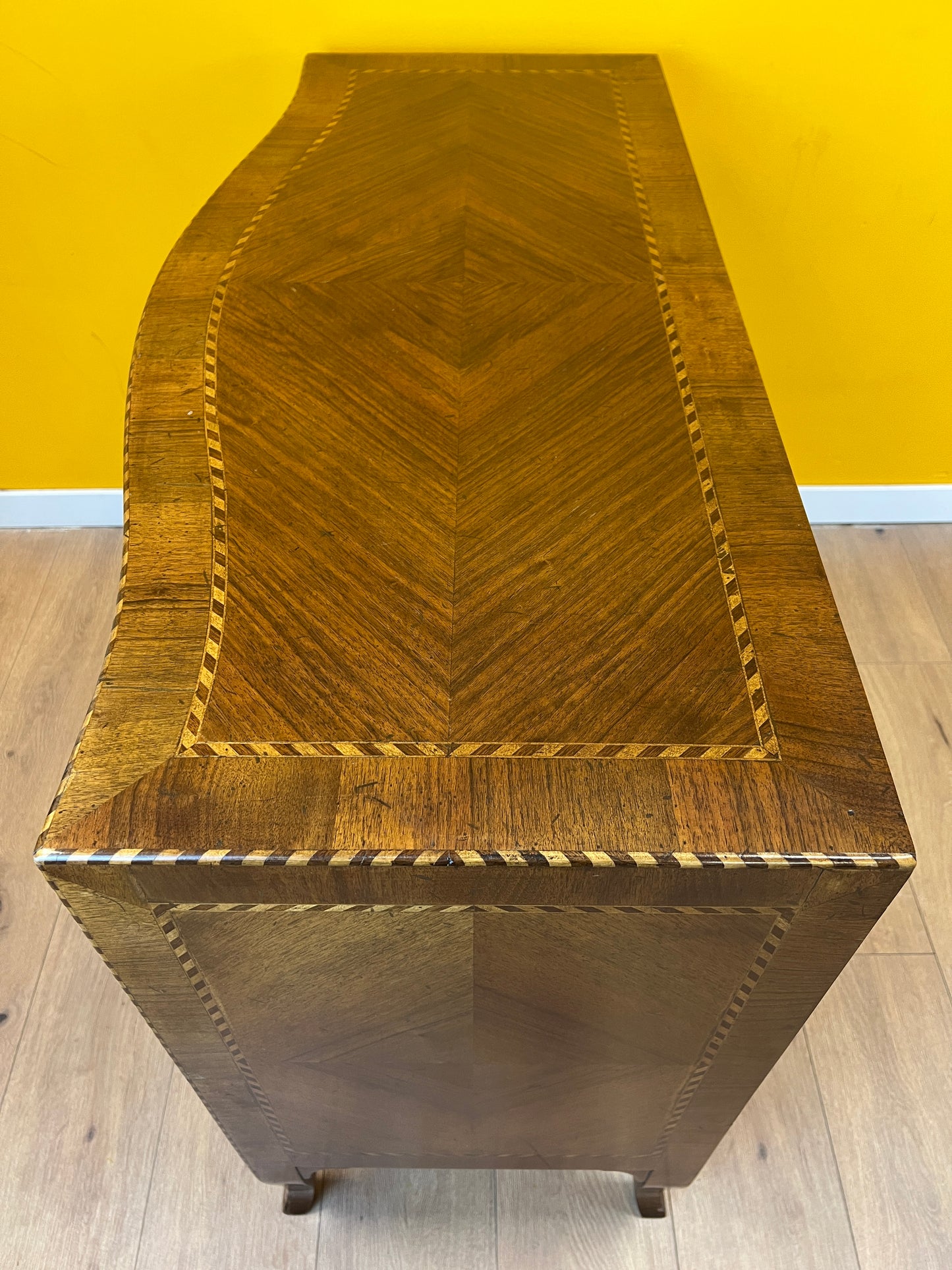 Profitieren Sie von unserem weltweiten Versandservice, der DHL, UPS und GLS umfasst. Ihre antike Kommode mit Holzintarsien wird sorgfältig verpackt und sicher zu Ihnen geliefert, damit Sie die zeitlose Eleganz dieses Möbelstücks in Ihrem Zuhause erleben können.