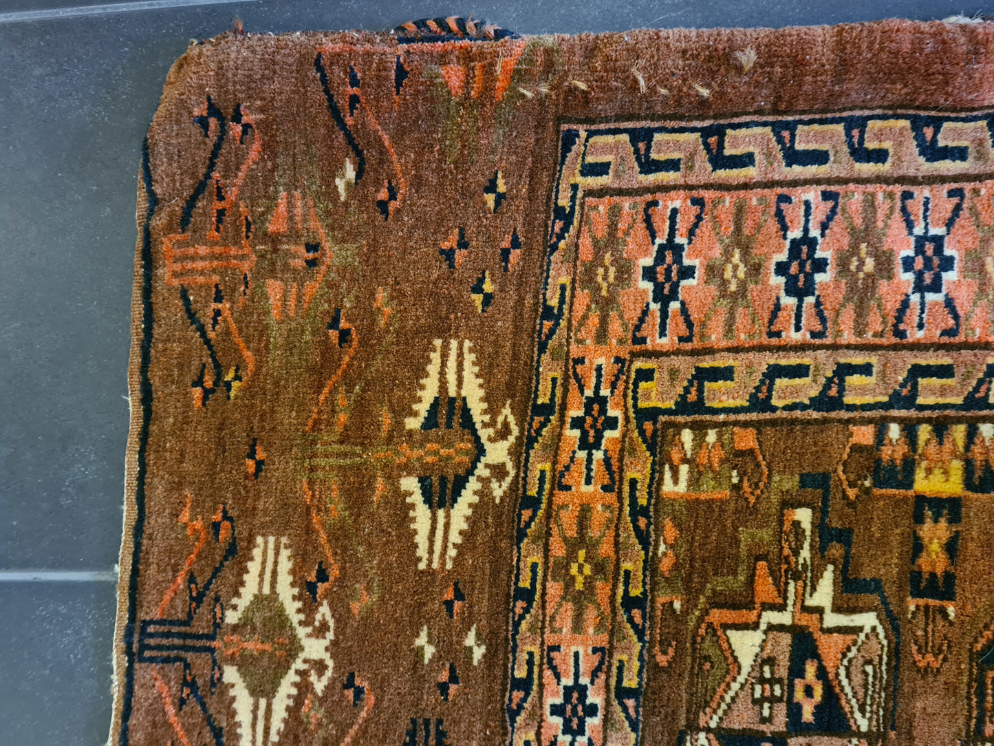 Dieses besondere Sammlerstück ist nicht nur ein kunstvolles Artefakt, sondern auch ein Fenster in die Vergangenheit, das die reiche Tradition der orientalischen Teppichherstellung widerspiegelt. Ideal für Sammler und Liebhaber von historischen Textilien, die auf der Suche nach einem einzigartigen Stück für ihre Sammlung sind.