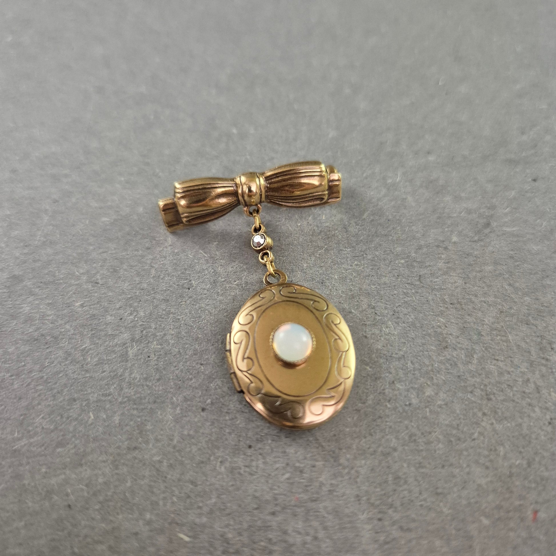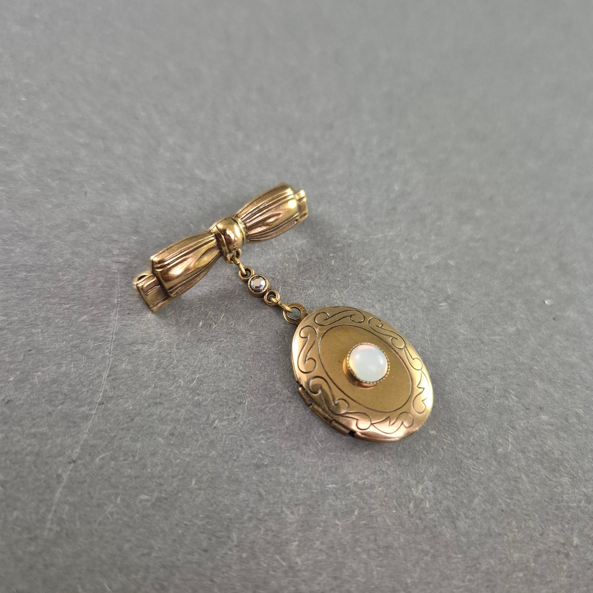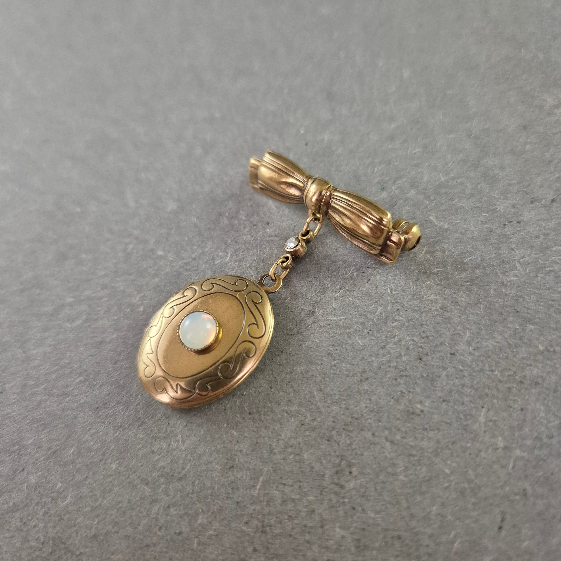 Antike Schleifen-Brosche mit Medaillon – Opaloptik & Fotofach