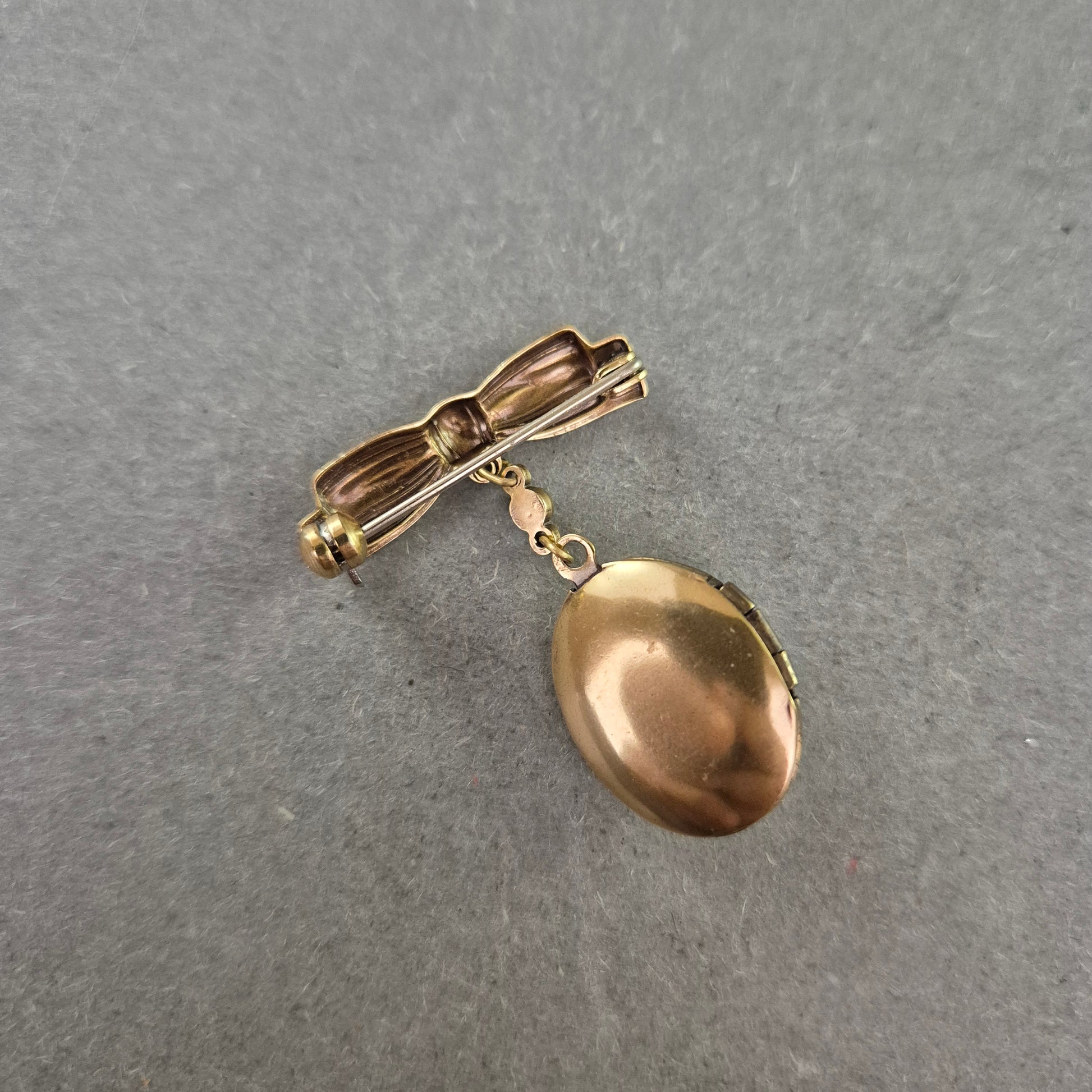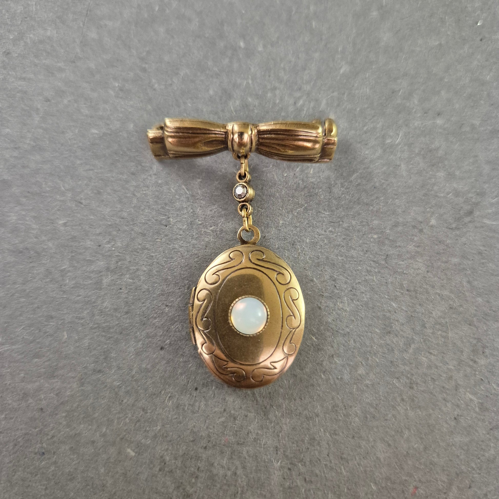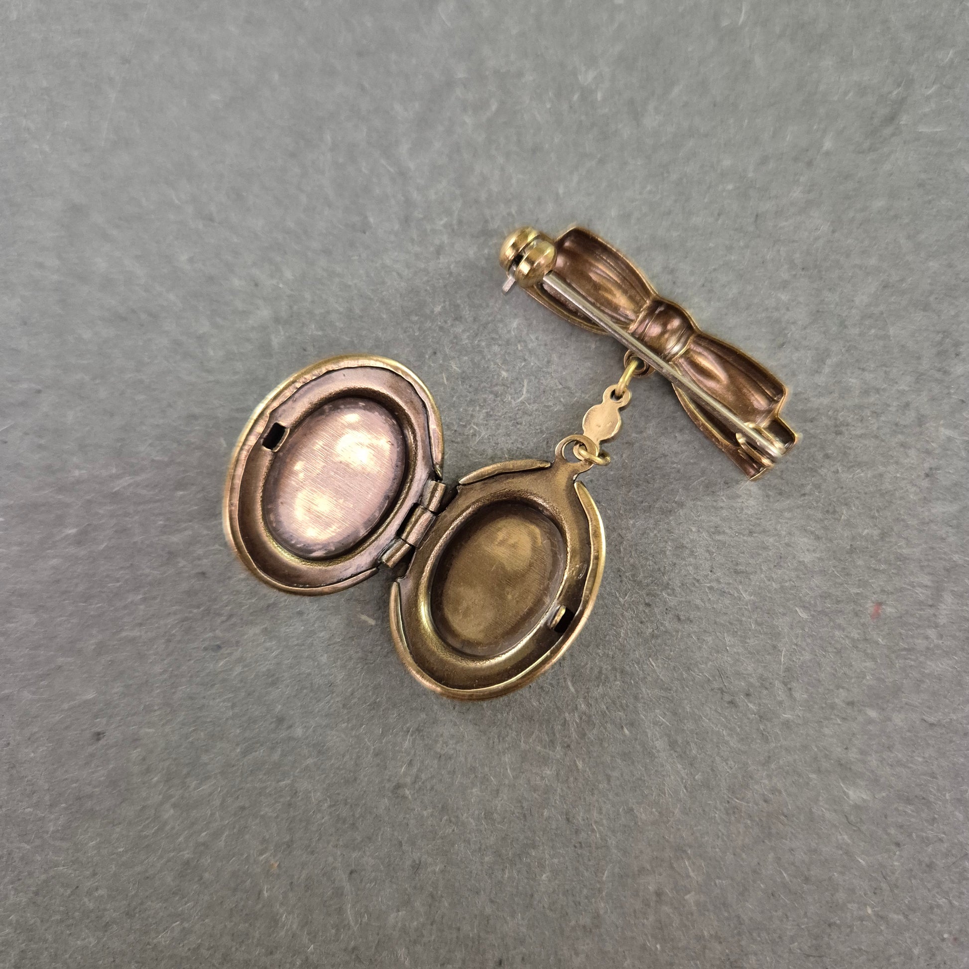 Antike Schleifen-Brosche mit Medaillon – Opaloptik & Fotofach