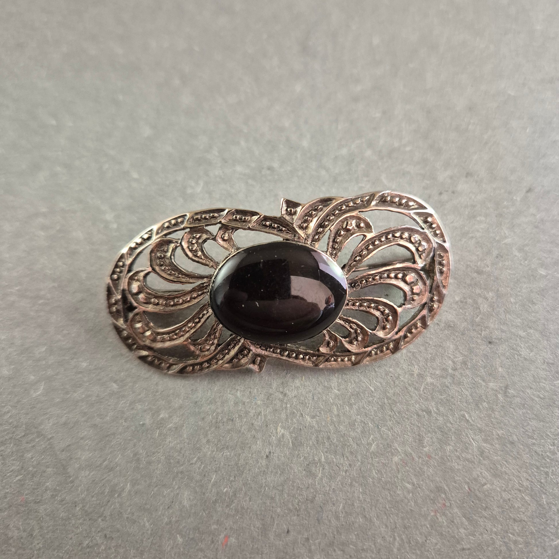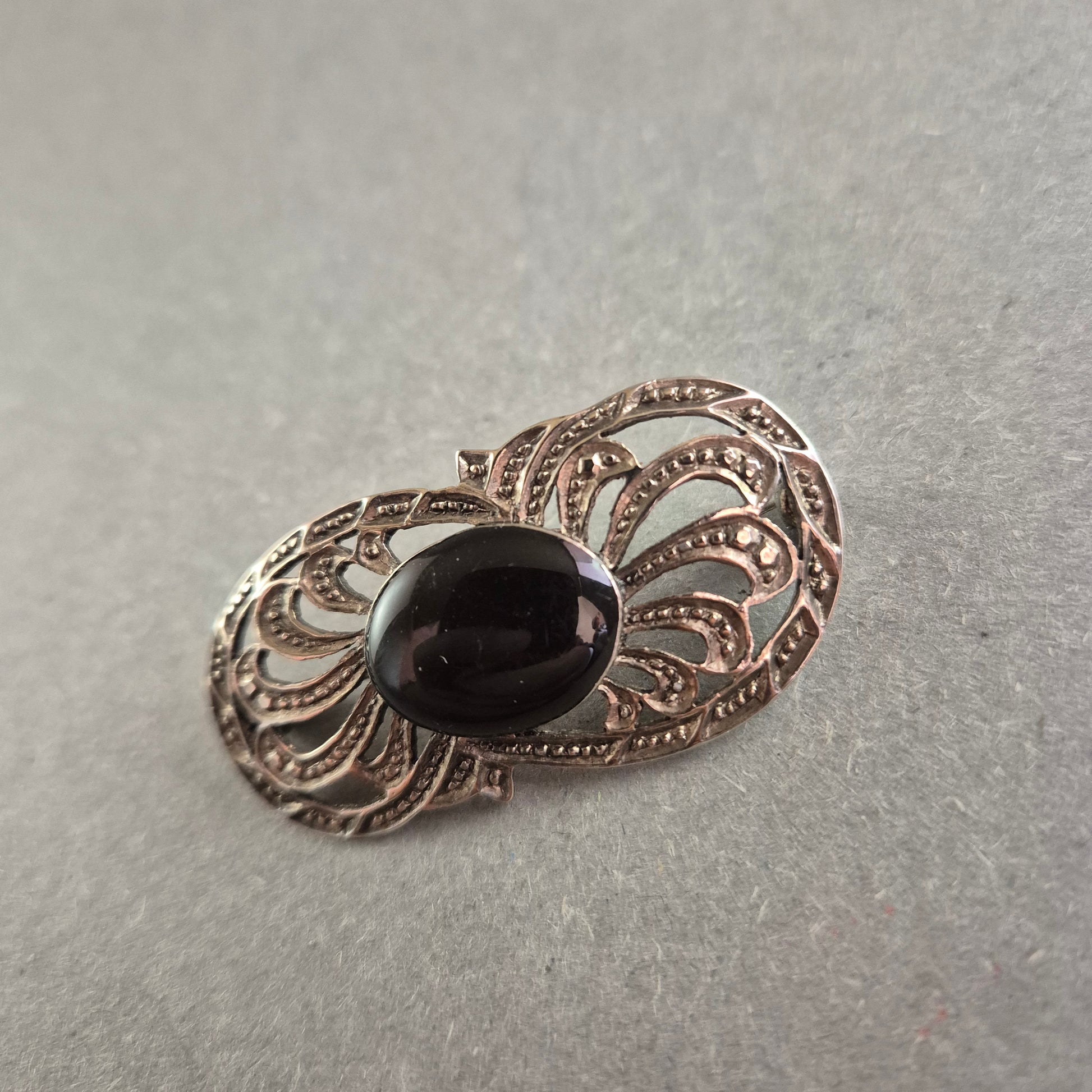 Antike Silberbrosche mit Onyx – Elegantes Jugendstil-Design