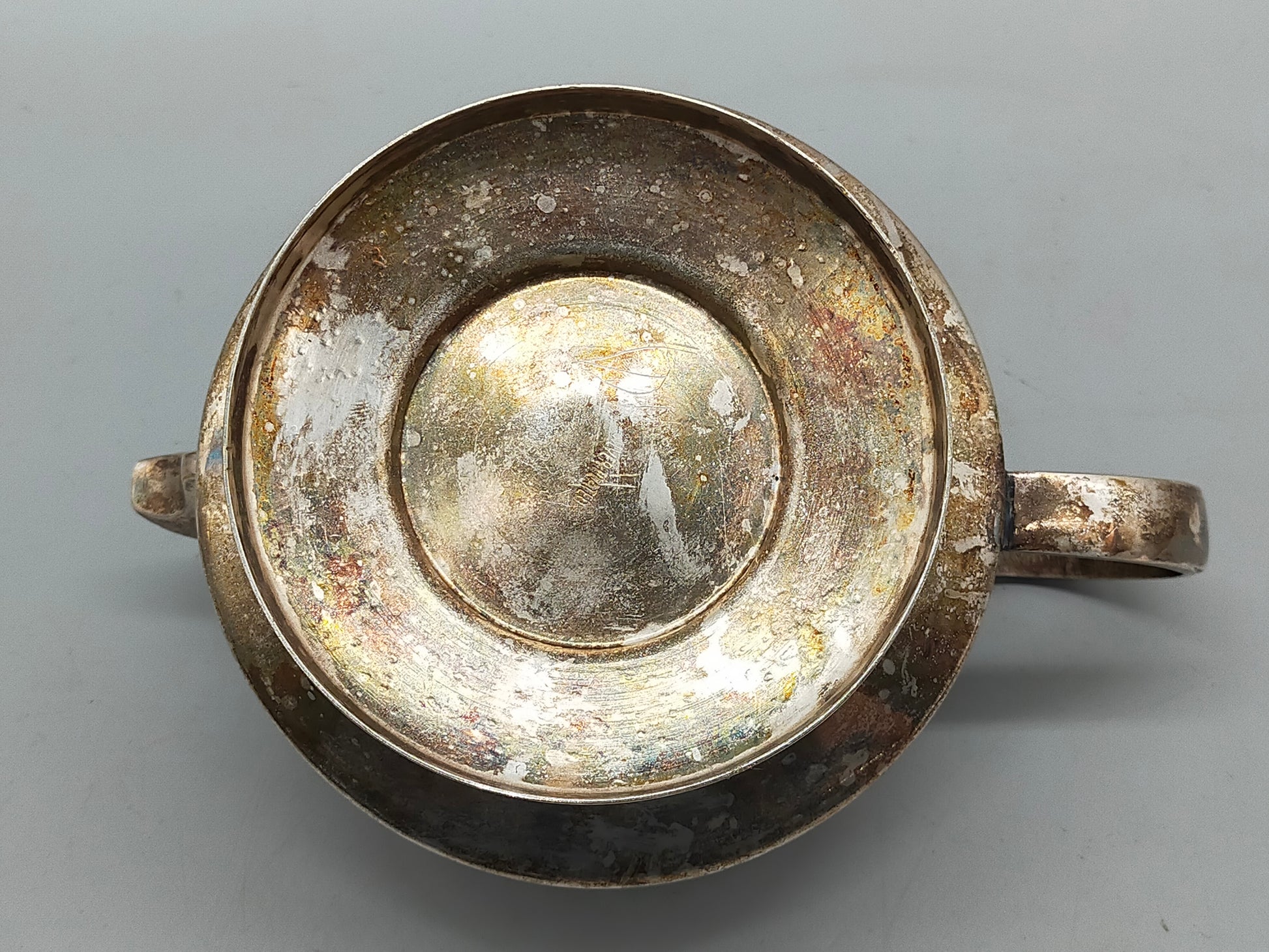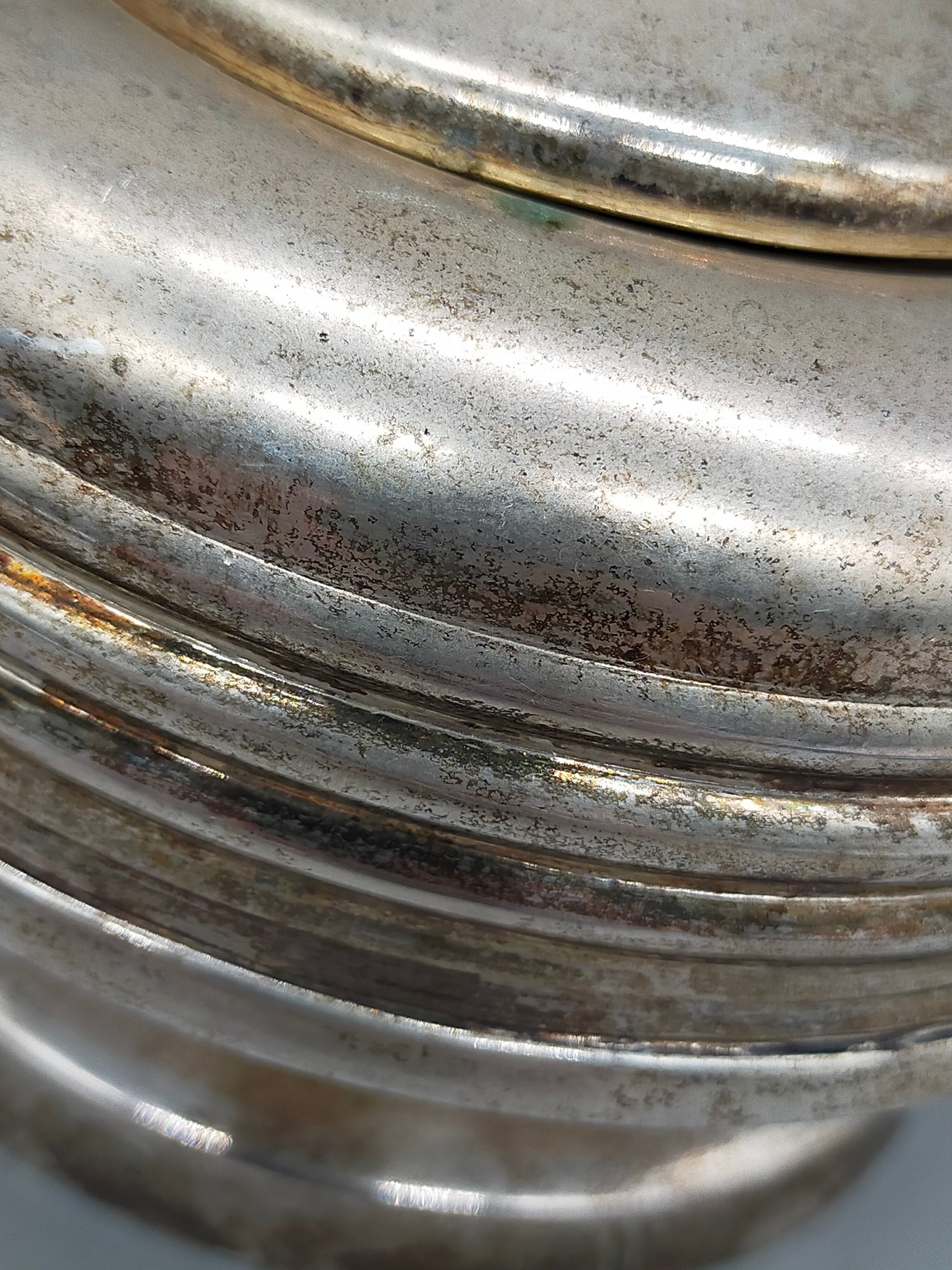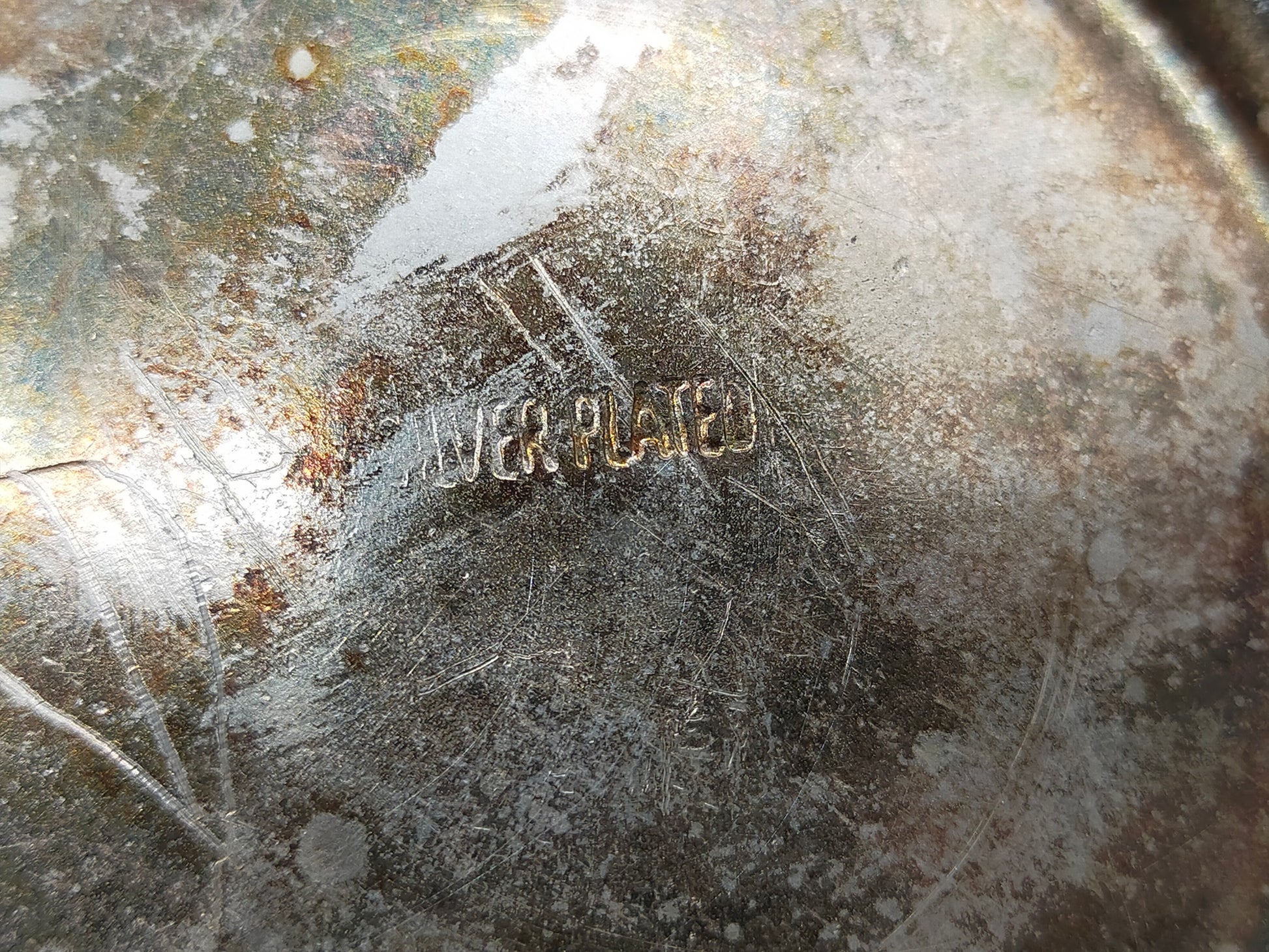 Zustand: Gebrauchter Zustand mit altersbedingter Patina und Abrieb der Versilberung, was den antiken Charme unterstreicht. Die Bilder sind Teil der Zustandsbeschreibung.