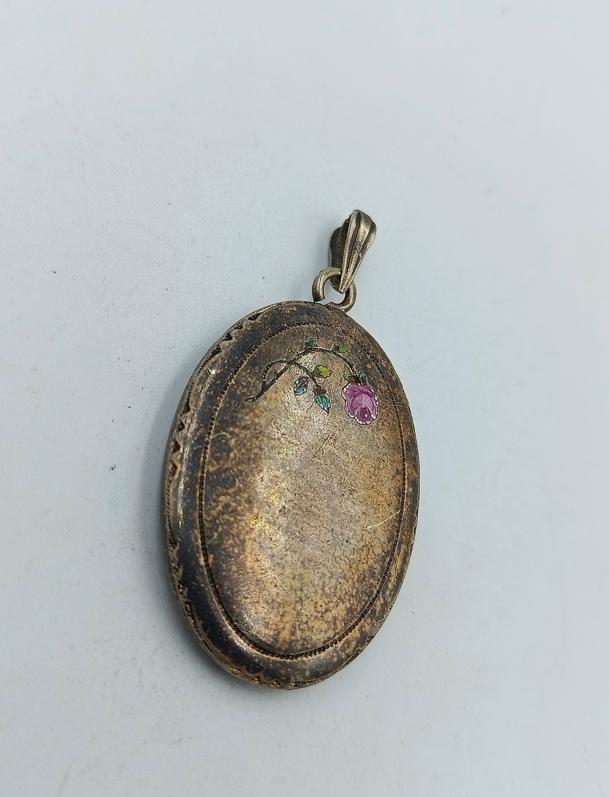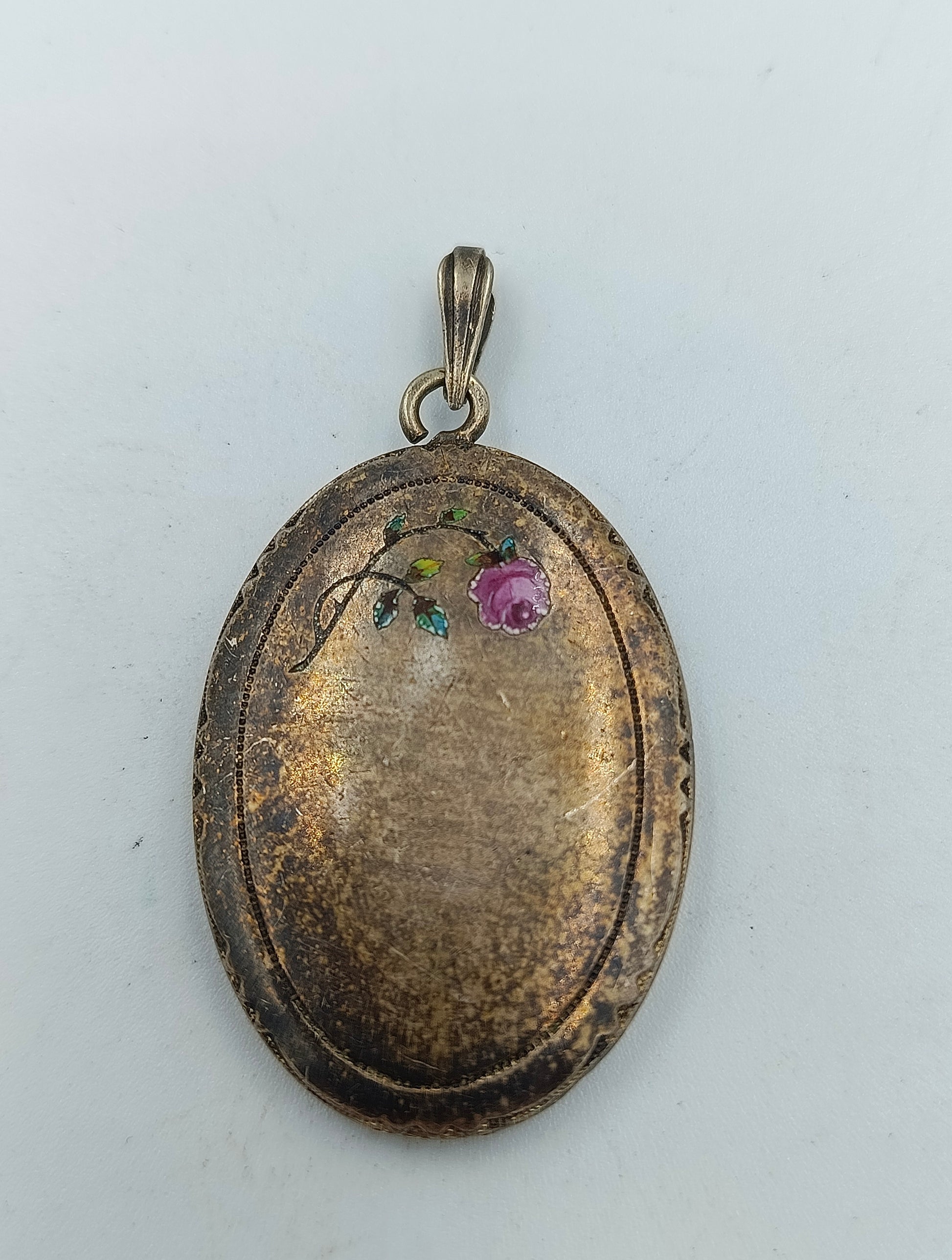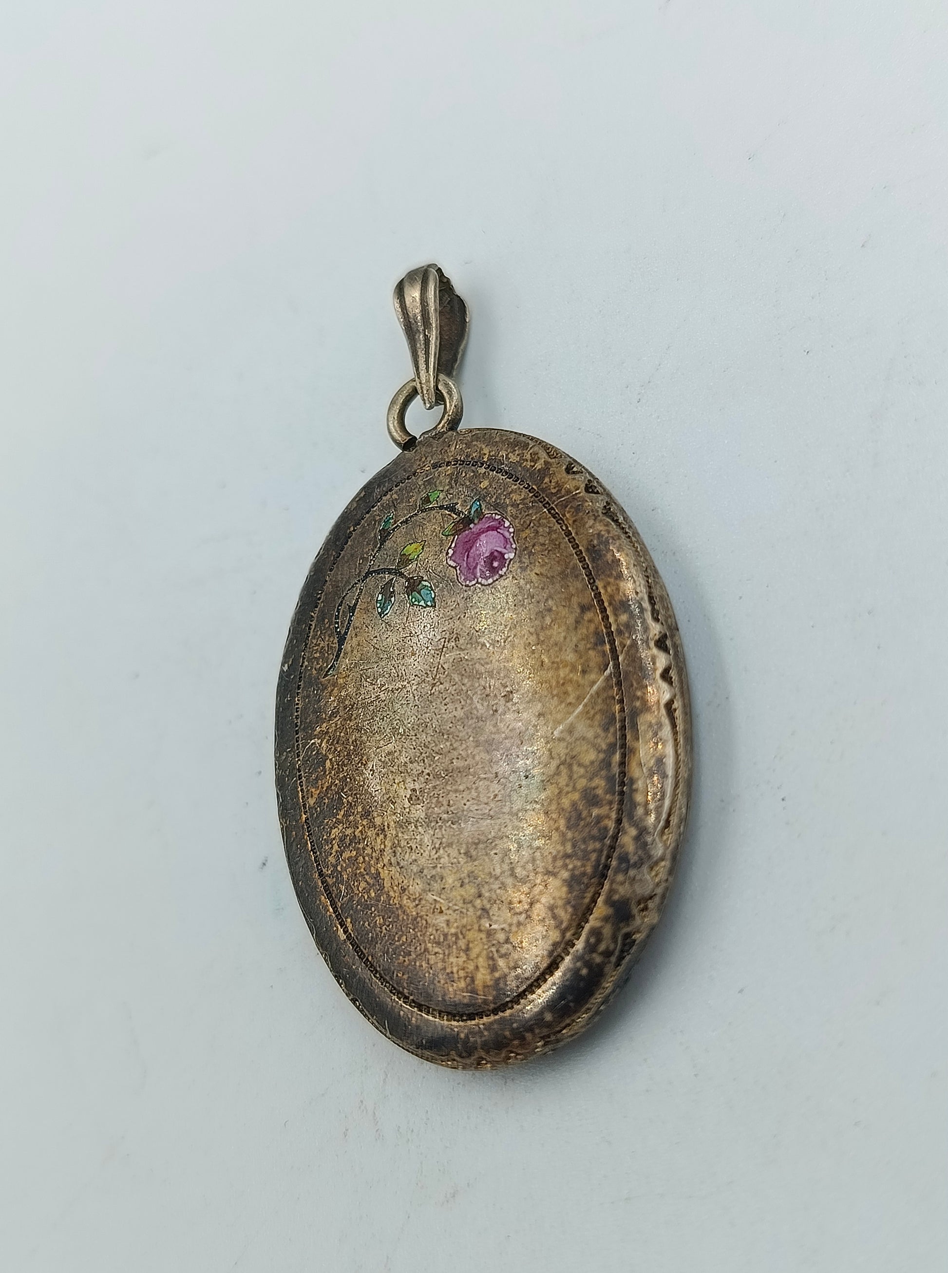 Antiker Alpacca Anhänger mit handbemalter Blume