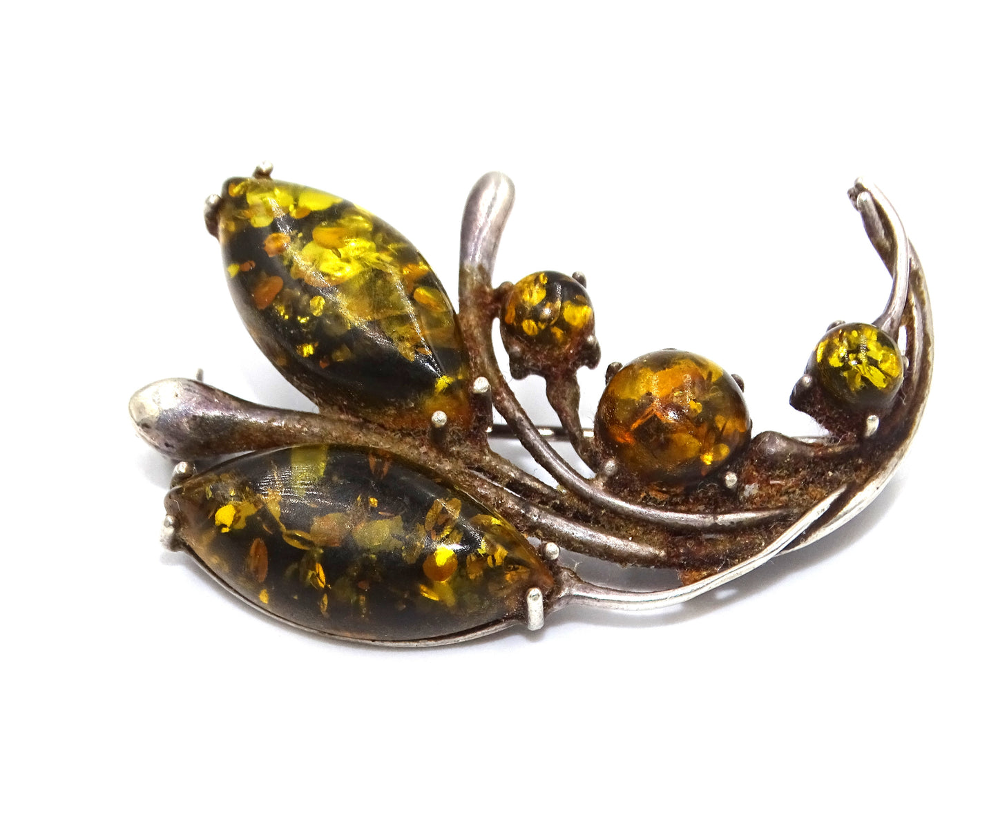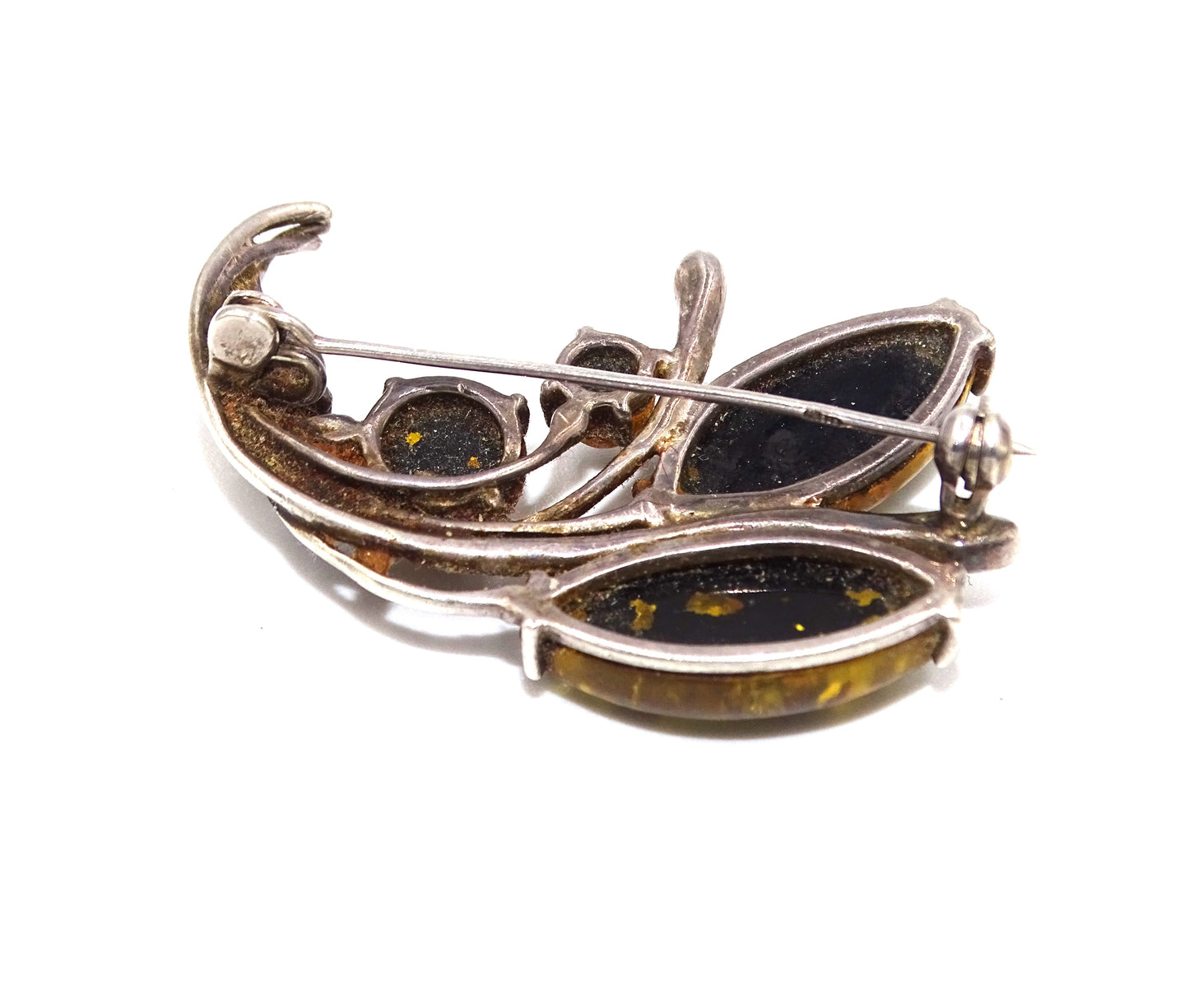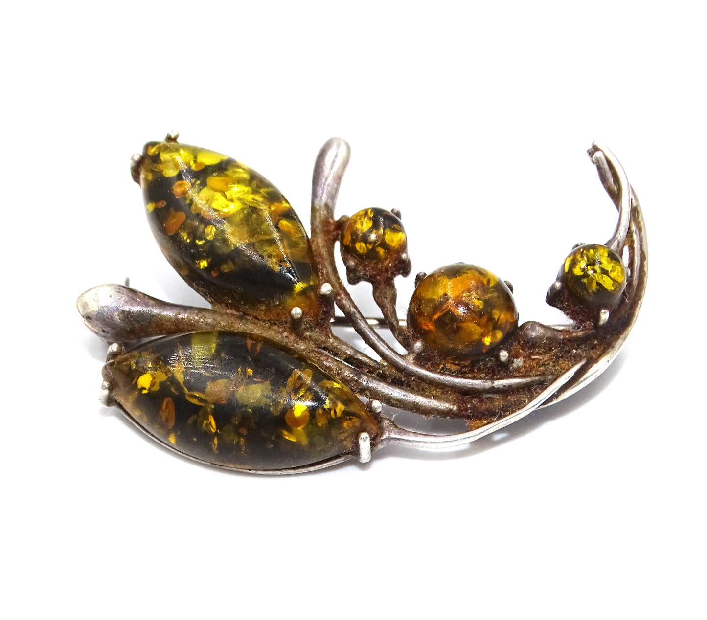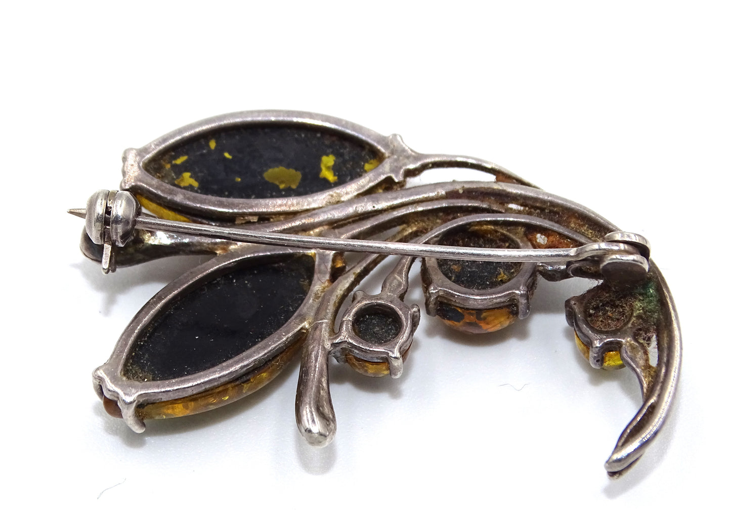 Antiker Anhänger mit gelbem Bernstein in 925er Silber