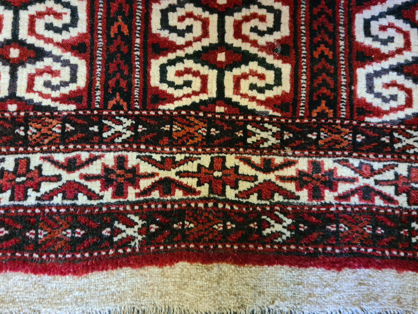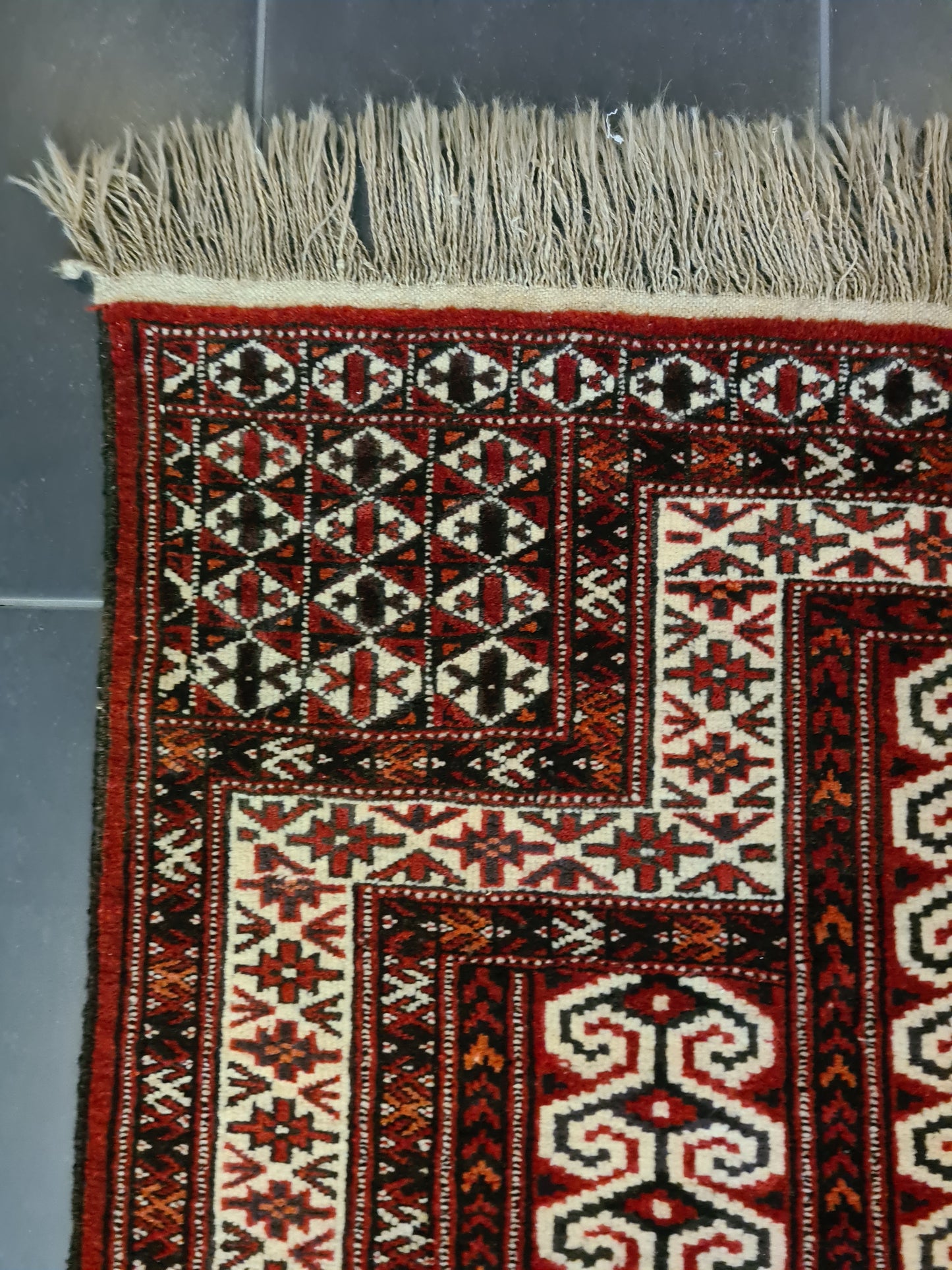 Mit einem Alter von etwa 70 Jahren ist dieser Teppich nicht nur ein dekoratives Stück, sondern auch ein wertvolles Sammlerobjekt. Seine Farben und die feine Verarbeitung sind hervorragend erhalten, was ihn zu einer seltenen und begehrten Antiquität macht. Ideal für Liebhaber antiker Orientteppiche und all jene, die ihrem Raum eine authentische und historische Atmosphäre verleihen möchten.