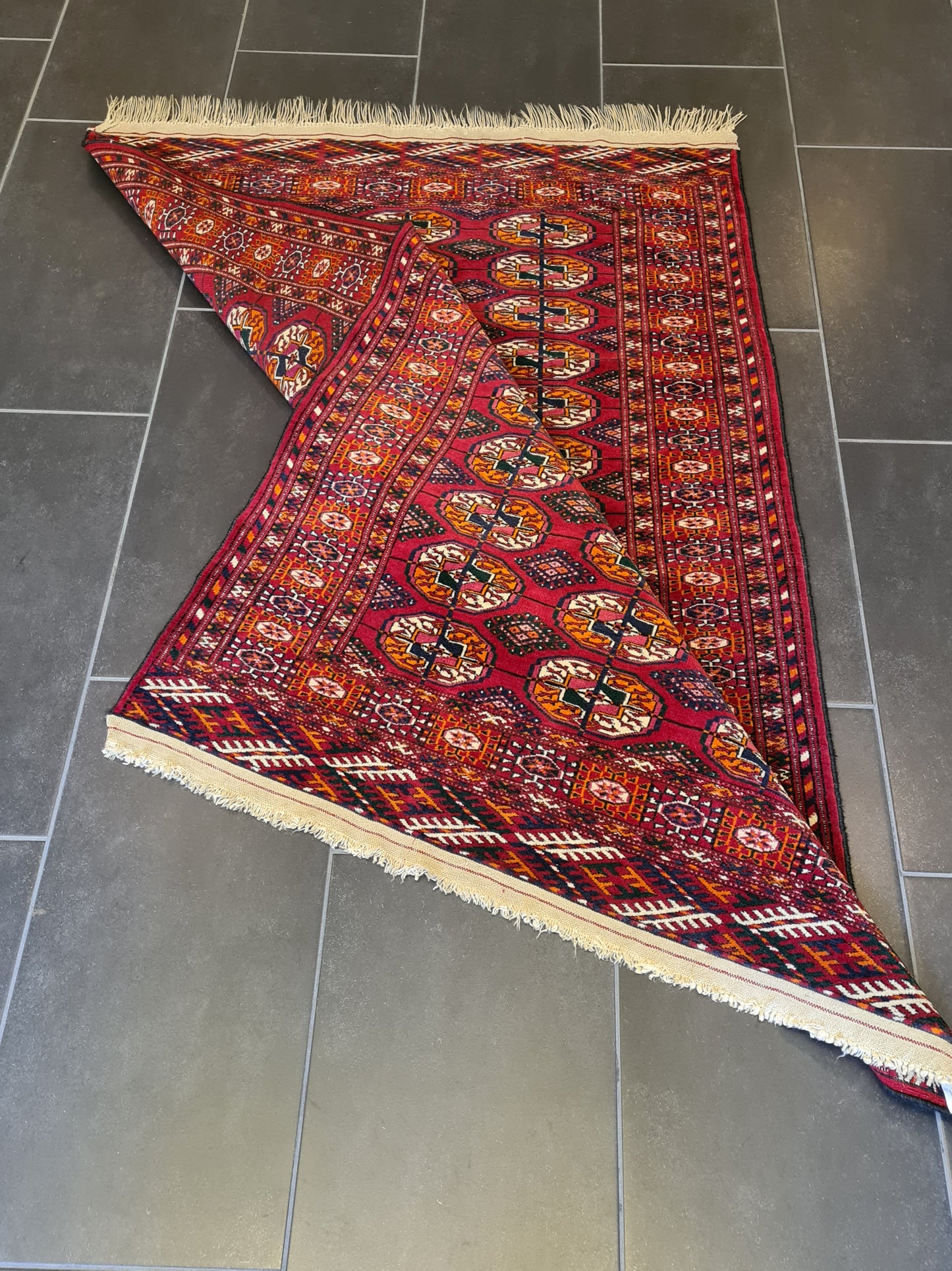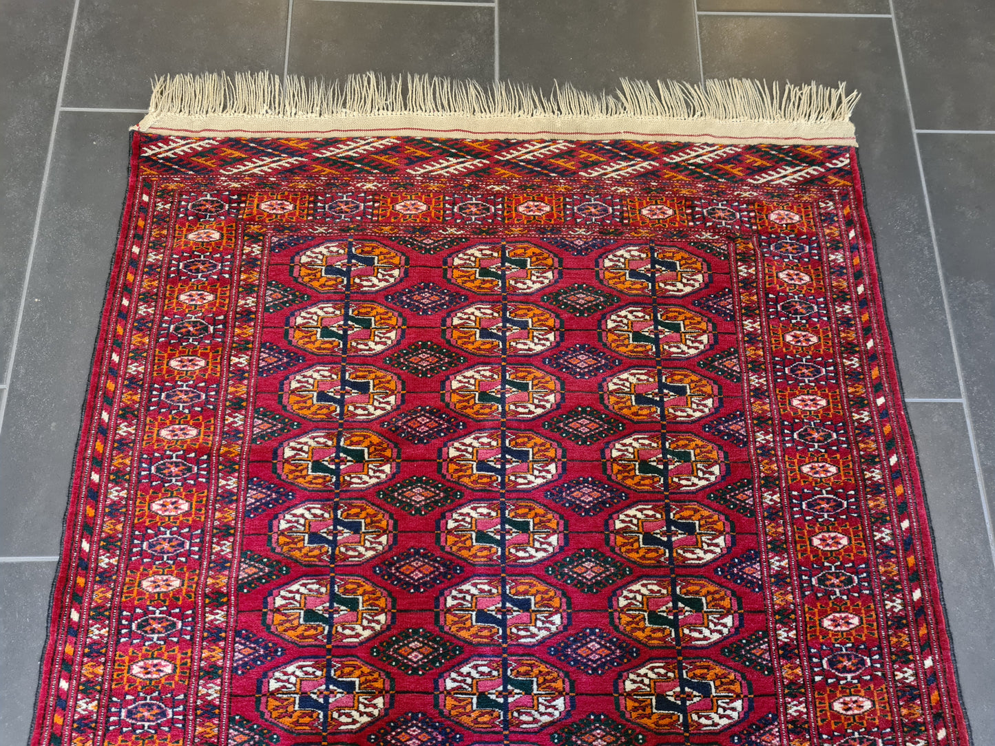 • Herkunft: Turkmenistan – handgeknüpft von den talentierten Teppichknüpfern der Region