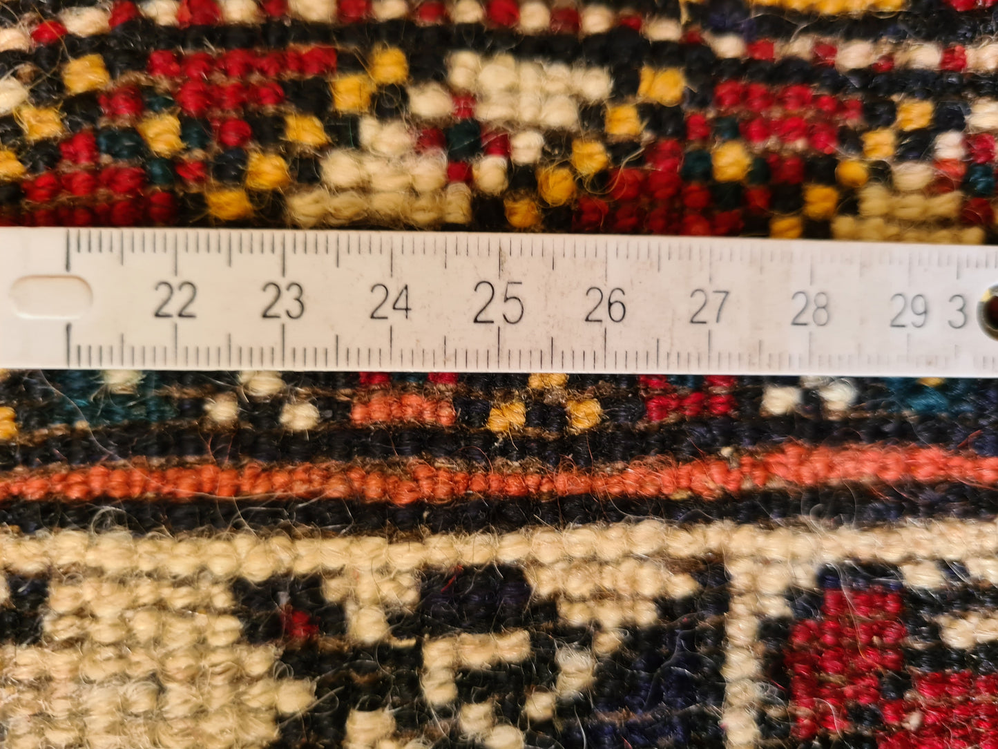 • Zustand: Sehr gut erhalten, zeigt minimale Gebrauchsspuren, die den Charakter des Teppichs unterstreichen