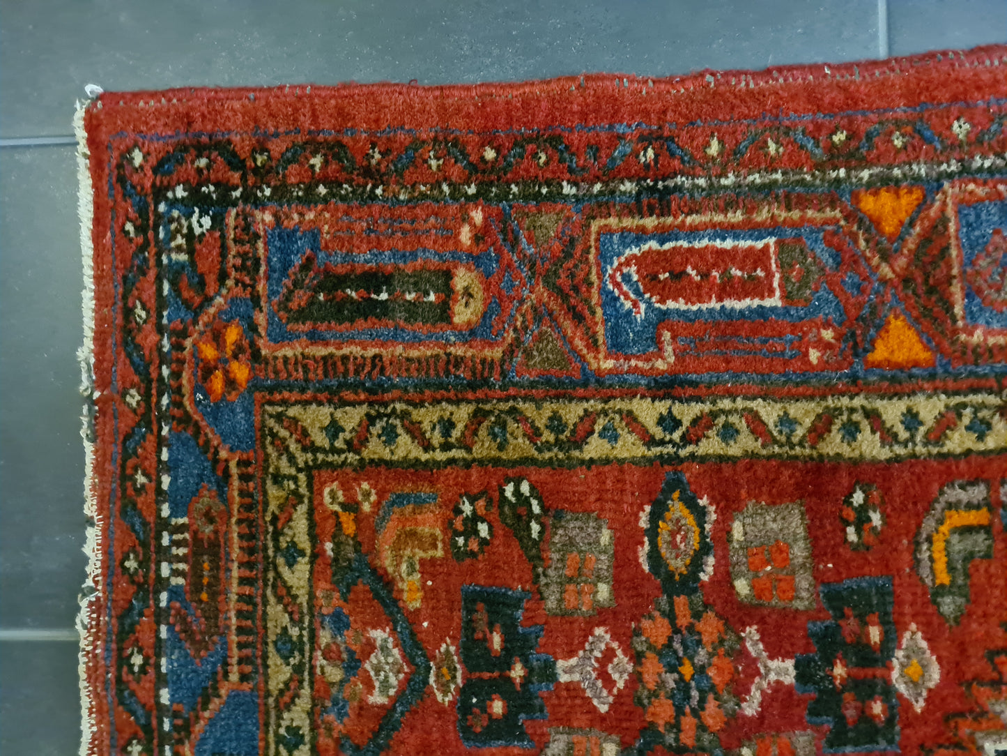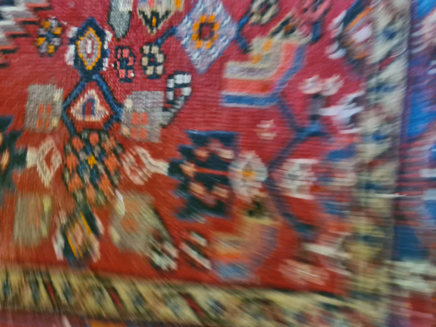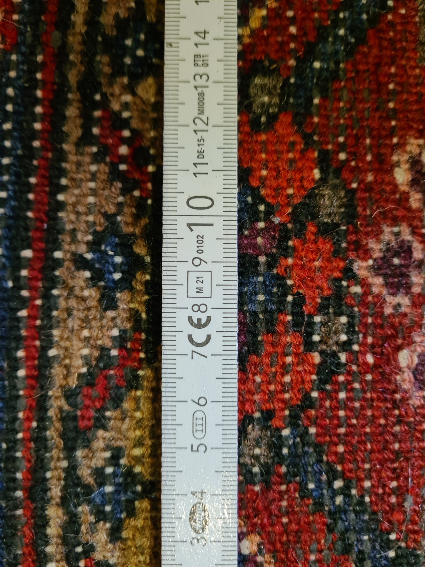 Ideal für Sammler und Liebhaber antiker Teppiche, die Wert auf Authentizität und Qualität legen, ist dieser Teppich mehr als nur ein dekoratives Element – er ist ein Stück Geschichte, das jedem Raum eine besondere Aura verleiht.