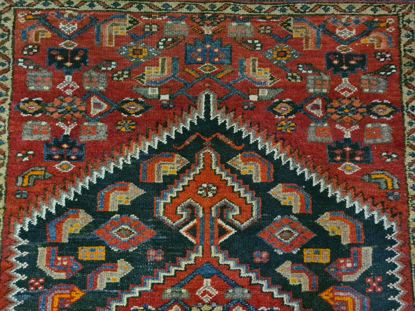 Beschreibung: Dieser antike Perser Malaya Teppich ist ein wahres Erbstück, das die feine Handwerkskunst und die Tradition des Orients widerspiegelt. Die hohe Knotendichte und die Verwendung bester Wolle garantieren nicht nur eine außergewöhnliche Langlebigkeit, sondern auch einen unverwechselbaren Glanz. Trotz seines Alters ist der Teppich in gutem Zustand, wobei leichte Gebrauchsspuren seinen historischen Charakter betonen.