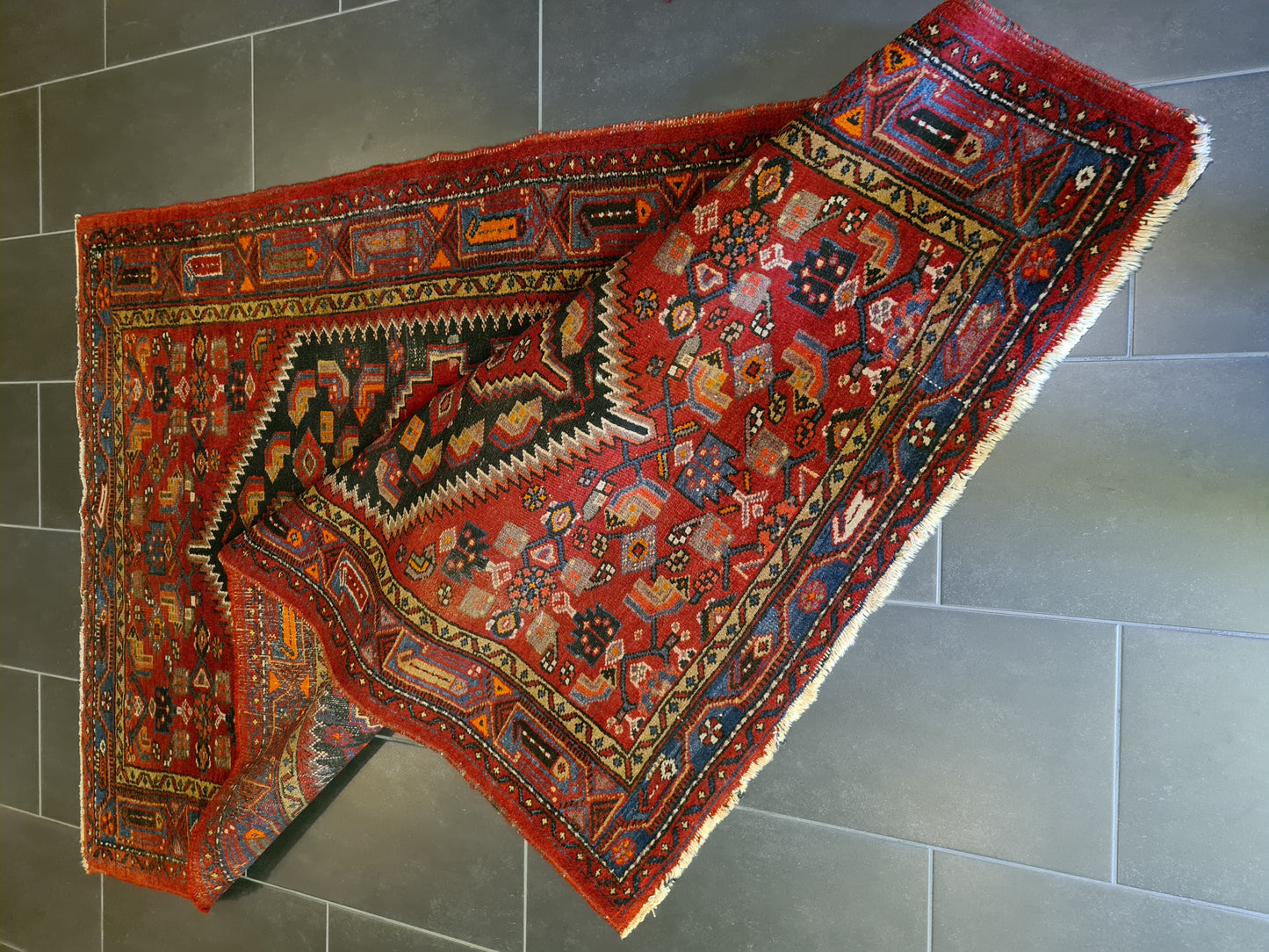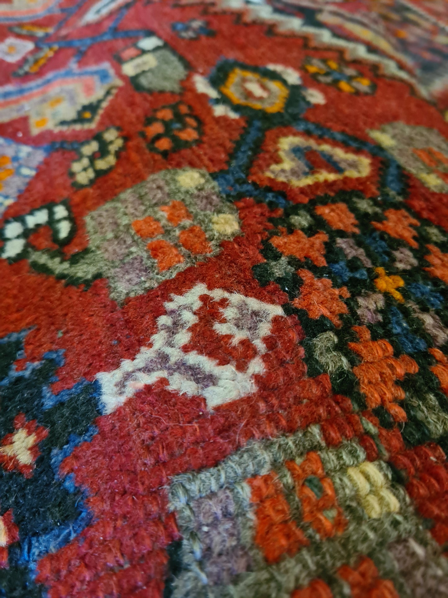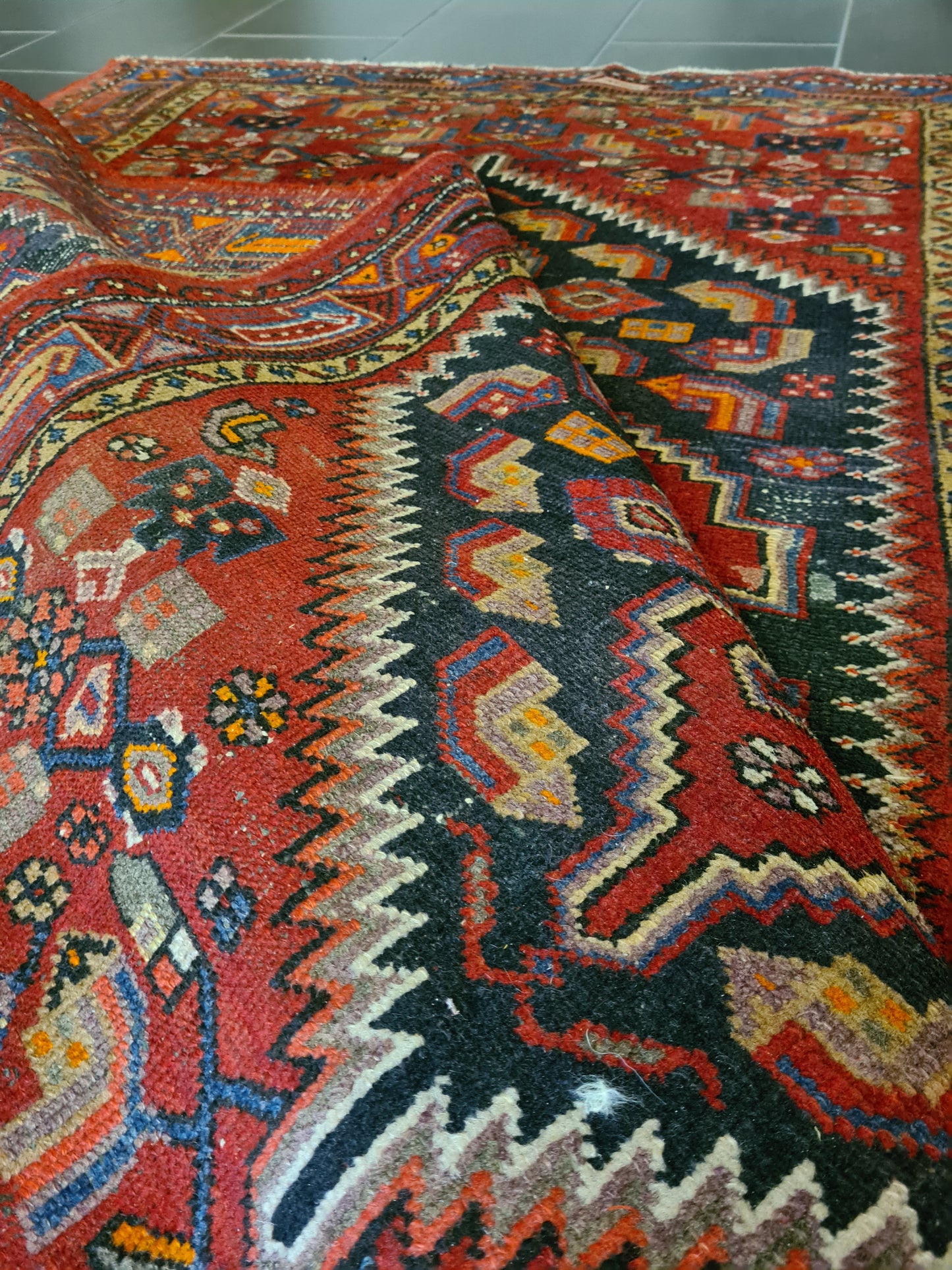 • Zustand: Gut, mit leichten Gebrauchsspuren, die die Authentizität und den Charakter des Teppichs unterstreichen