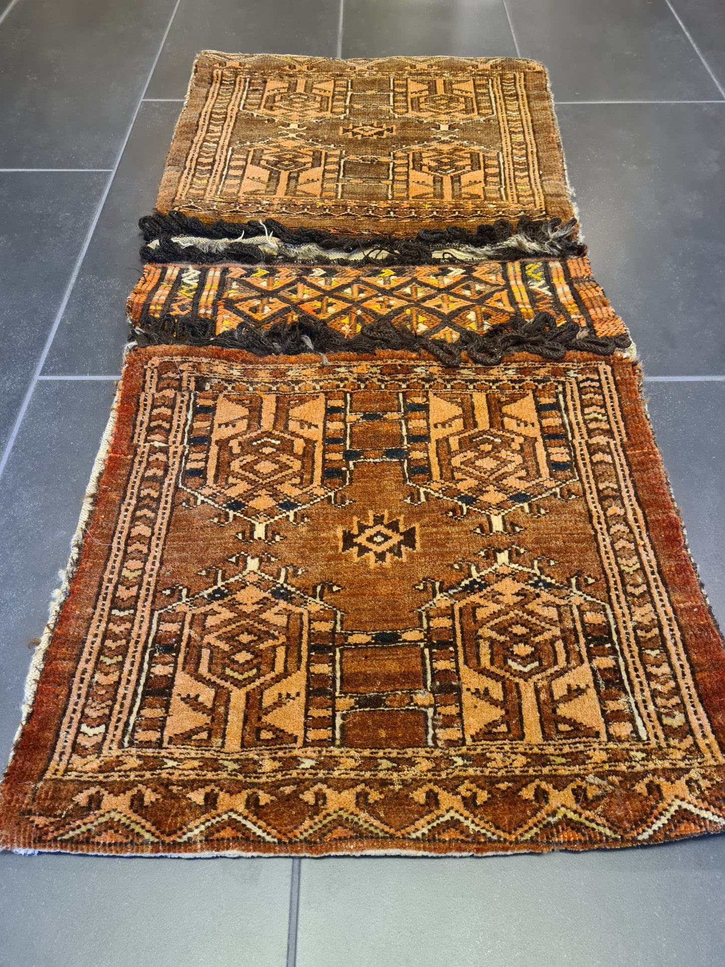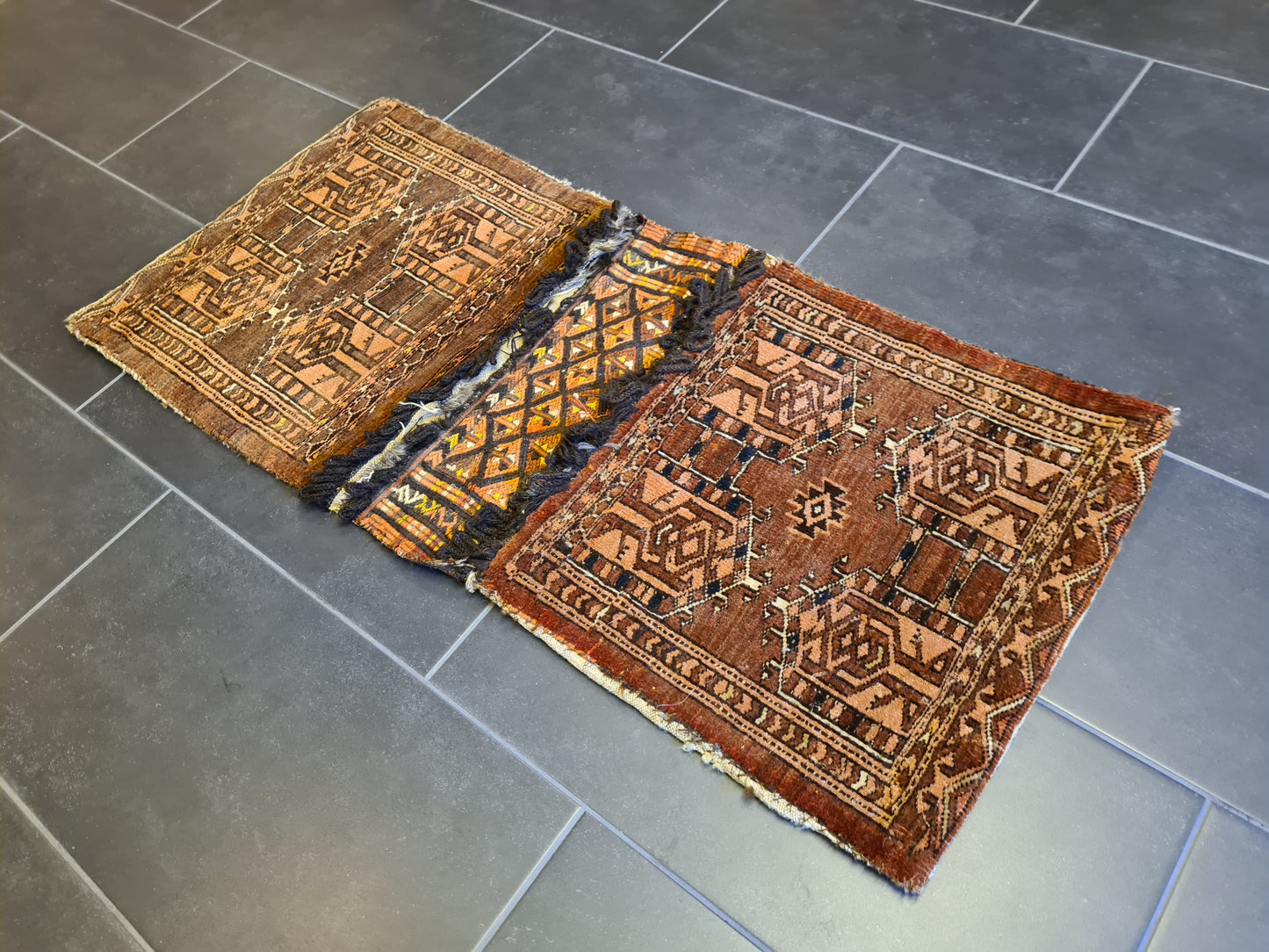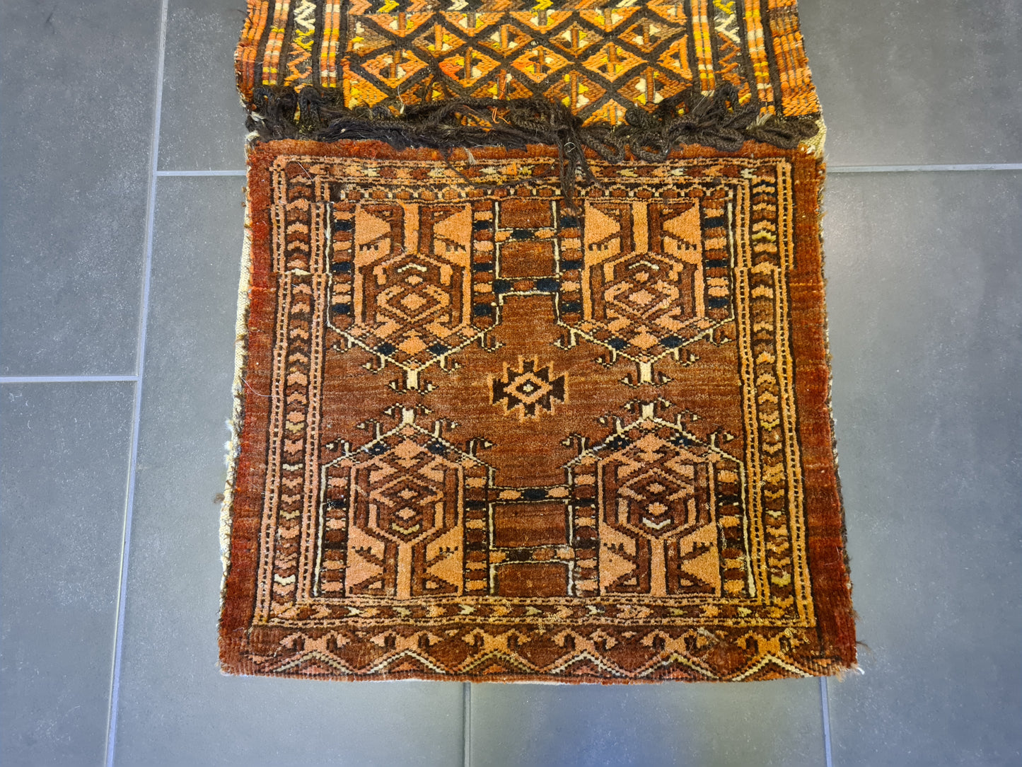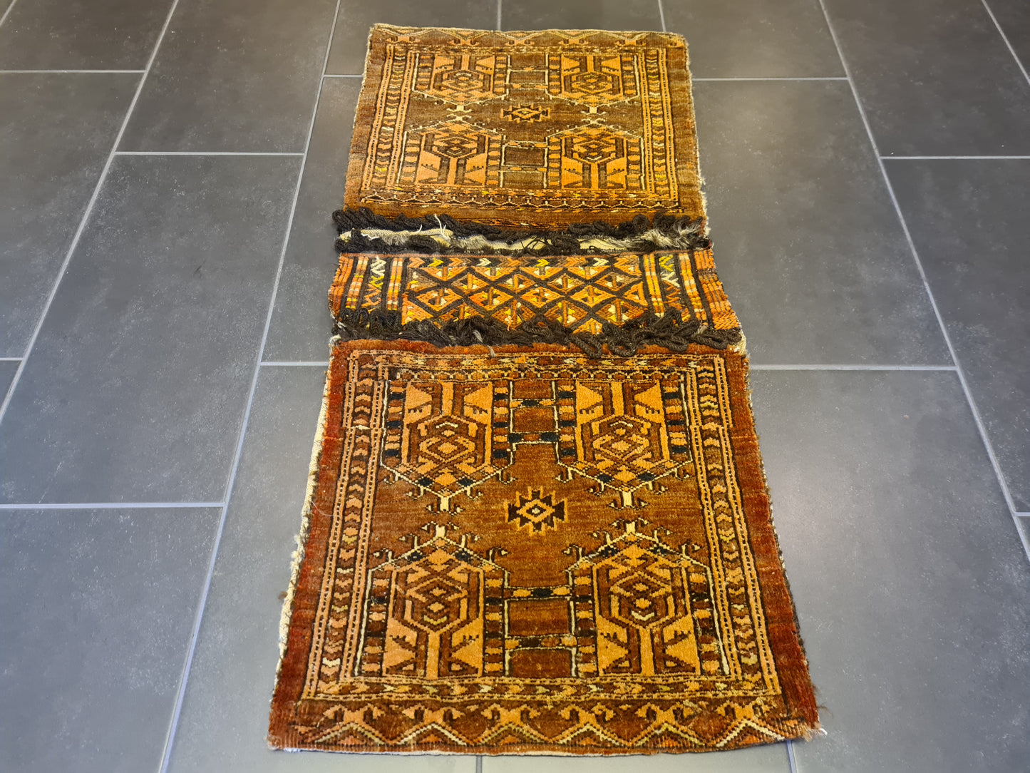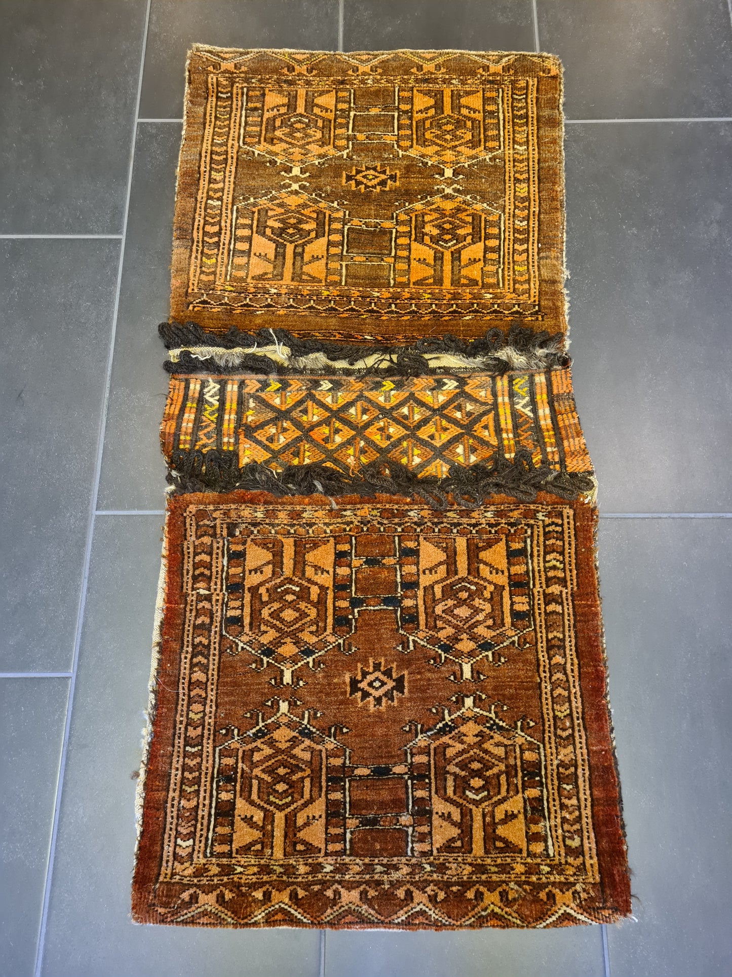 Erleben Sie die zeitlose Schönheit und Exklusivität dieses antiken Perser Orientteppichs, ein wahres Meisterwerk der Teppichkunst. Dieses exquisite Sammlerstück, bekannt als "Satteltasche"-Teppich, vereint traditionelles Handwerk mit beeindruckender historischer Tiefe.