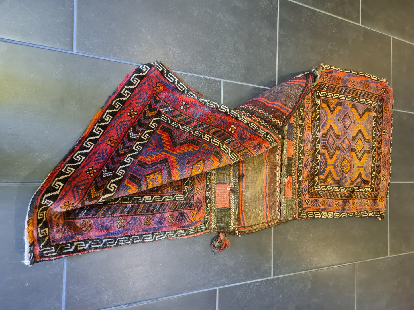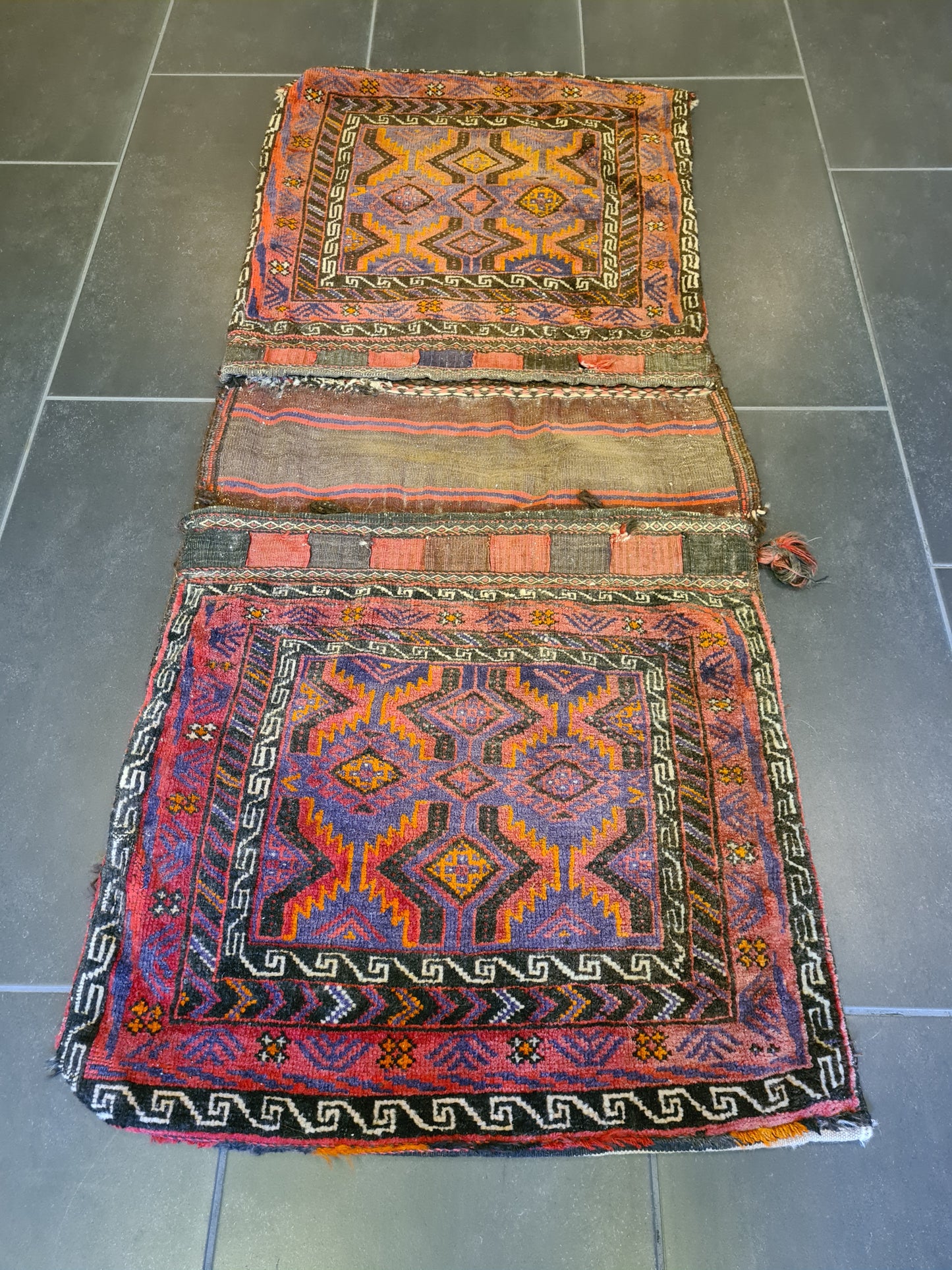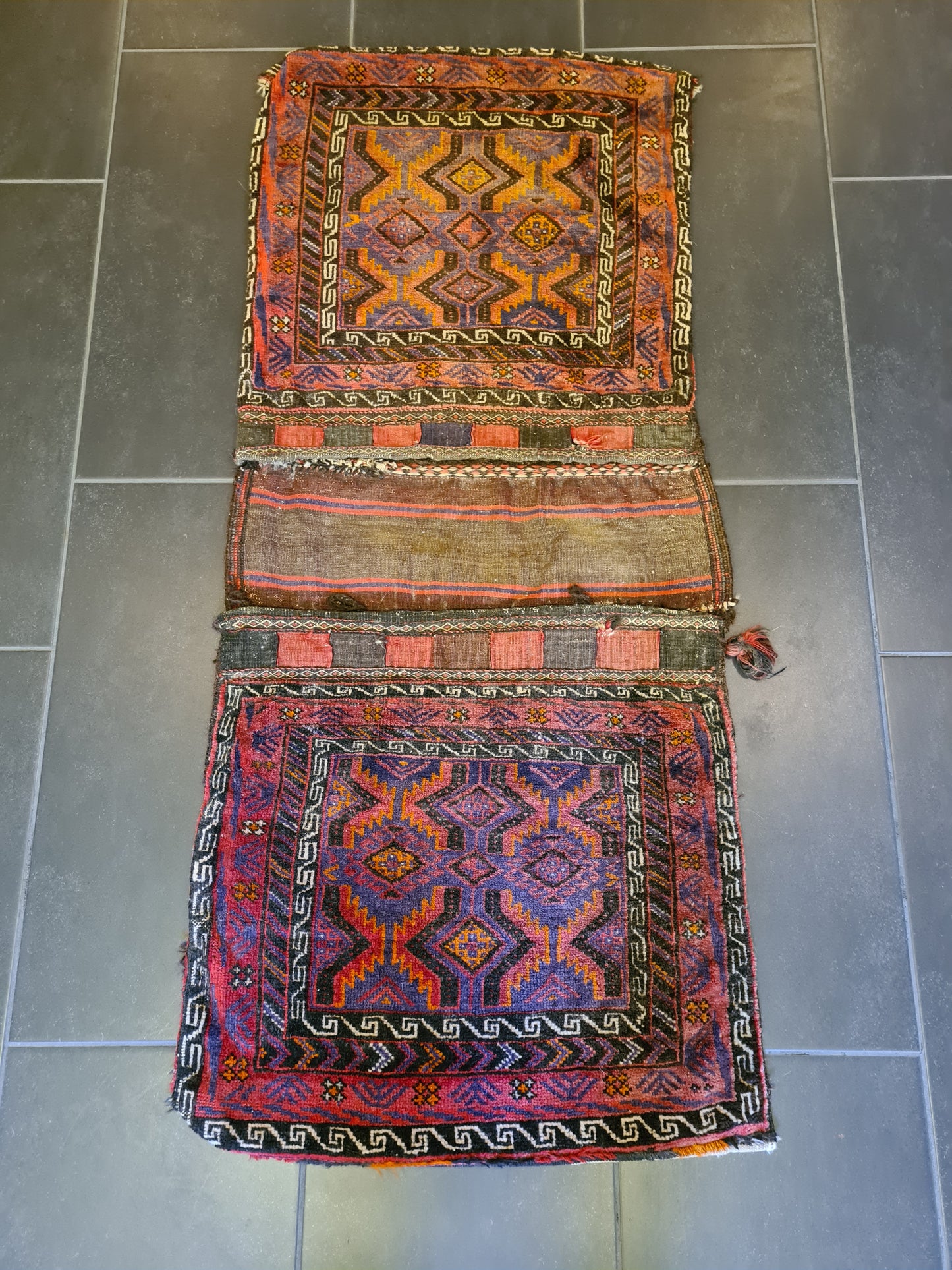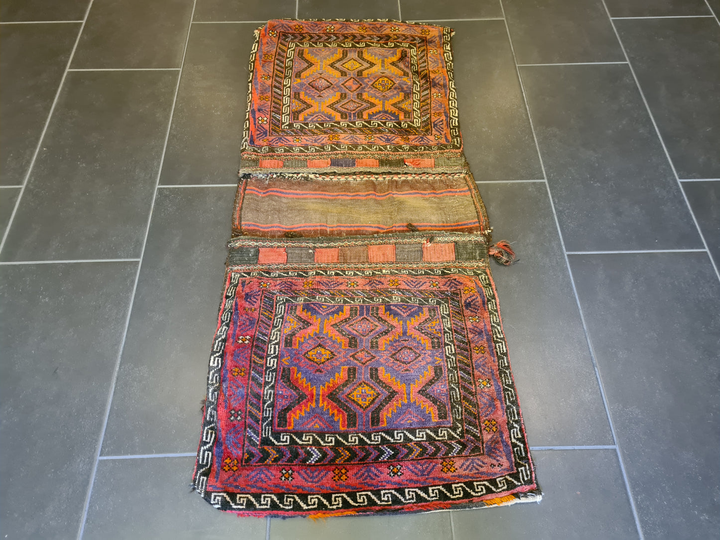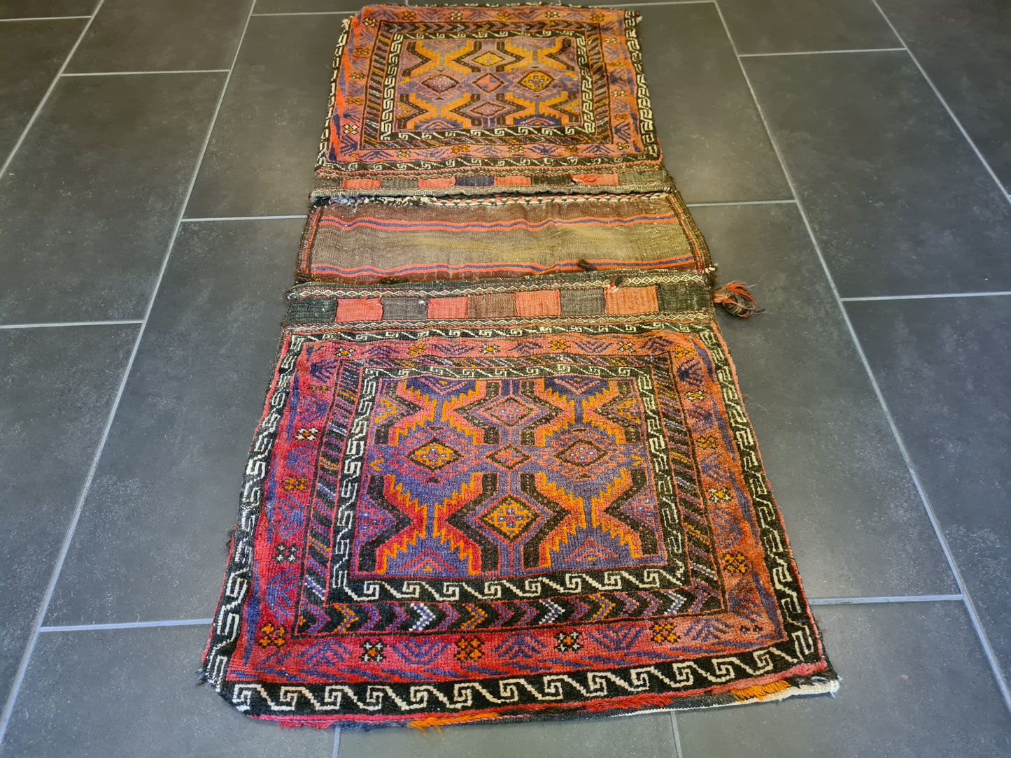 Antiker Handgeknüpfter Perser Orientteppich Sammlerstück Satteltasche 130x57cm