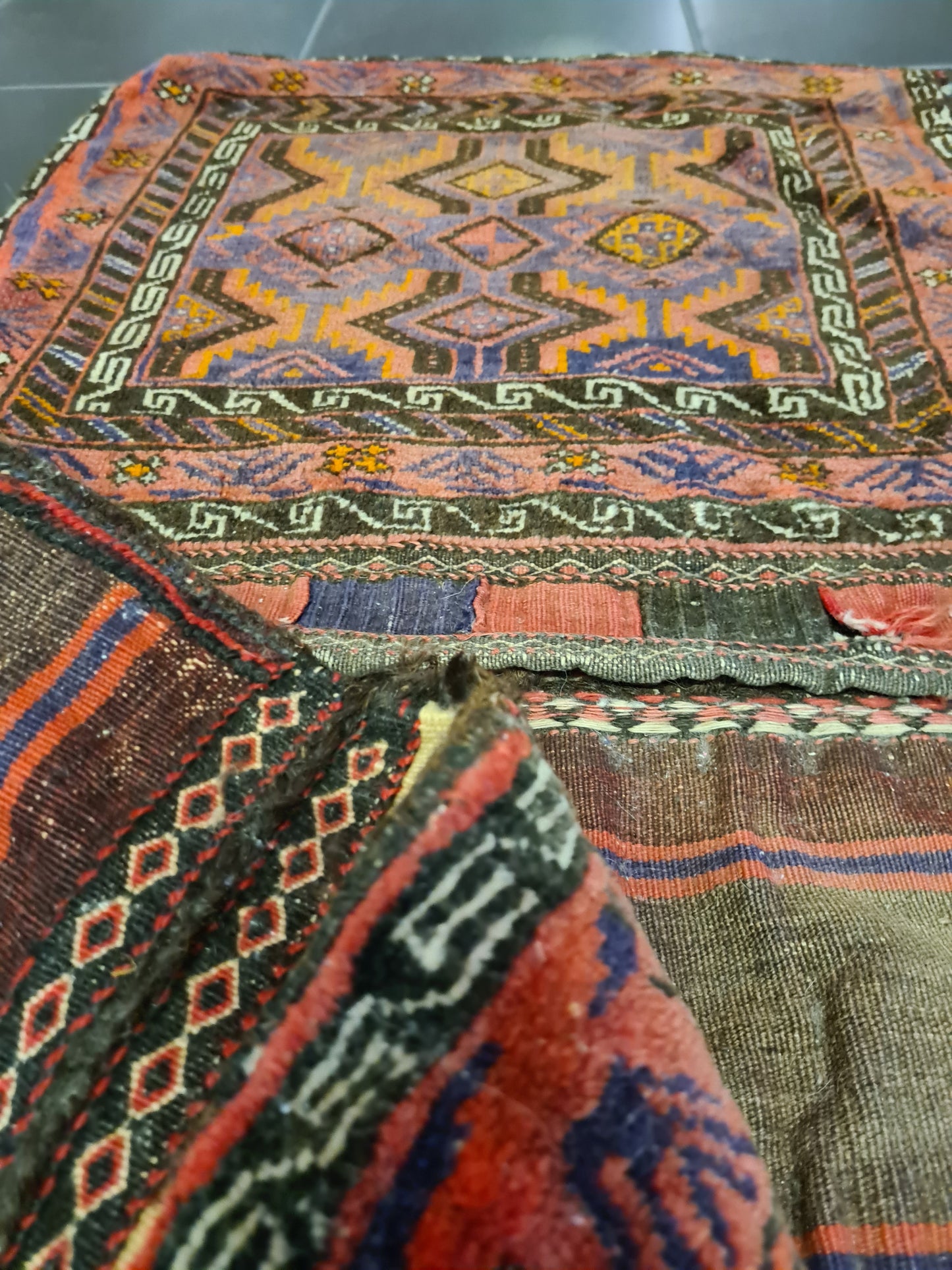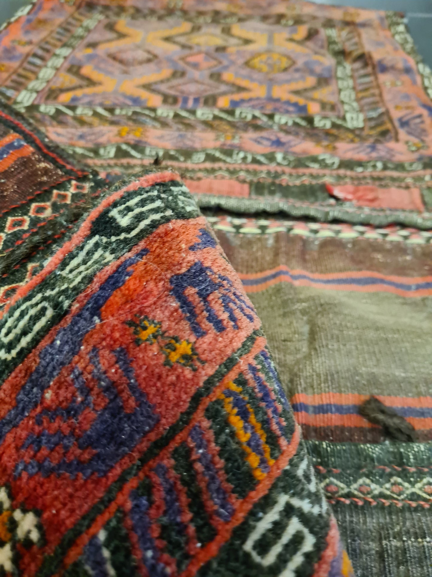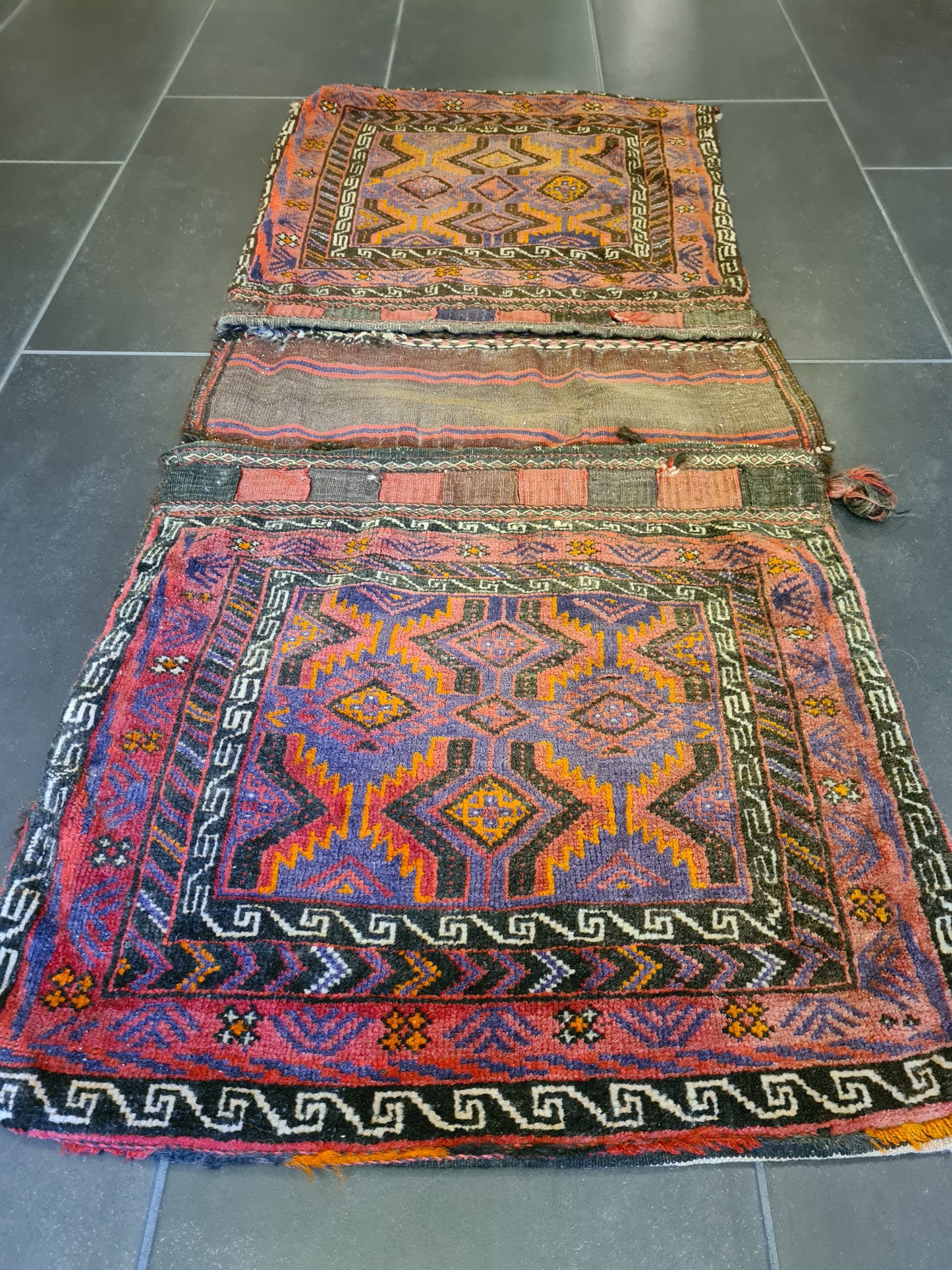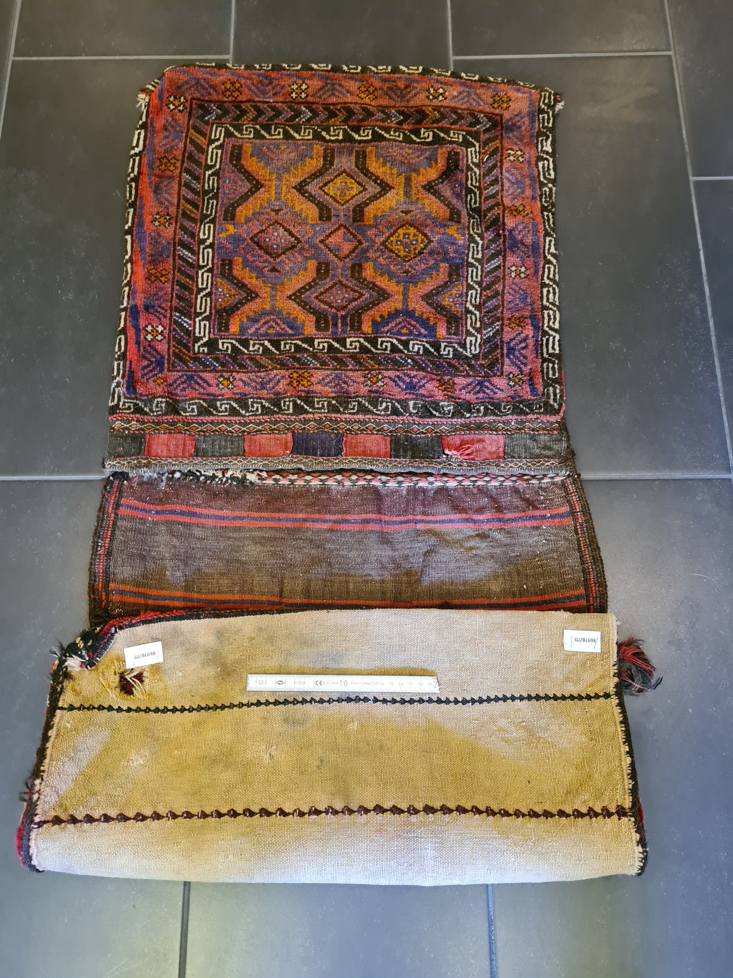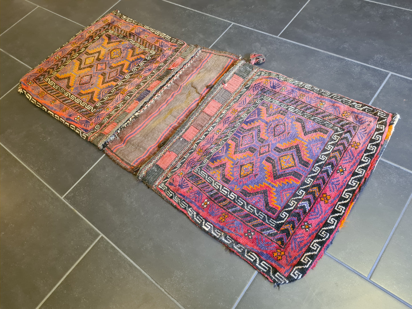 Antiker Handgeknüpfter Perser Orientteppich Sammlerstück Satteltasche 130x57cm