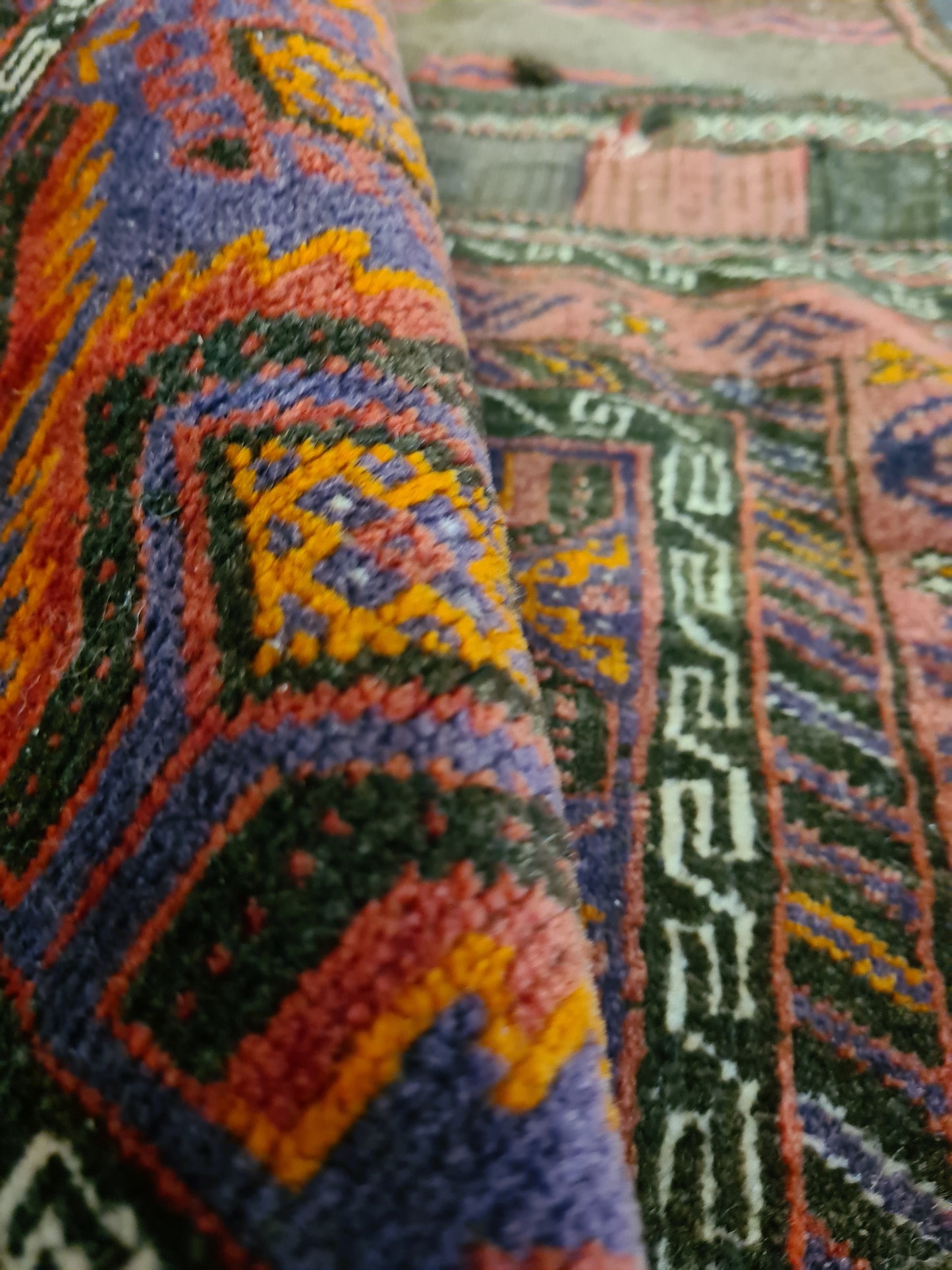 Perfekt für Liebhaber antiker Teppiche, Sammler und all jene, die ihrem Zuhause ein Stück Geschichte und unvergleichliche Eleganz verleihen möchten. Der Teppich ist ein wertvolles Erbstück, das Geschichte erzählt und Ihre Einrichtung auf besondere Weise bereichert.