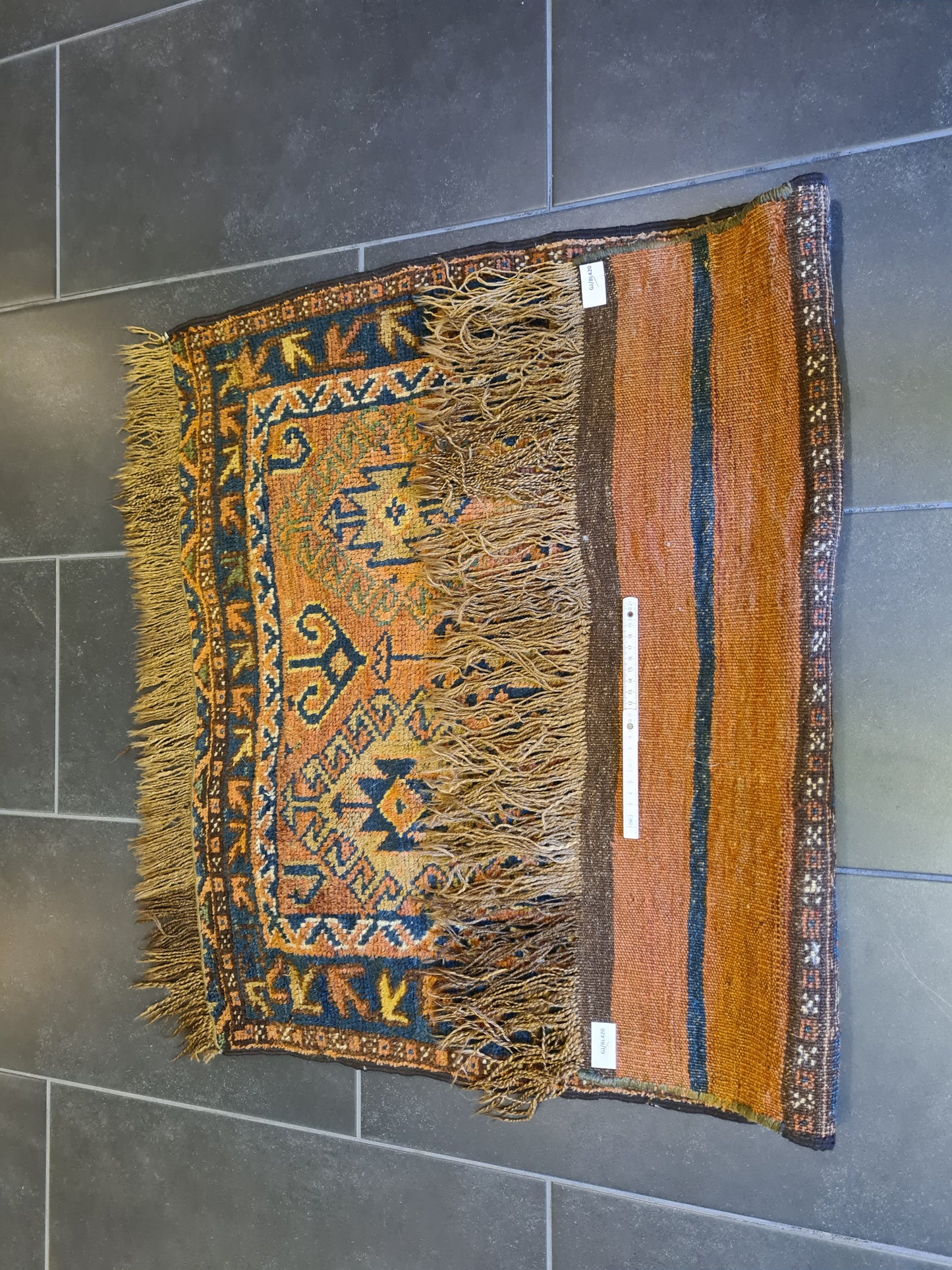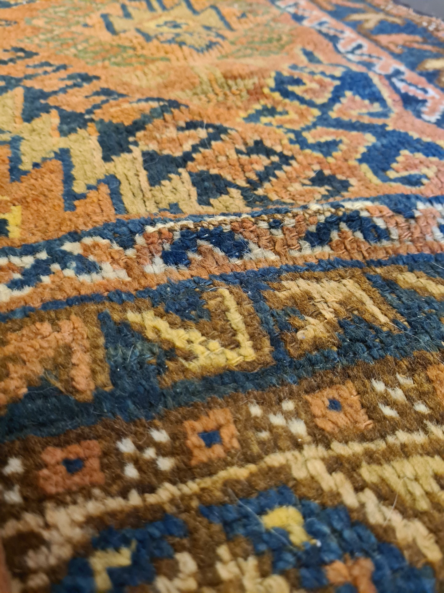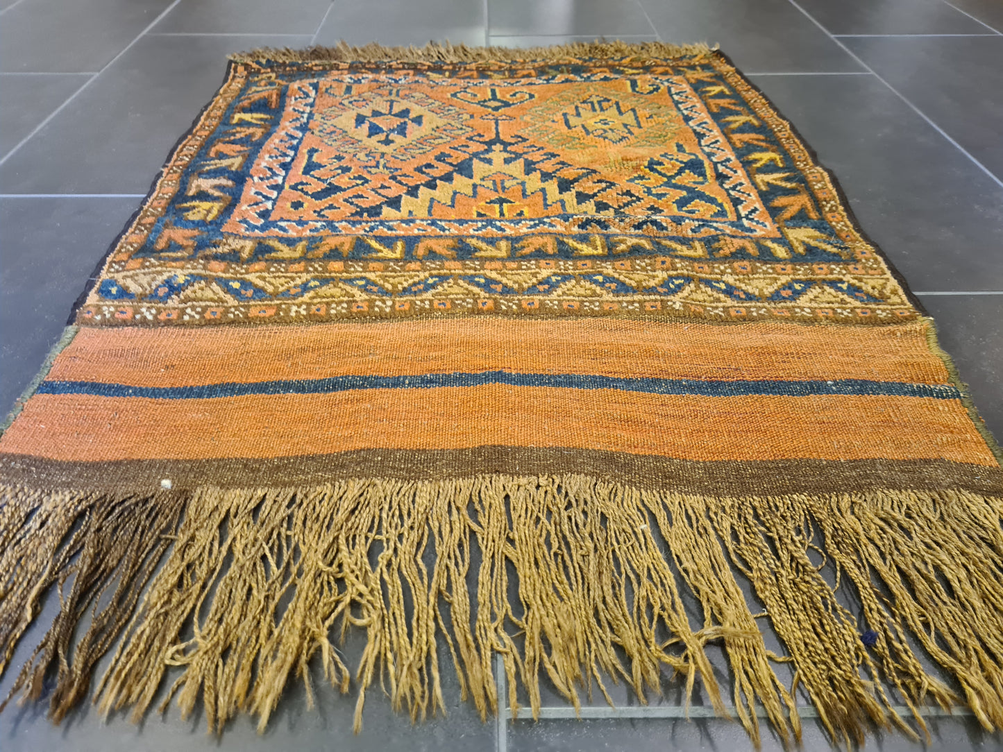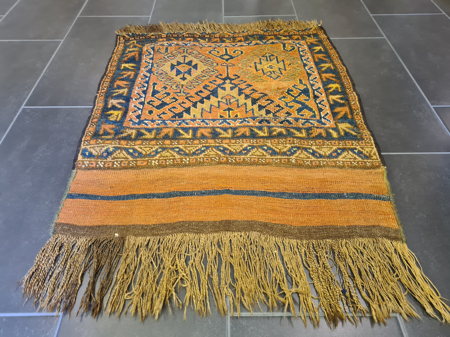 Mit seiner kompakten Größe ist dieser Teppich vielseitig einsetzbar – ob als Highlight in einem kleinen Raum, als dekorativer Akzent auf einem Tisch oder als luxuriöse Wanddekoration. Perfekt für Kenner und Sammler, die die ästhetische und kulturelle Bedeutung antiker Teppiche schätzen.