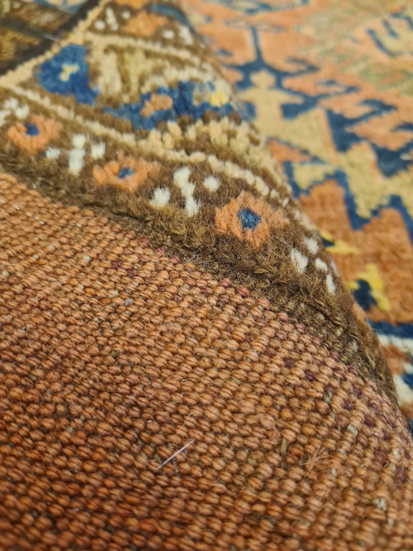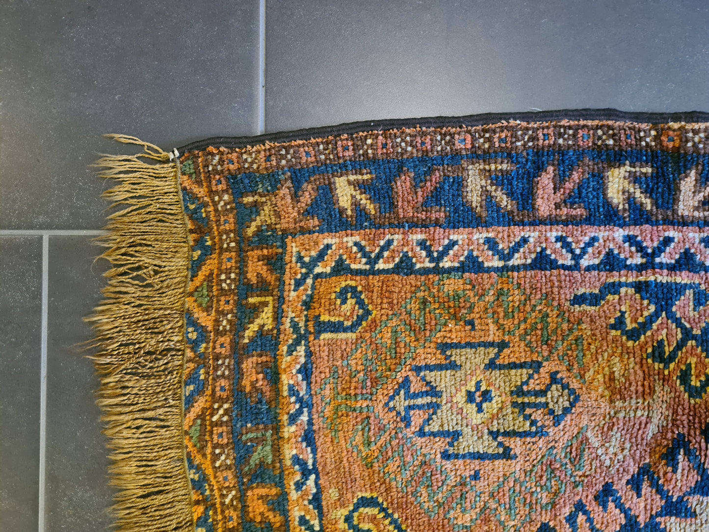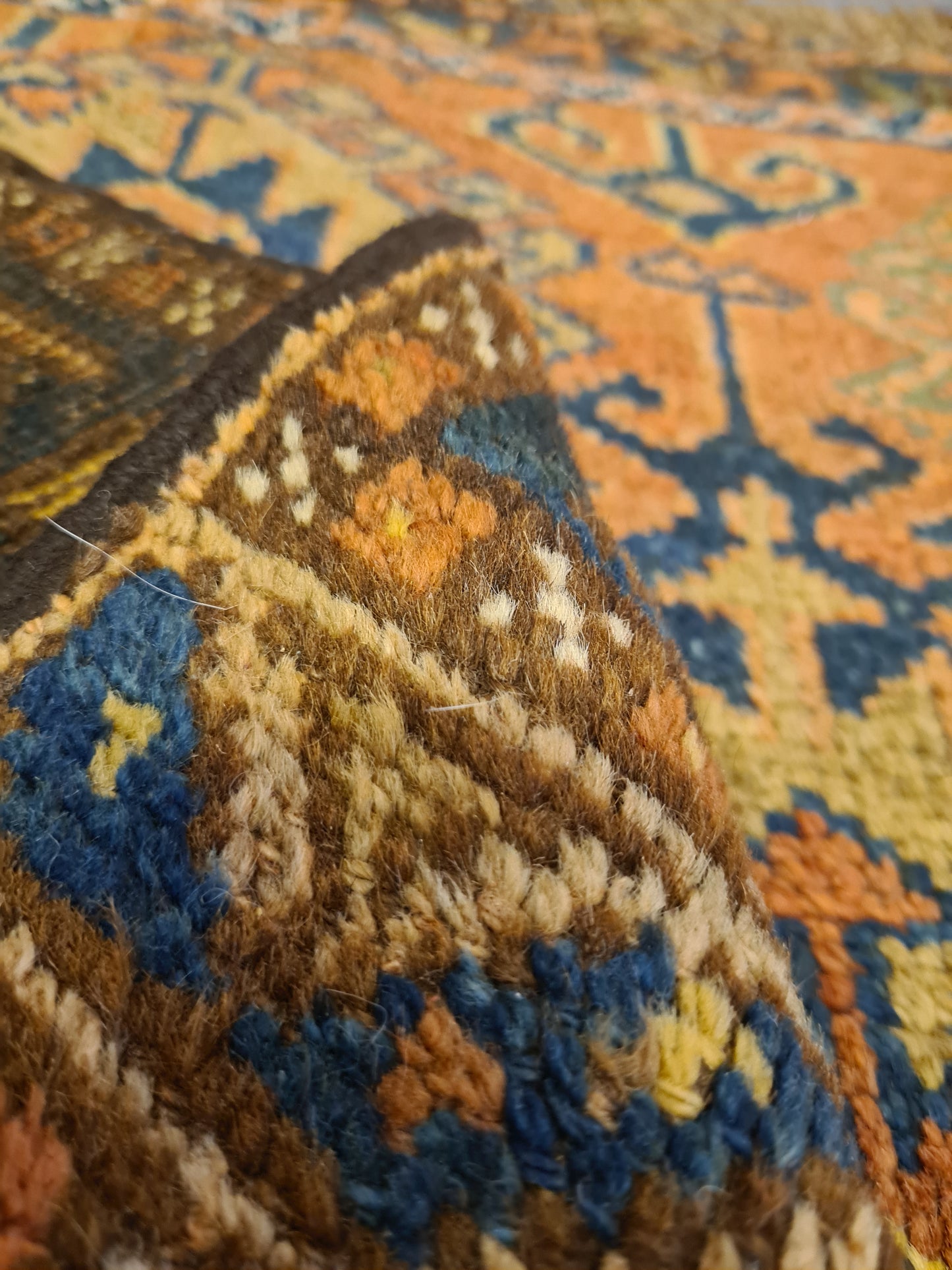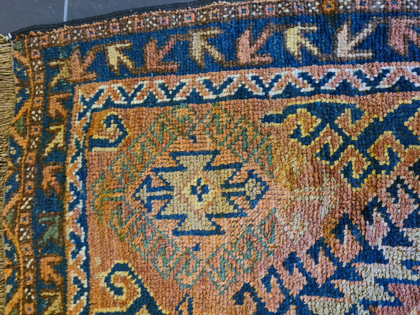 Mit seiner kompakten Größe ist dieser Teppich vielseitig einsetzbar – ob als Highlight in einem kleinen Raum, als dekorativer Akzent auf einem Tisch oder als luxuriöse Wanddekoration. Perfekt für Kenner und Sammler, die die ästhetische und kulturelle Bedeutung antiker Teppiche schätzen.
