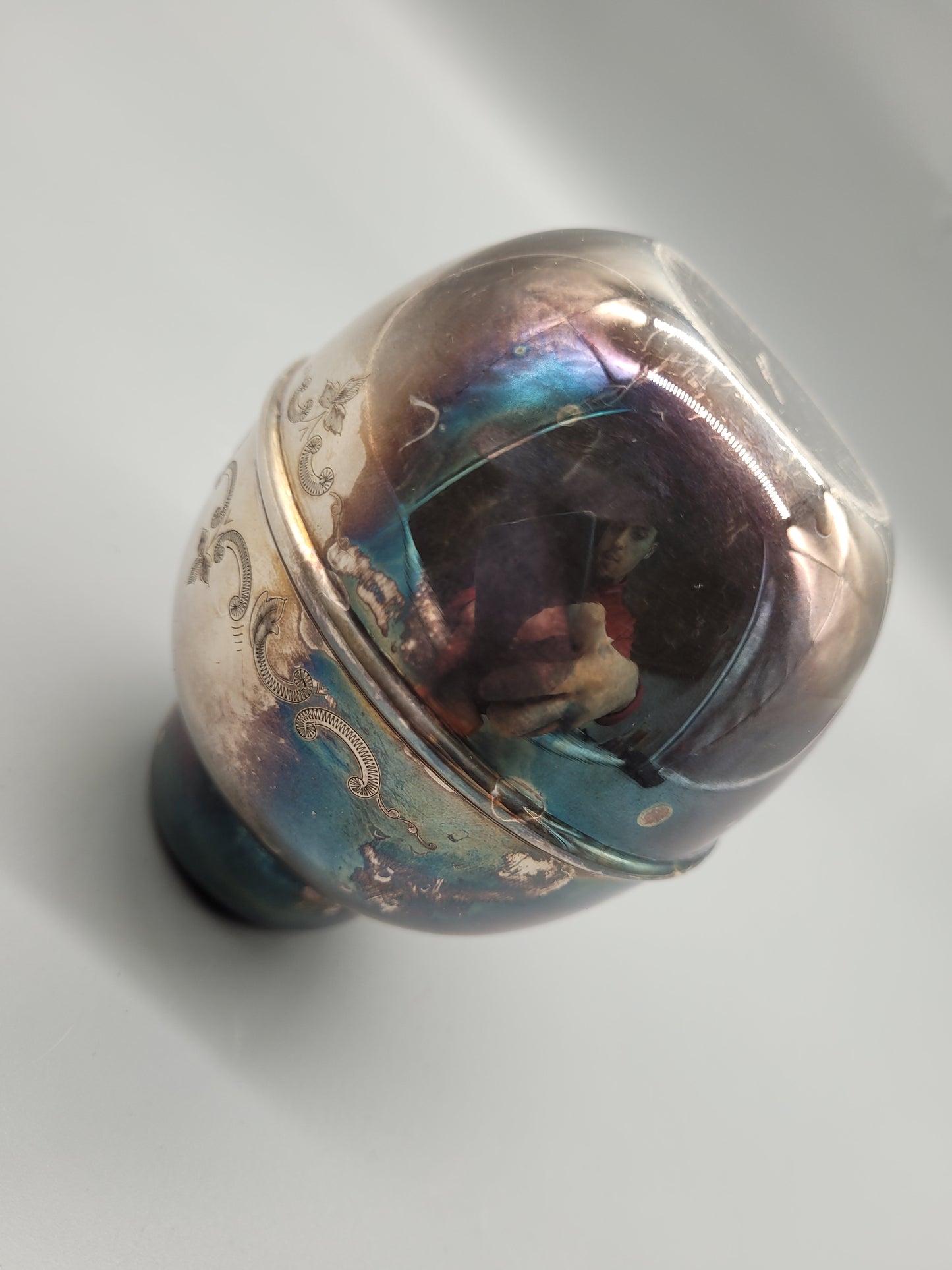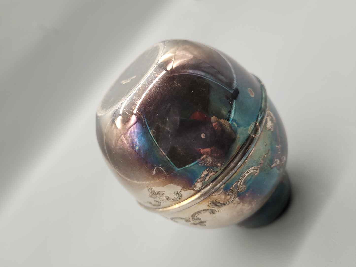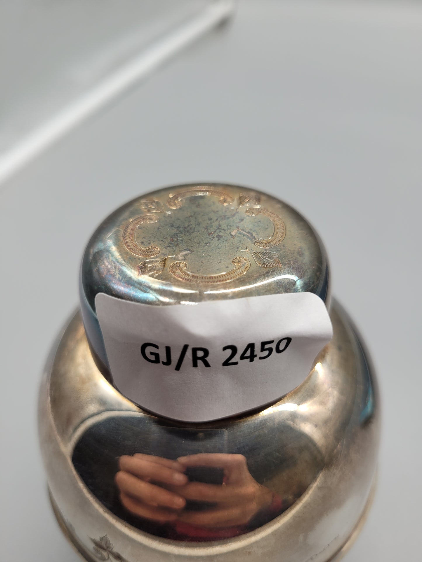 Dieser antike  Shaker vereint zeitlose Eleganz mit erstklassiger Handwerkskunst und ist ein Symbol für raffinierten Luxus. Seine filigrane Verarbeitung und das edle Silber machen ihn zu einem begehrten Sammlerstück und einem Blickfang in jedem Raum.