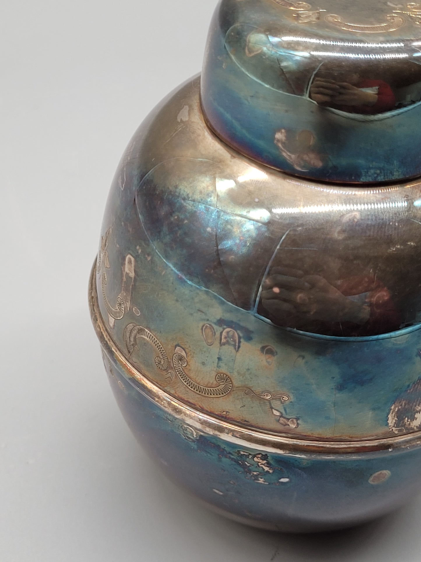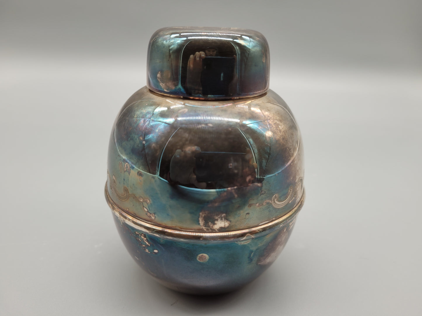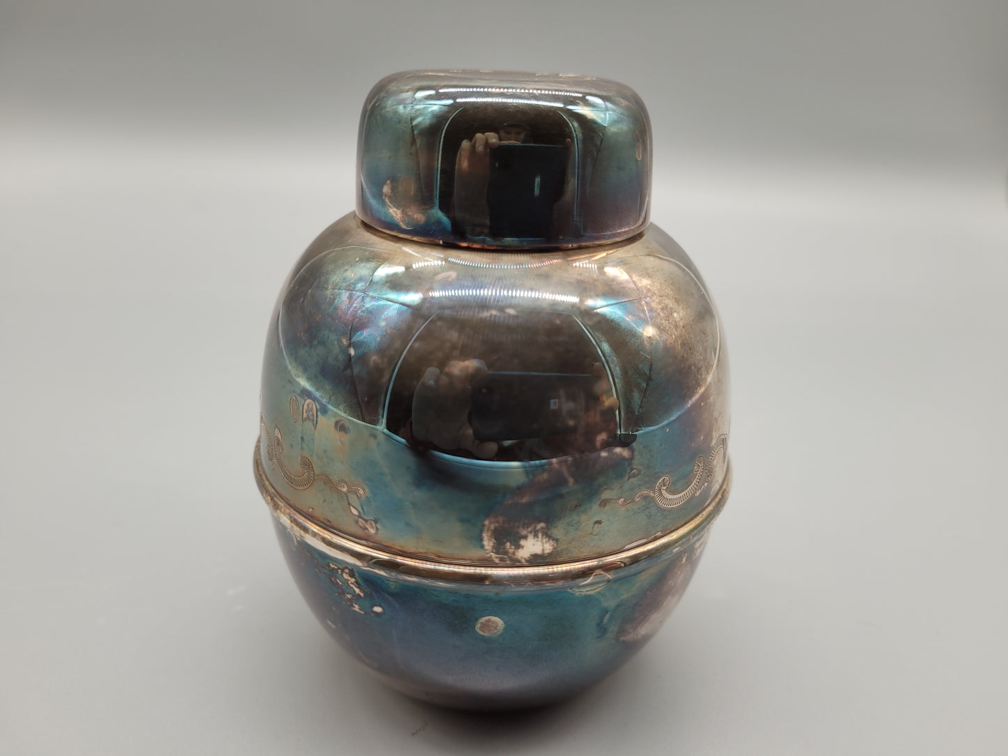 Dieser antike  Shaker vereint zeitlose Eleganz mit erstklassiger Handwerkskunst und ist ein Symbol für raffinierten Luxus. Seine filigrane Verarbeitung und das edle Silber machen ihn zu einem begehrten Sammlerstück und einem Blickfang in jedem Raum.