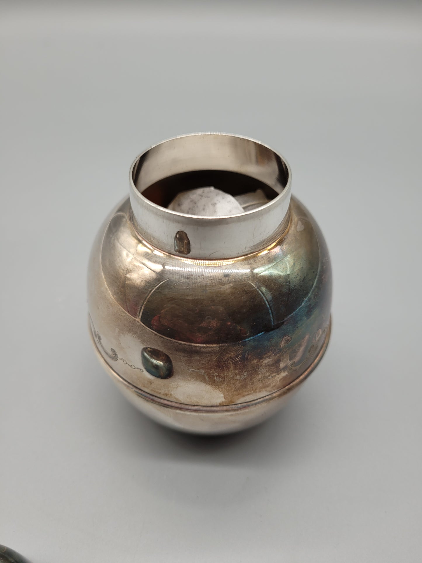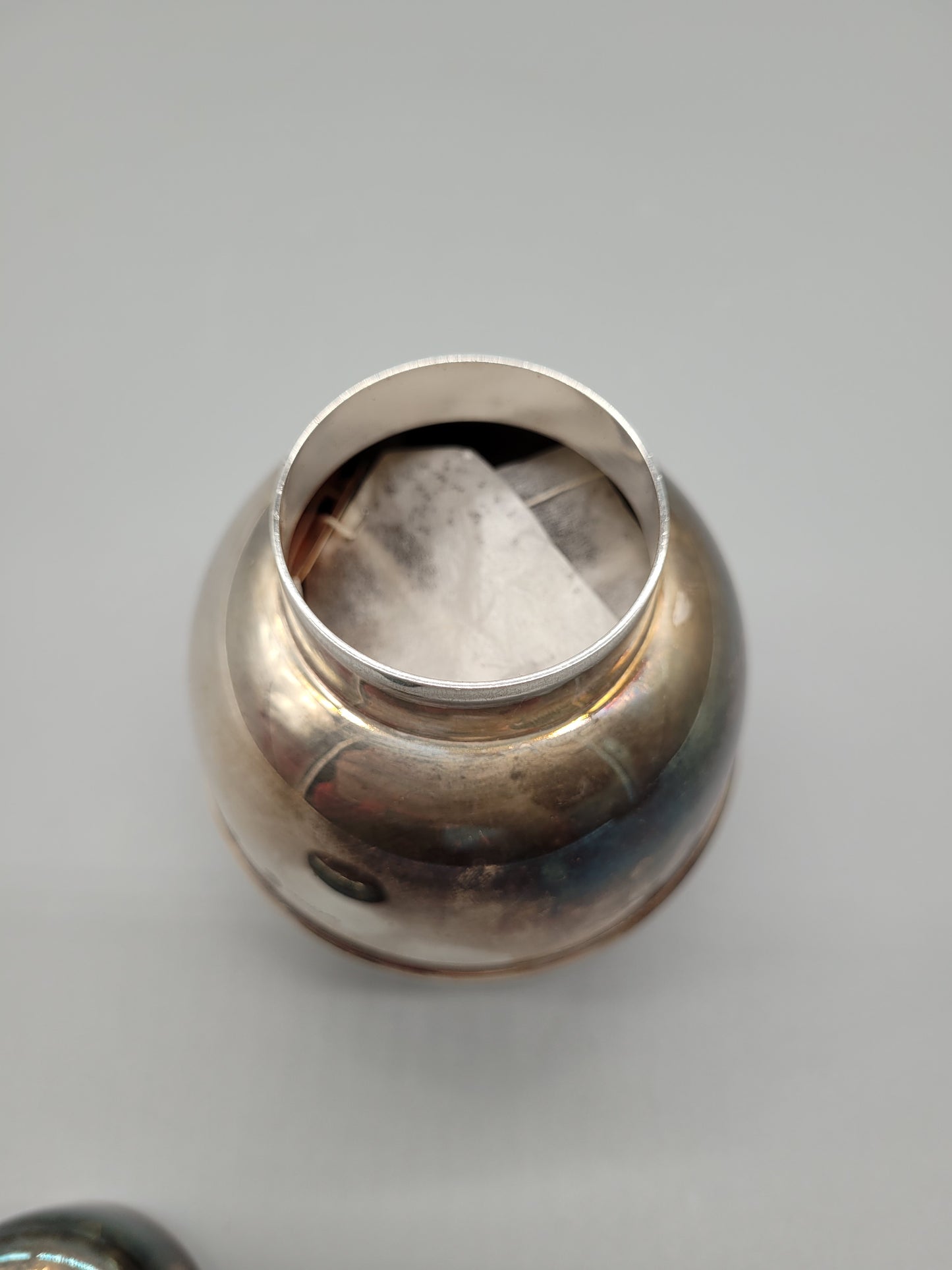 Zustand: Der antike  Shaker von Koch & Bergfeld befindet sich in einem ausgezeichneten Zustand, frei von nennenswerten Gebrauchsspuren. Sein glänzendes Finish und seine makellose Oberfläche lassen ihn in vollem Glanz erstrahlen und verleihen jedem Tisch eine Aura von historischer Eleganz.