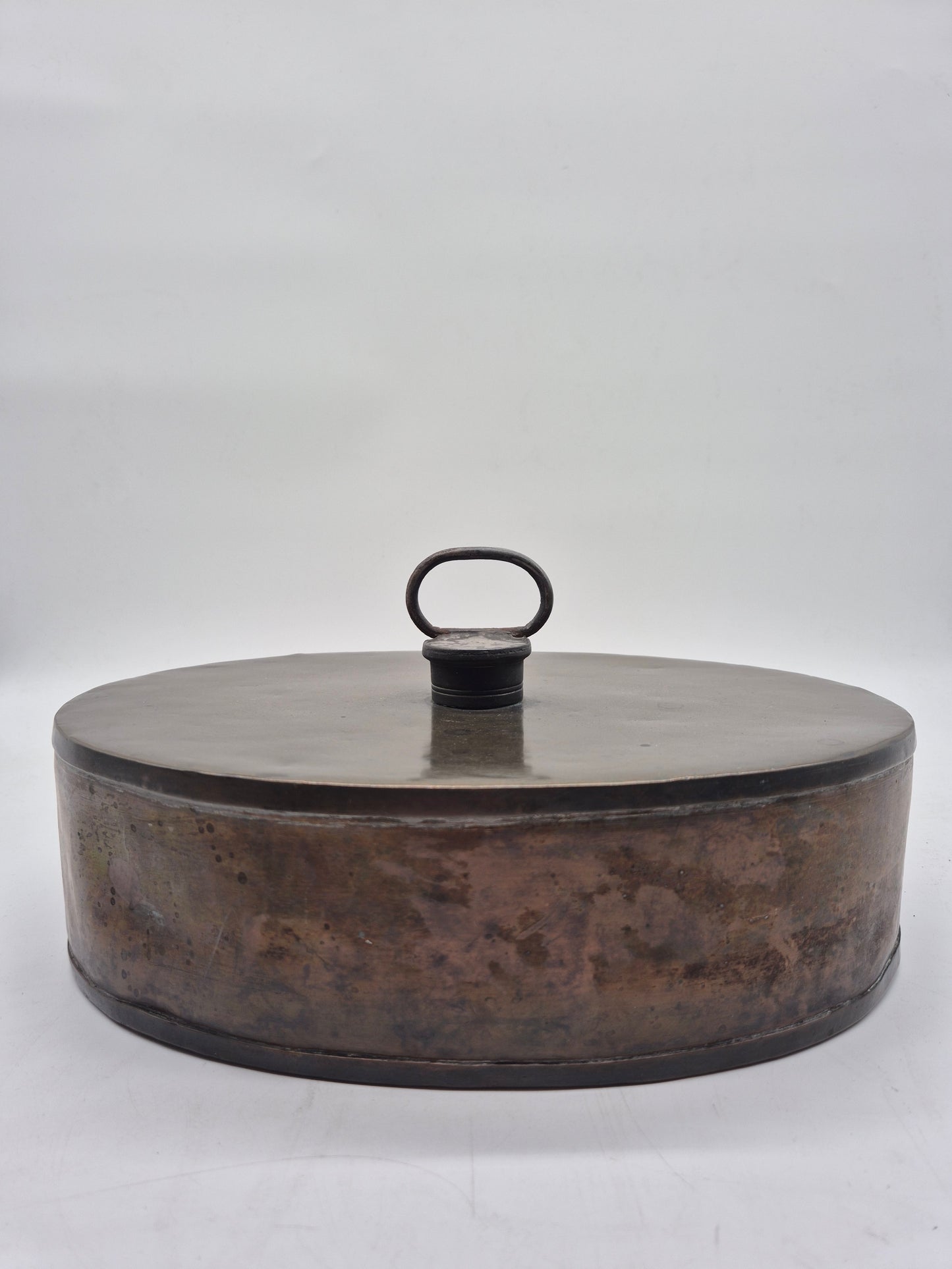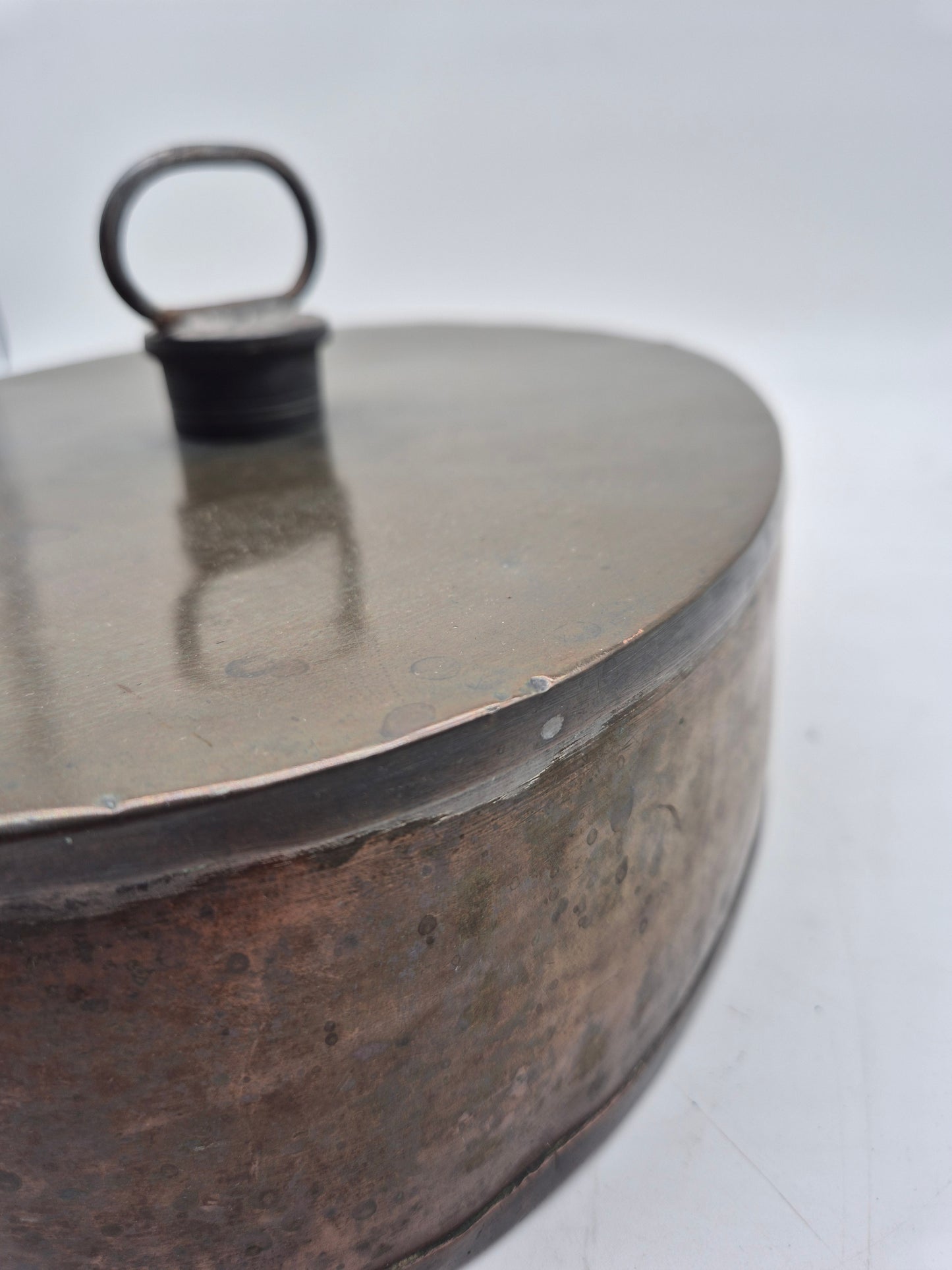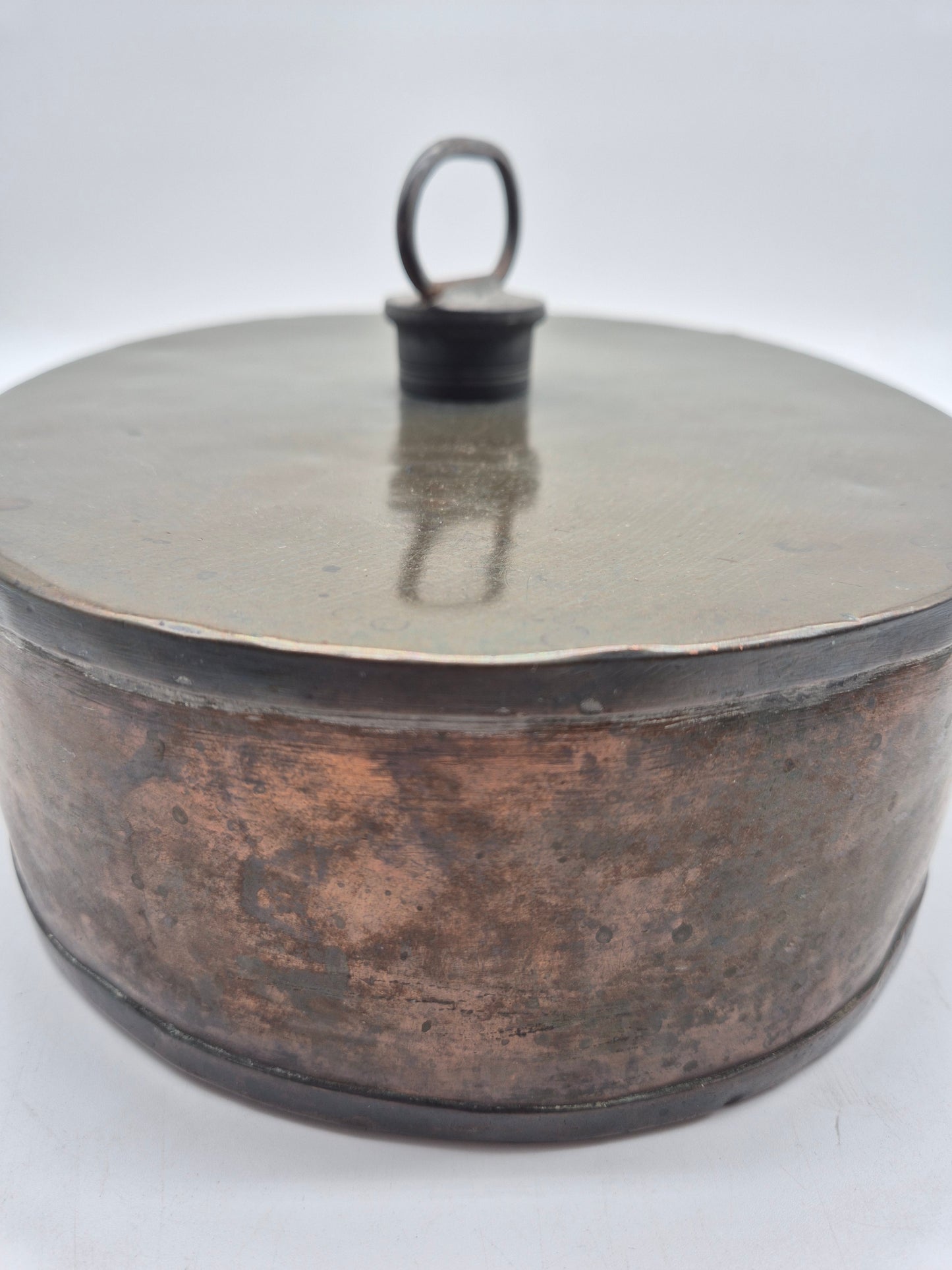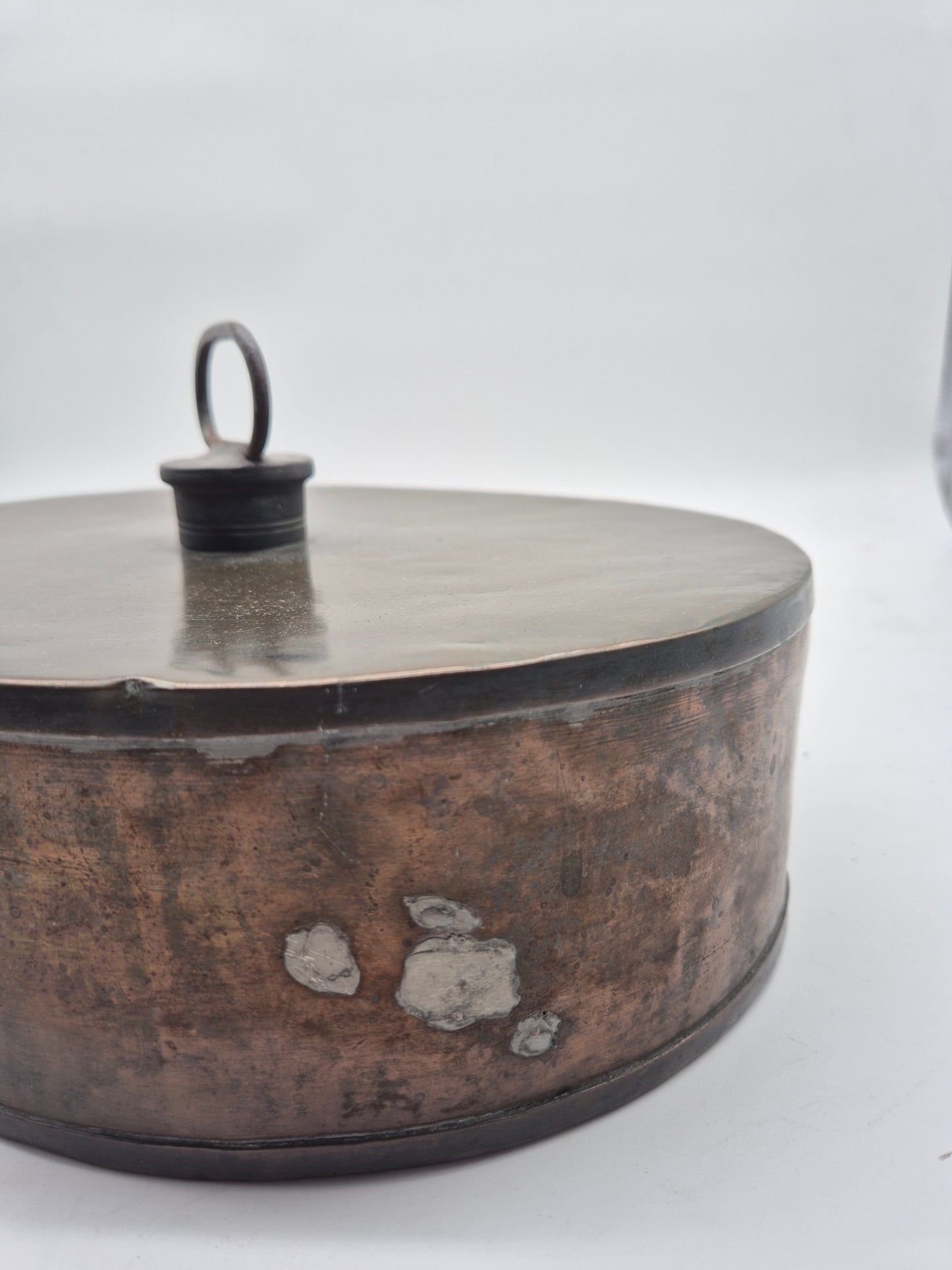 Dieser antike Kupfer-Warmwasserbereiter beeindruckt durch seine elegante Form und ausgezeichnete Erhaltung. Mit den kompakten Maßen und dem glänzenden Kupferfinish ist er sowohl funktional als auch ästhetisch ansprechend. Ein besonders schönes Stück für Sammler und Liebhaber antiker Objekte, das jedem Raum einen Hauch von Vintage-Geschichte verleiht.