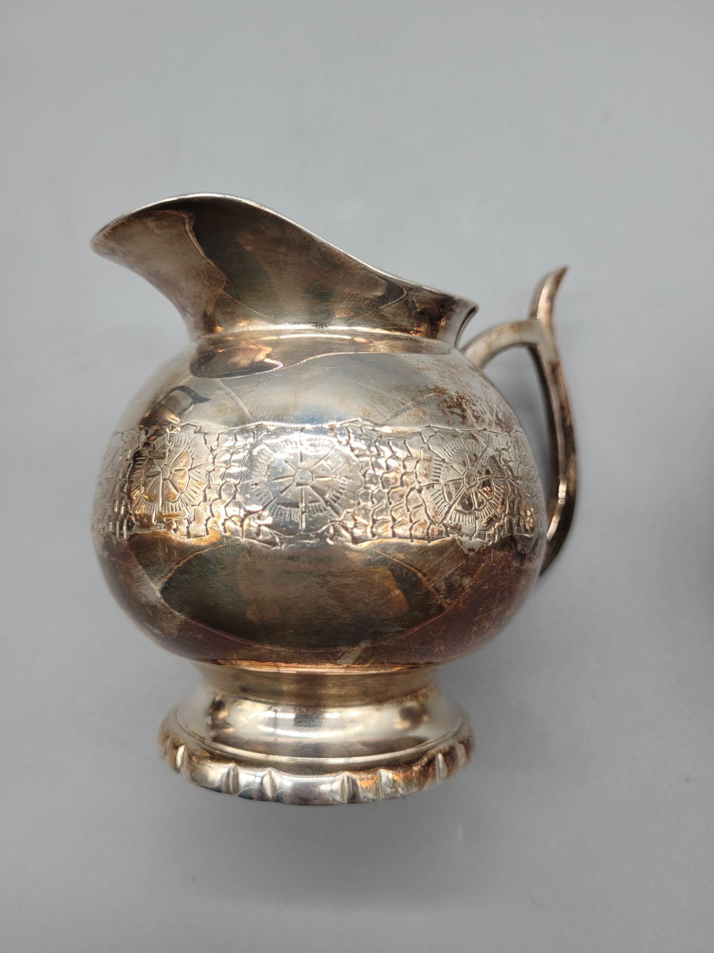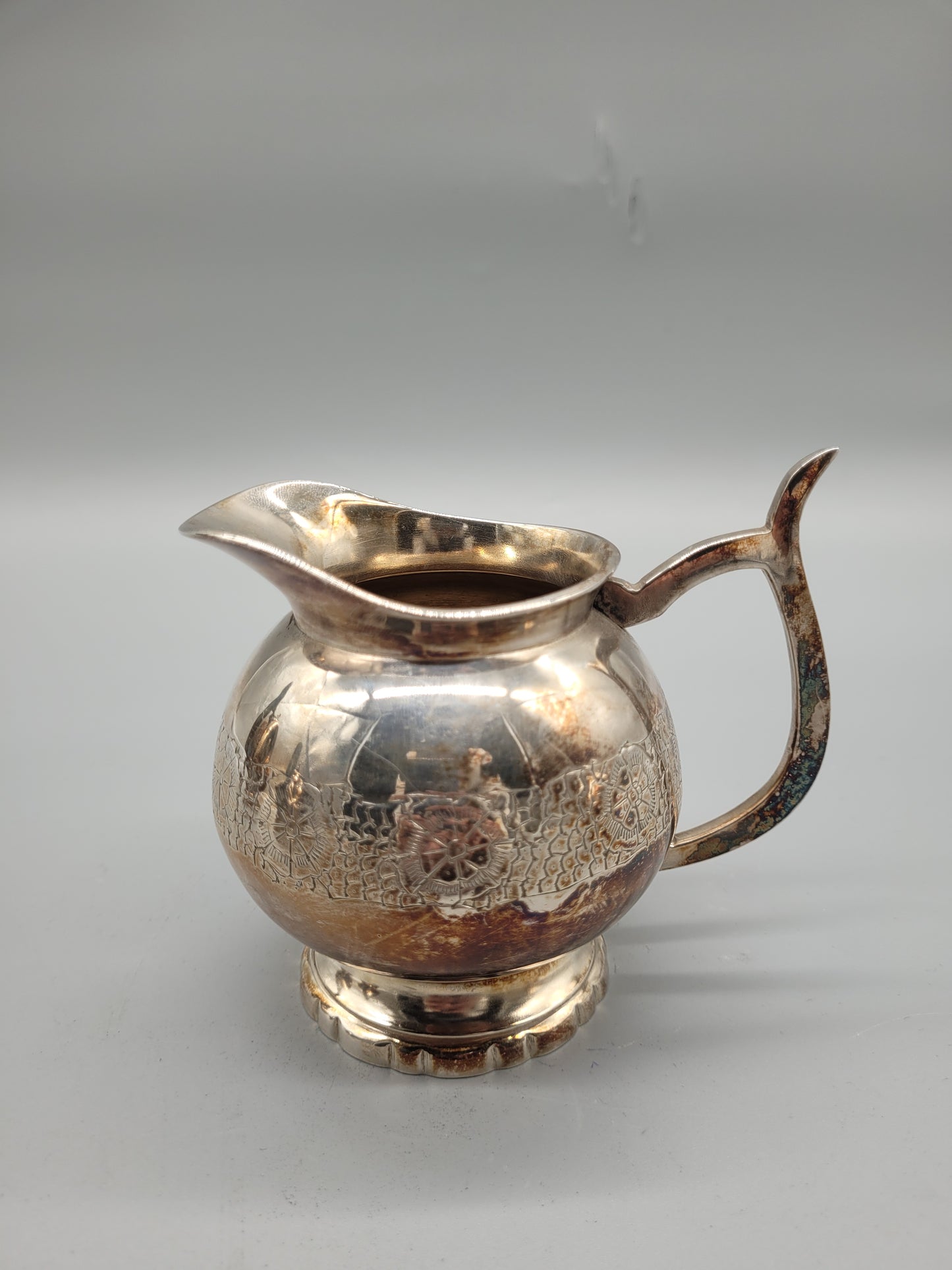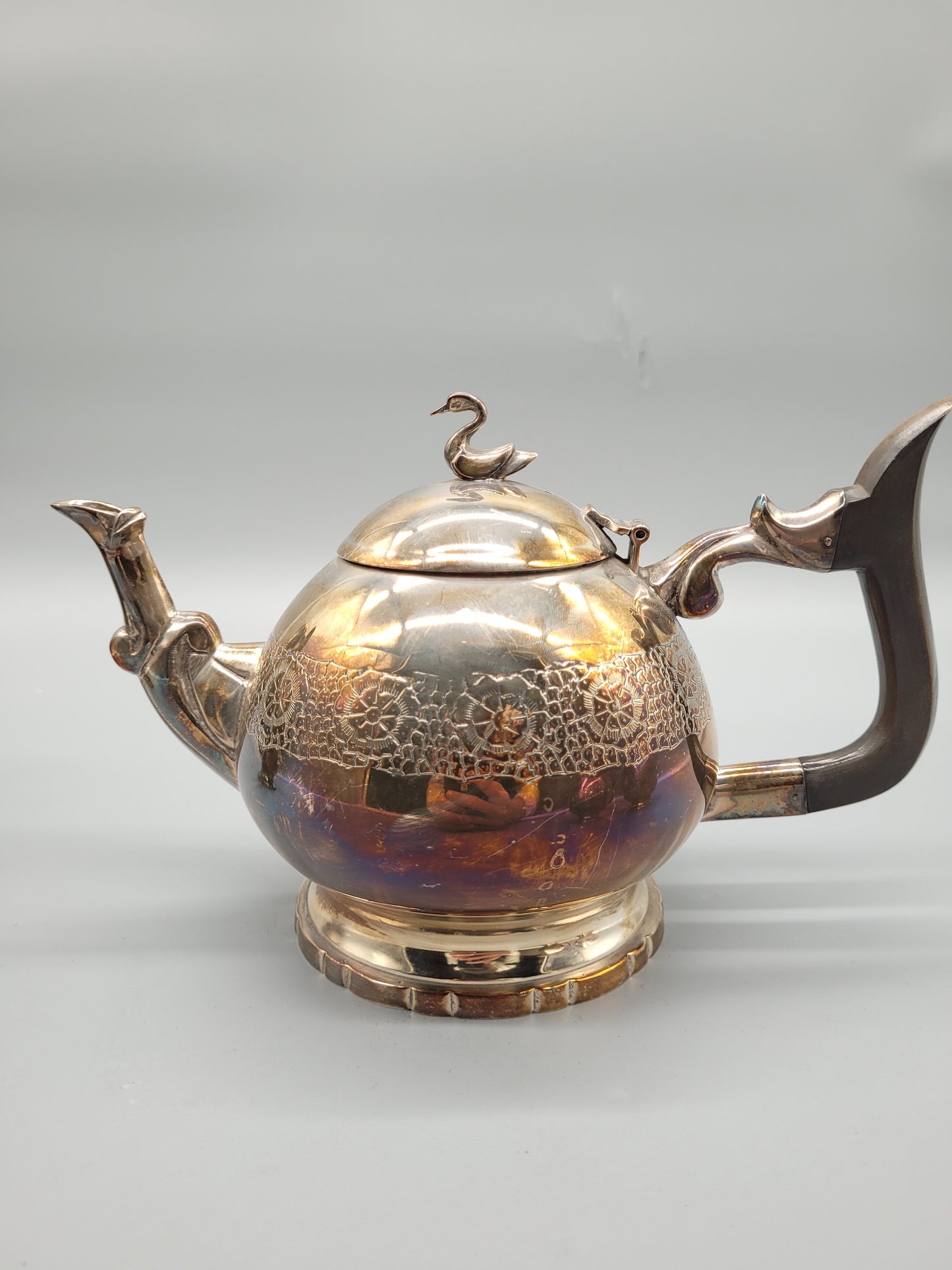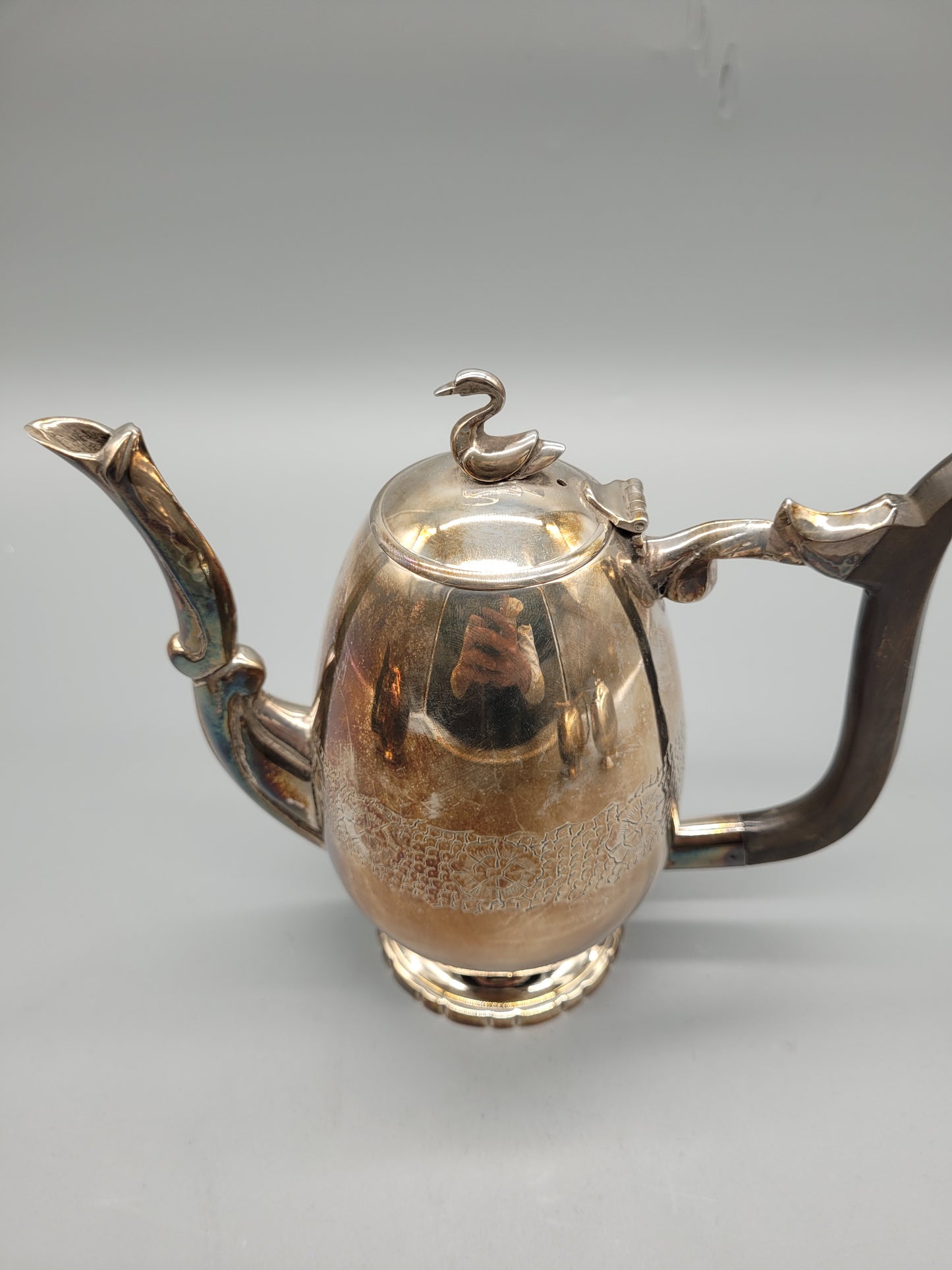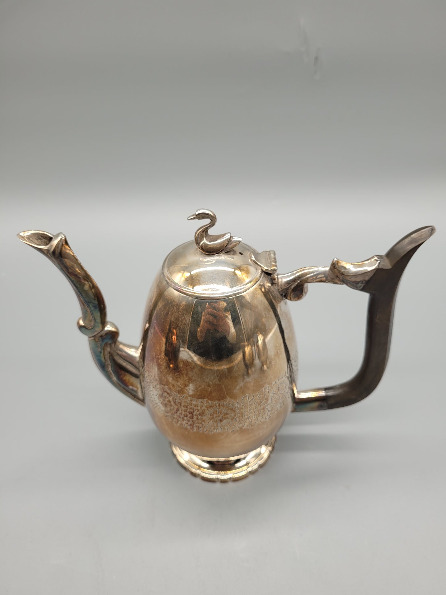 Beschreibung: Entdecken Sie die Anmut vergangener Zeiten mit unserem antiken versilberten Kaffee- und Teeservice. Dieses exquisite Ensemble ist nicht nur ein praktisches Set für die Kaffeetafel, sondern auch ein Ausdruck von Eleganz und Tradition.