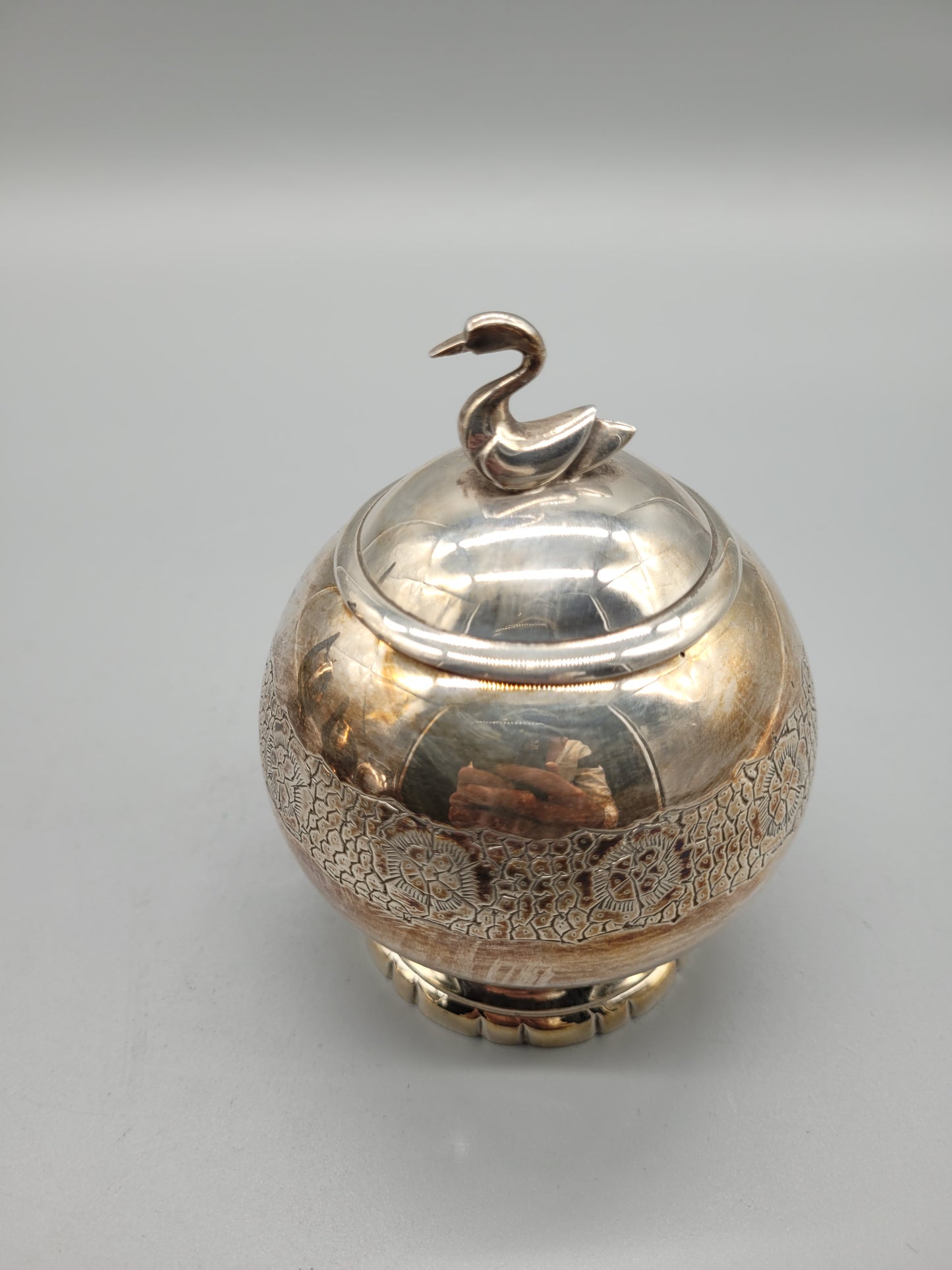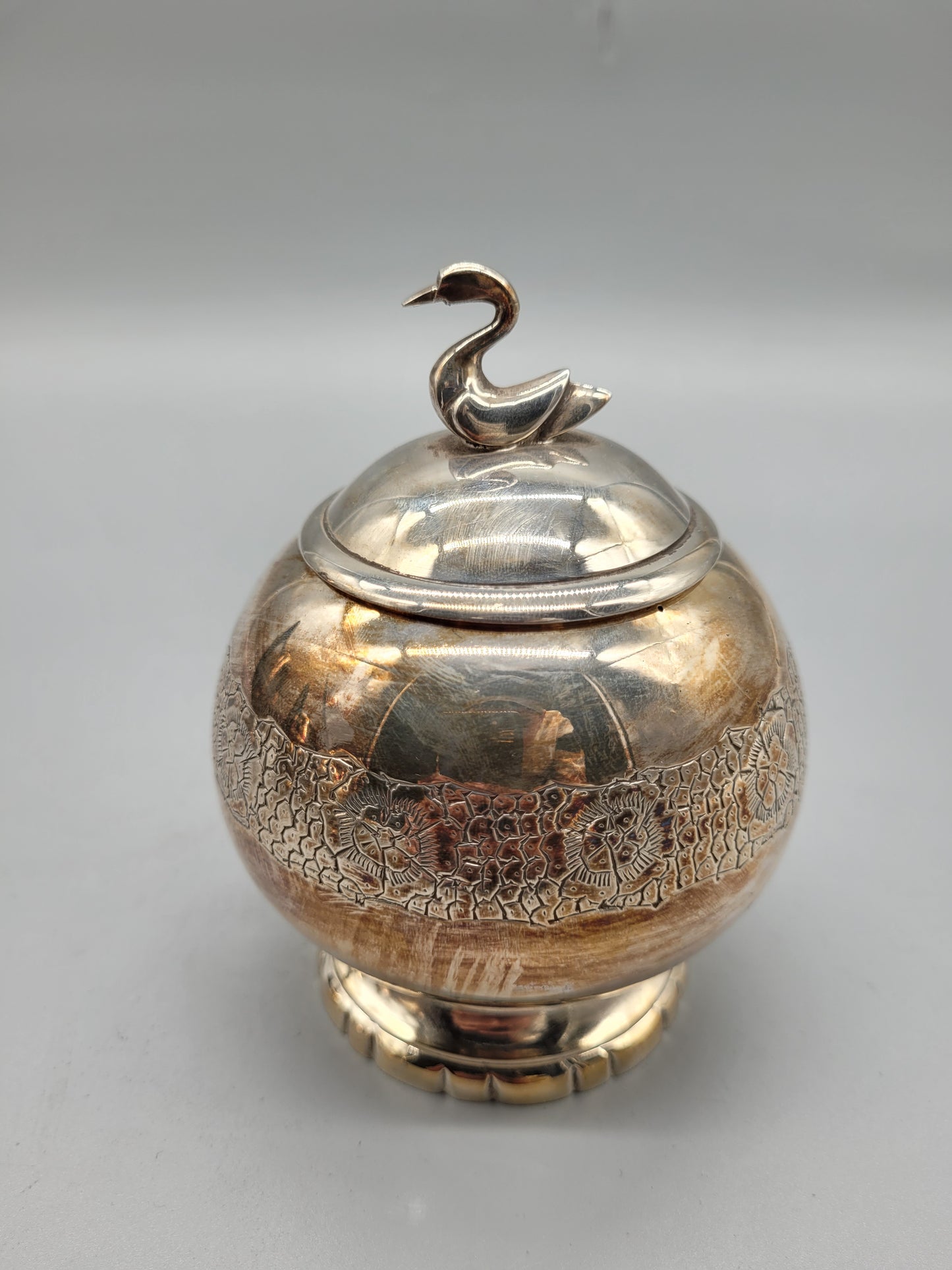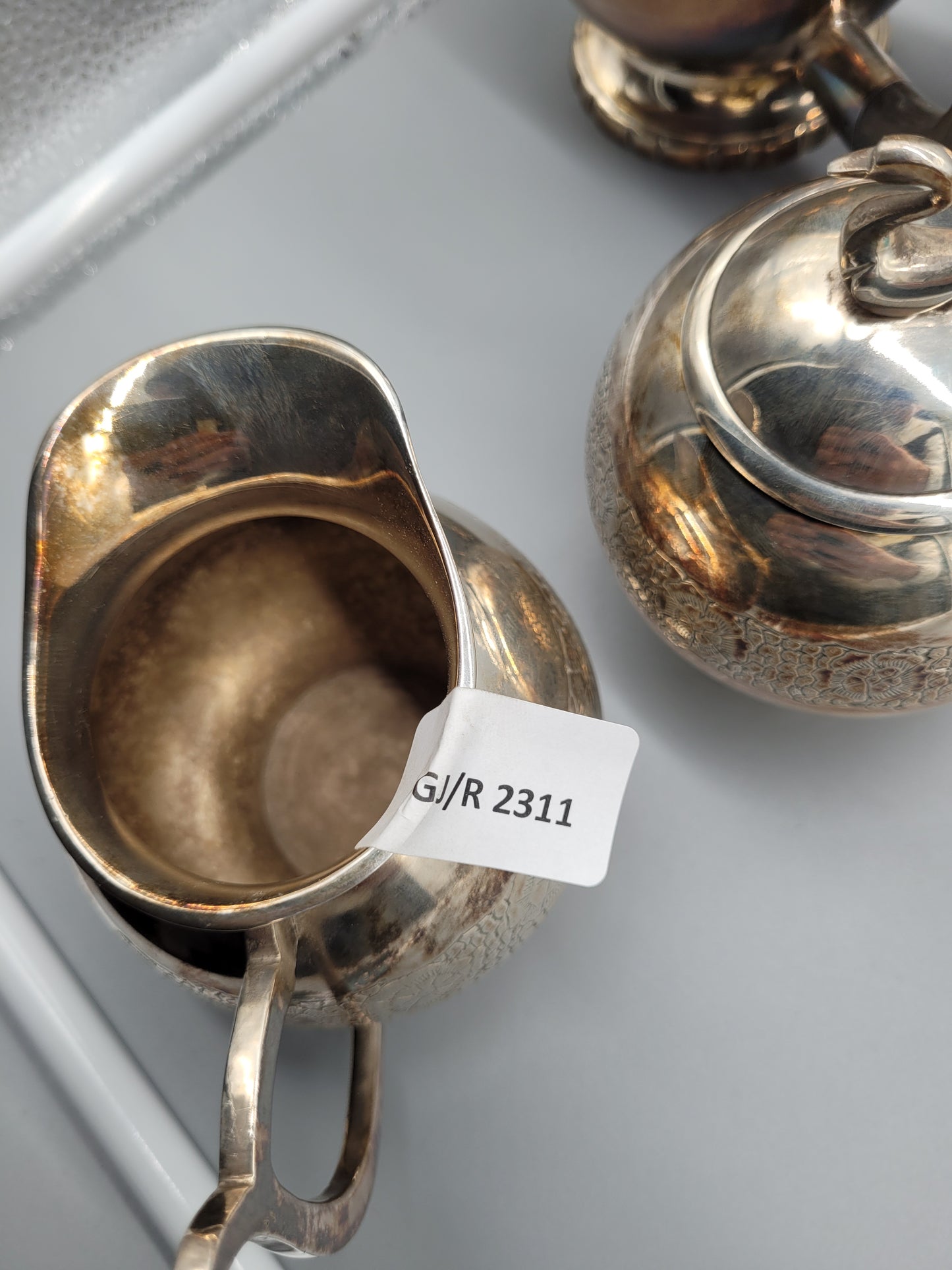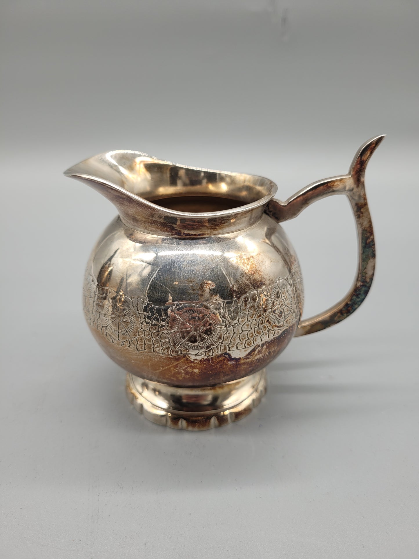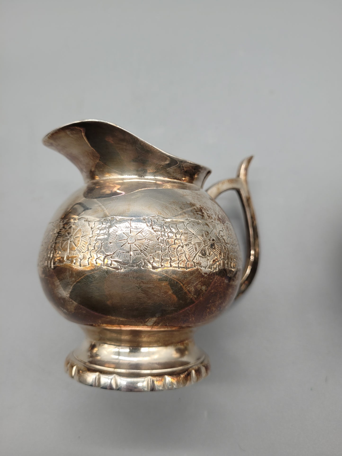 Beschreibung: Entdecken Sie die Anmut vergangener Zeiten mit unserem antiken versilberten Kaffee- und Teeservice. Dieses exquisite Ensemble ist nicht nur ein praktisches Set für die Kaffeetafel, sondern auch ein Ausdruck von Eleganz und Tradition.