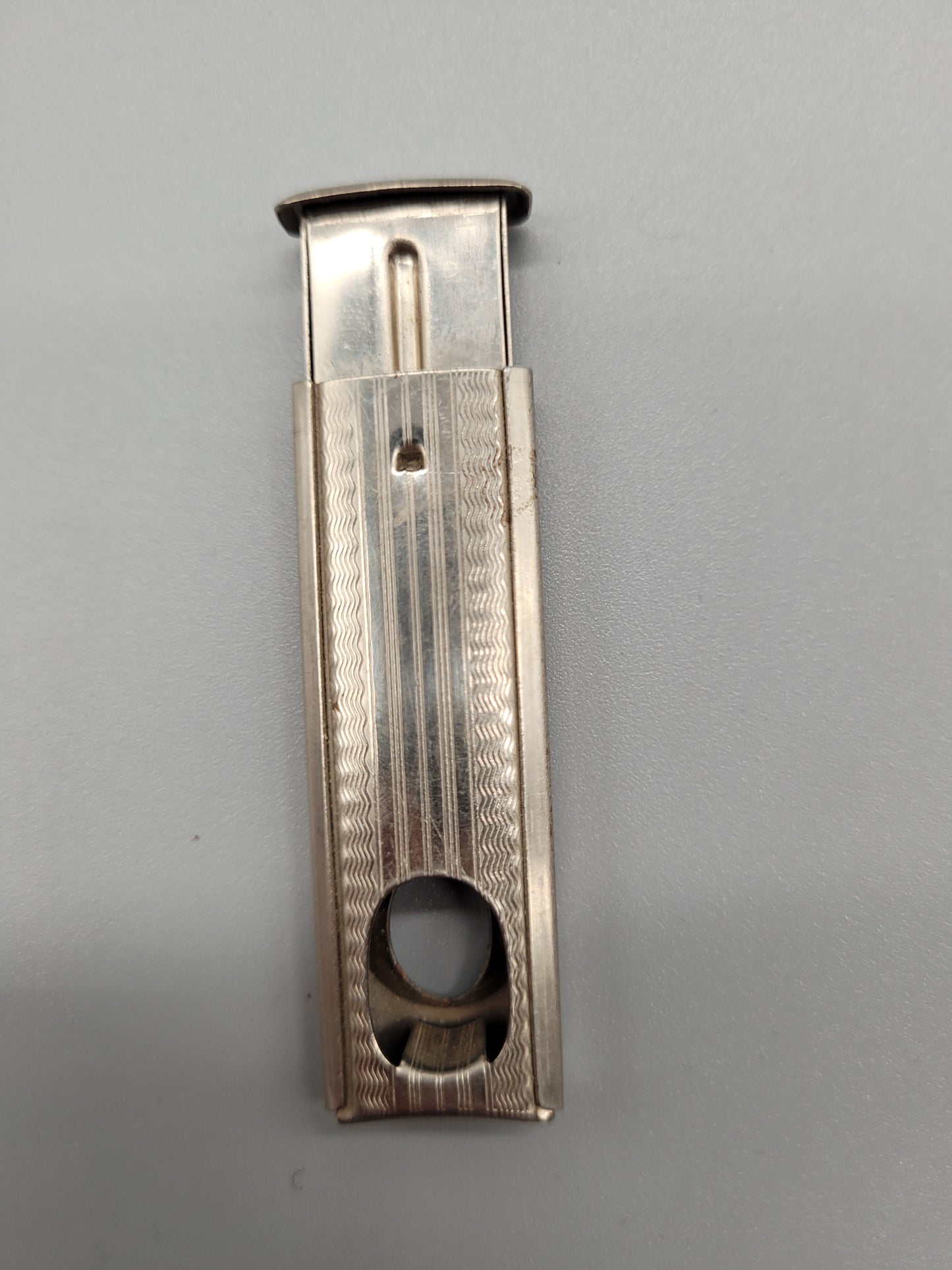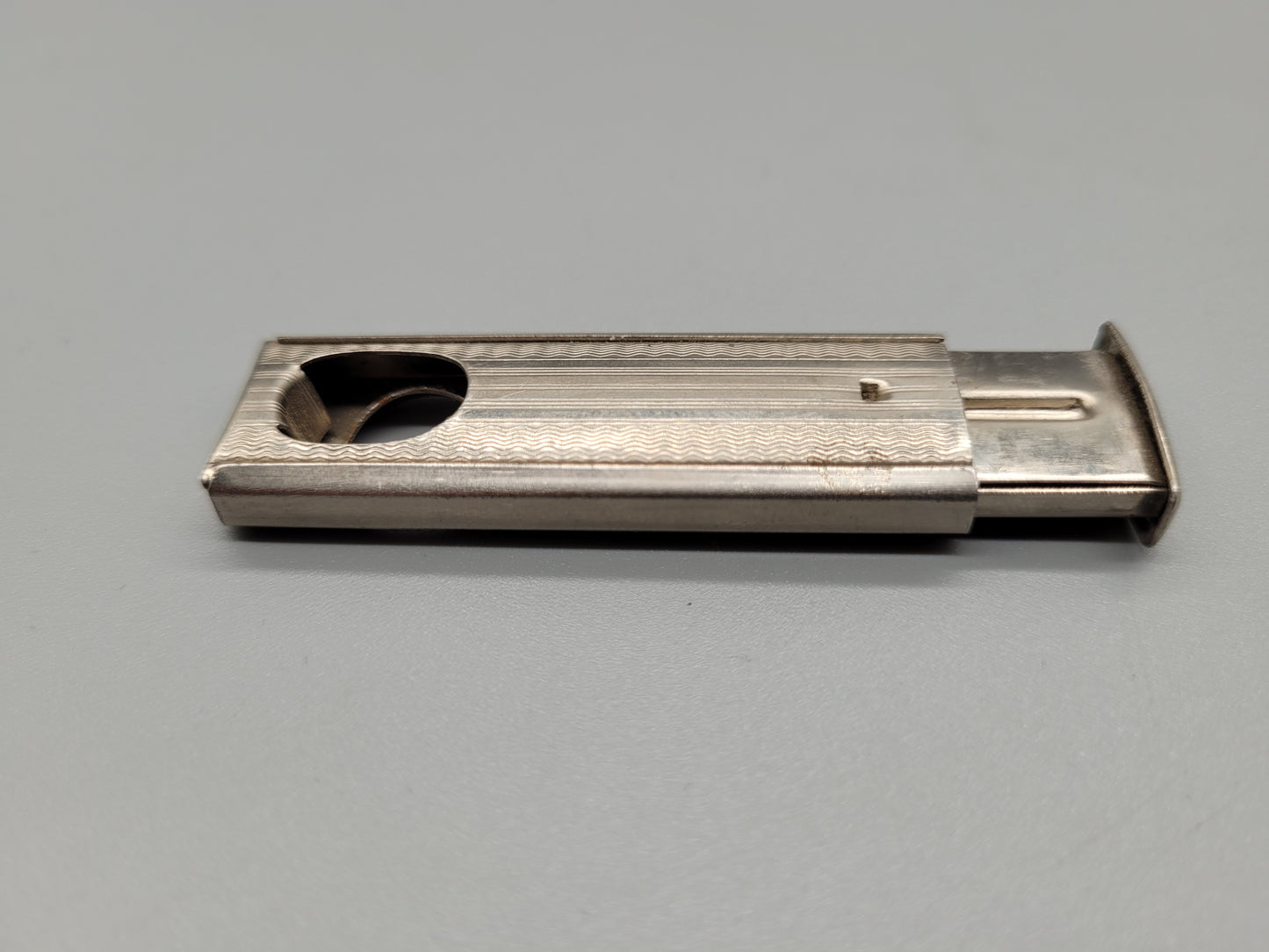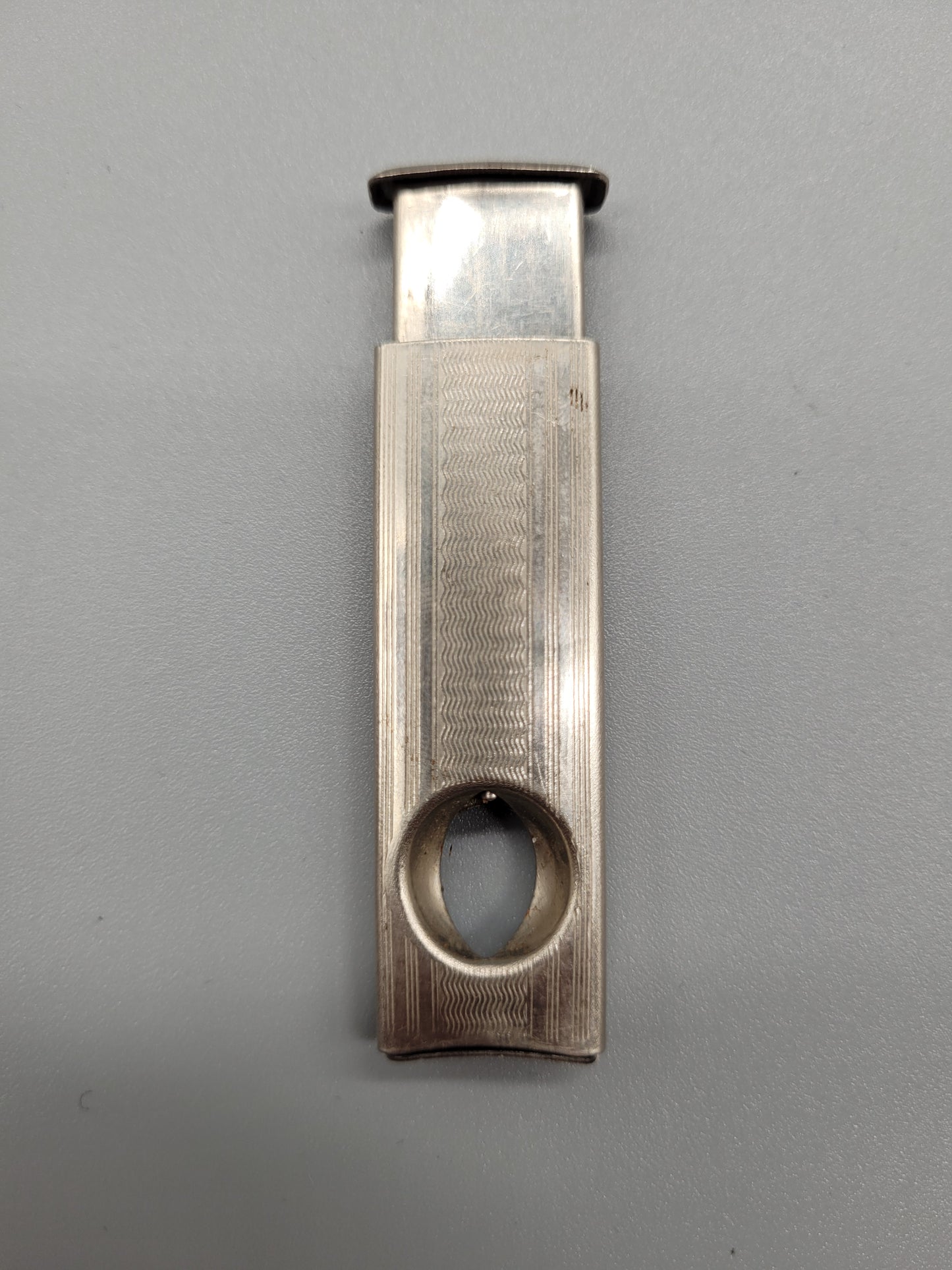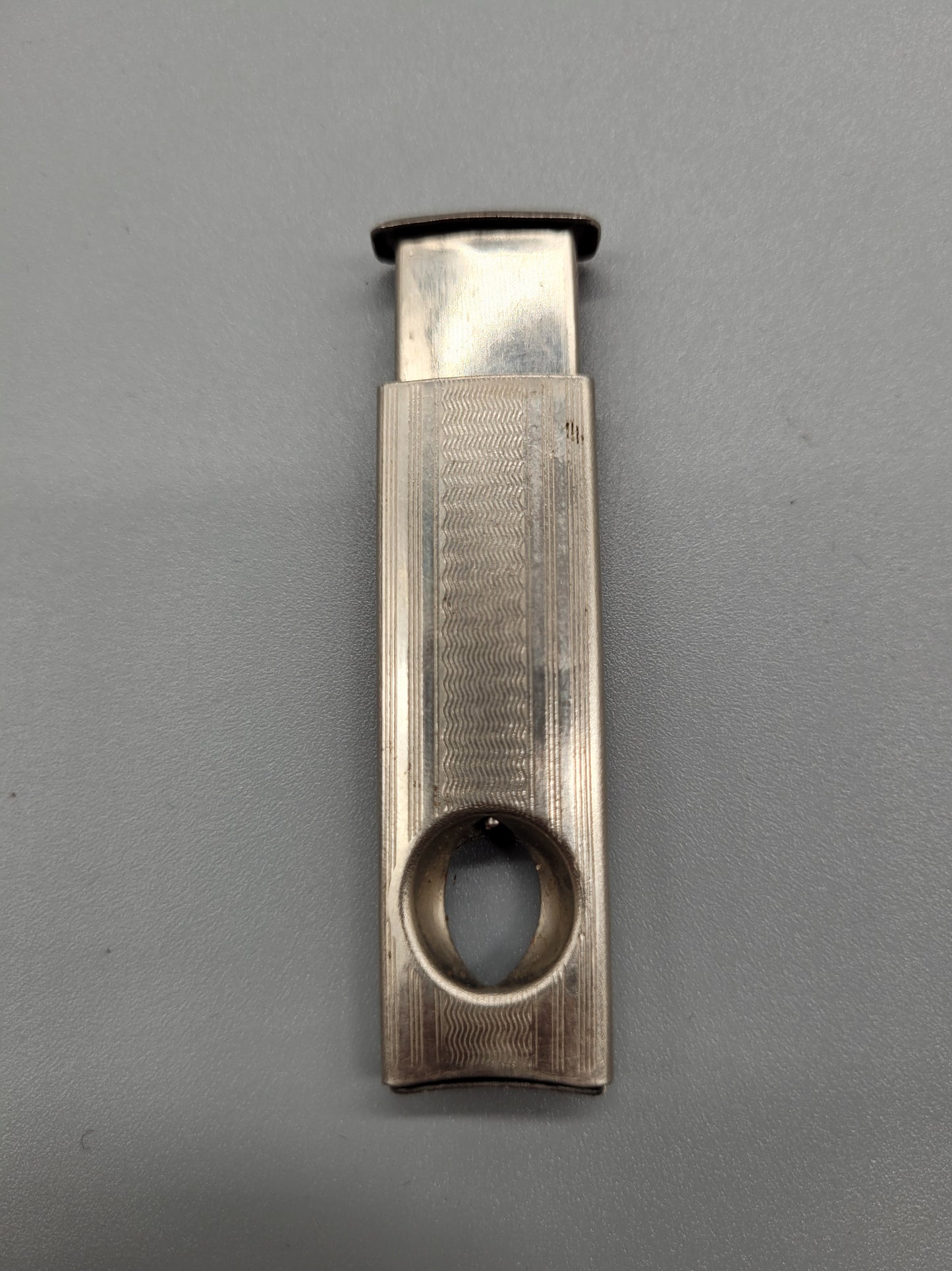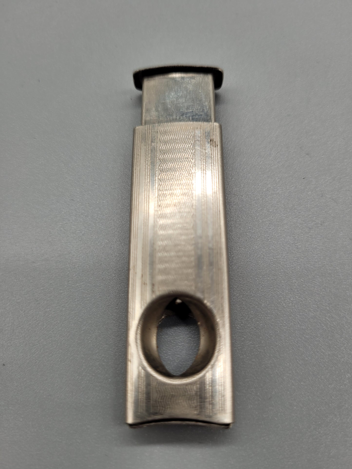 Die filigrane Handwerkskunst und das klassische Design machen diesen antiken Zigaretten Schneider zu einem wahren Schmuckstück. Mit einer Länge von 5,5 cm und einem Gewicht von 13 g ist er nicht nur funktional, sondern auch ein elegantes Accessoire für den stilbewussten Raucher von heute.