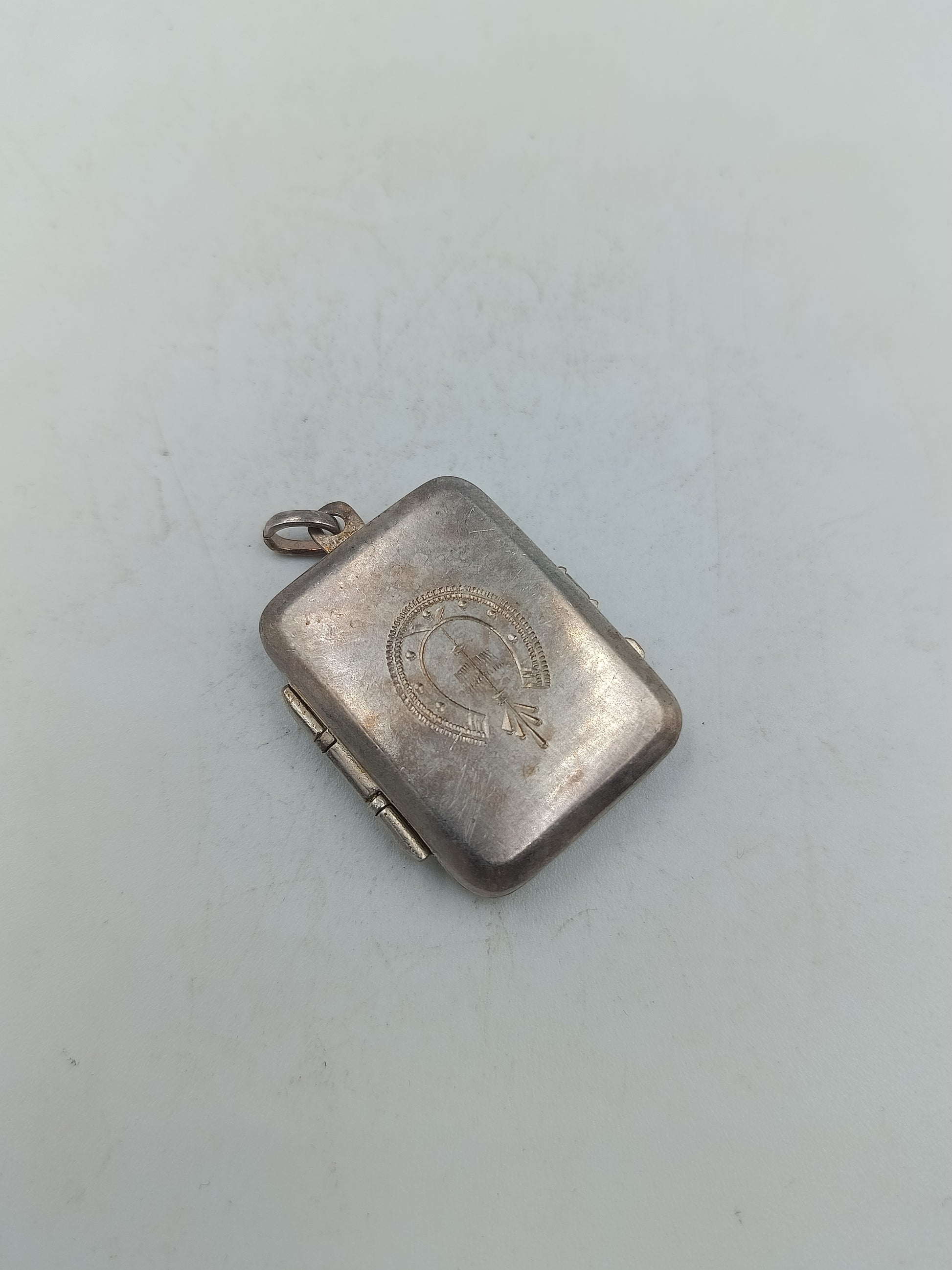 Antikes Medaillon aus Silber mit Gravur und Klappmechanismus