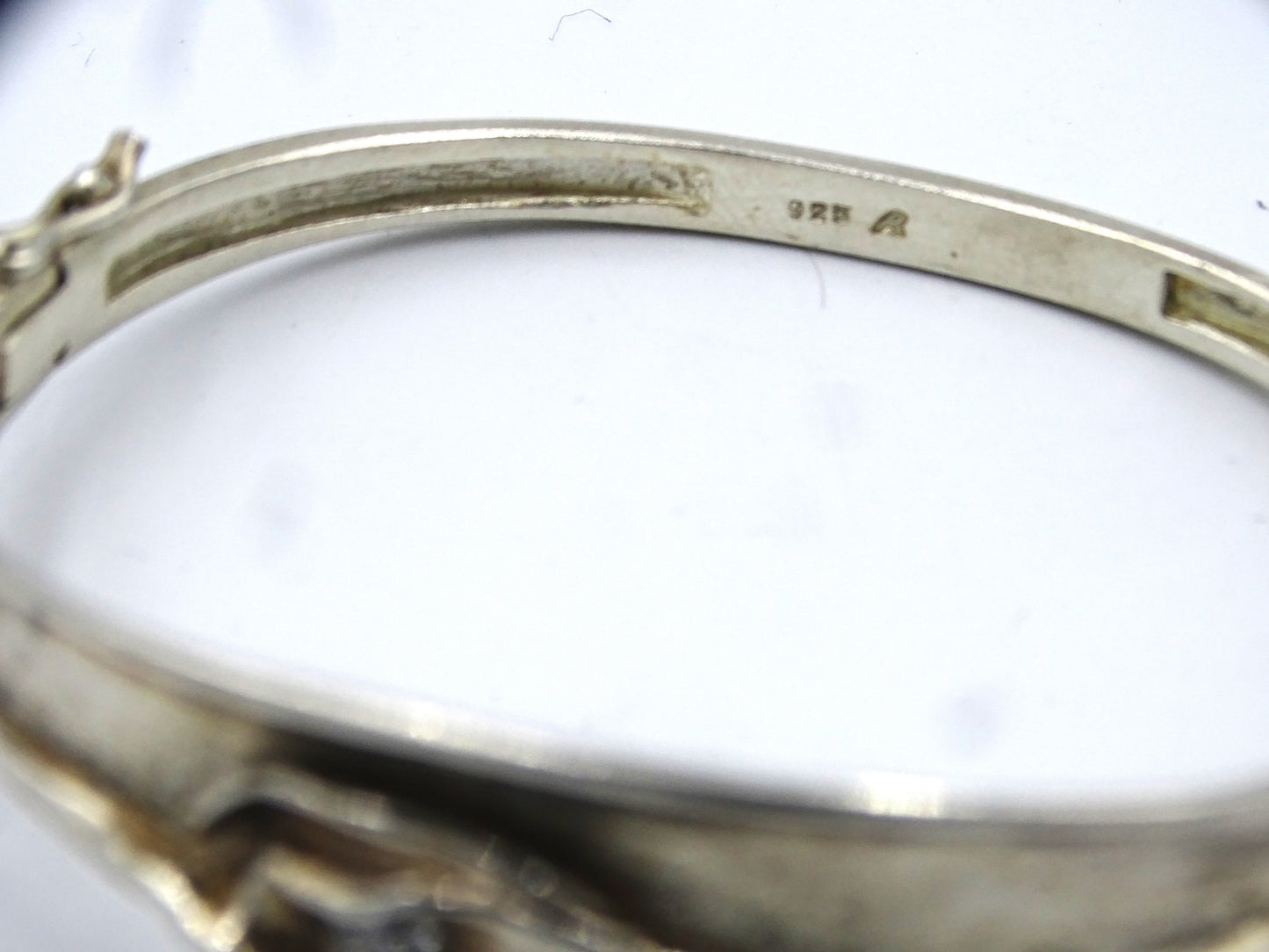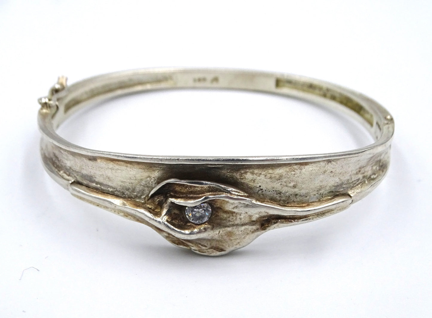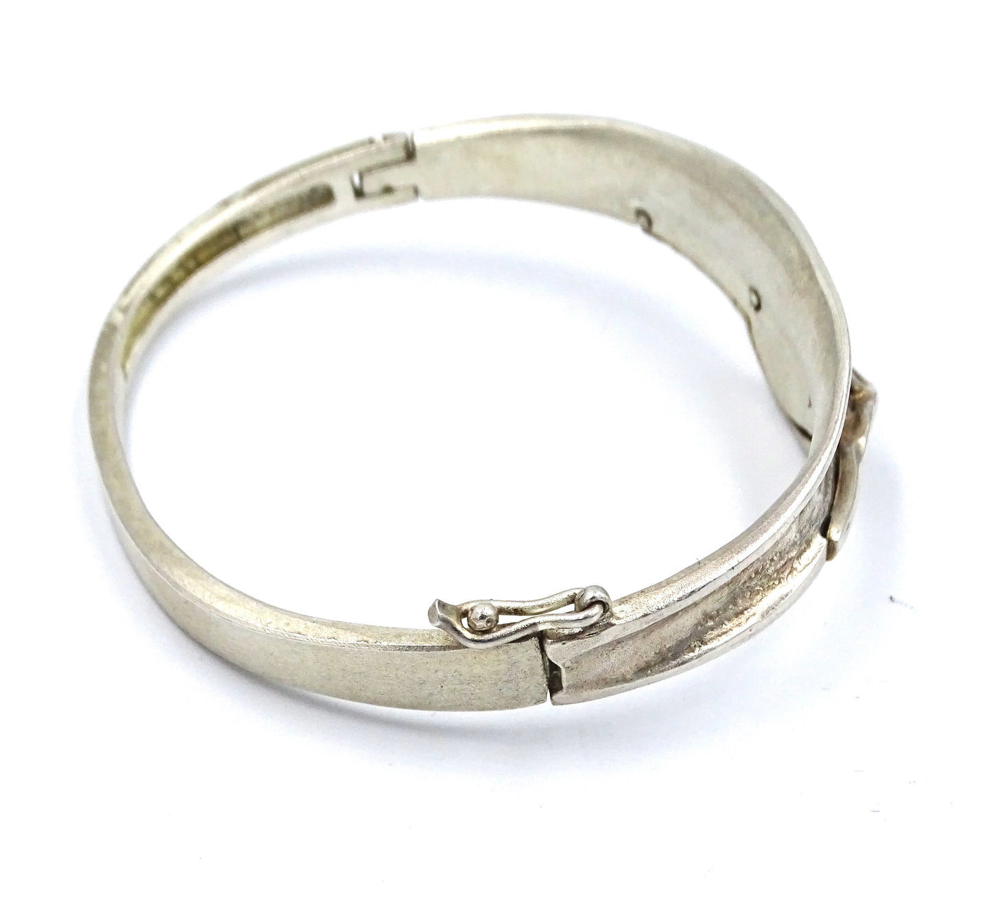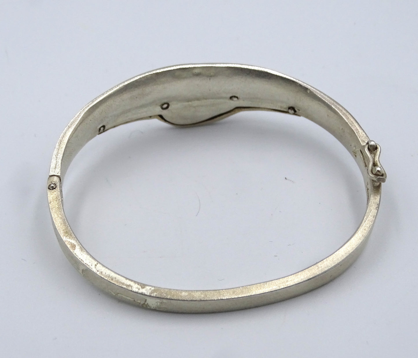 Dieses elegante Armband besticht durch sein sehr schönes Design und die hochwertige Verarbeitung aus 925er Silber. Der geschliffene Stein in der Mitte verleiht dem Schmuckstück eine besondere Note und macht es zu einem echten Blickfang. Mit seinen Maßen von 60 x 50 mm und einem Gewicht von 25,2 Gramm liegt es angenehm am Handgelenk und lässt sich zu verschiedensten Anlässen tragen.
