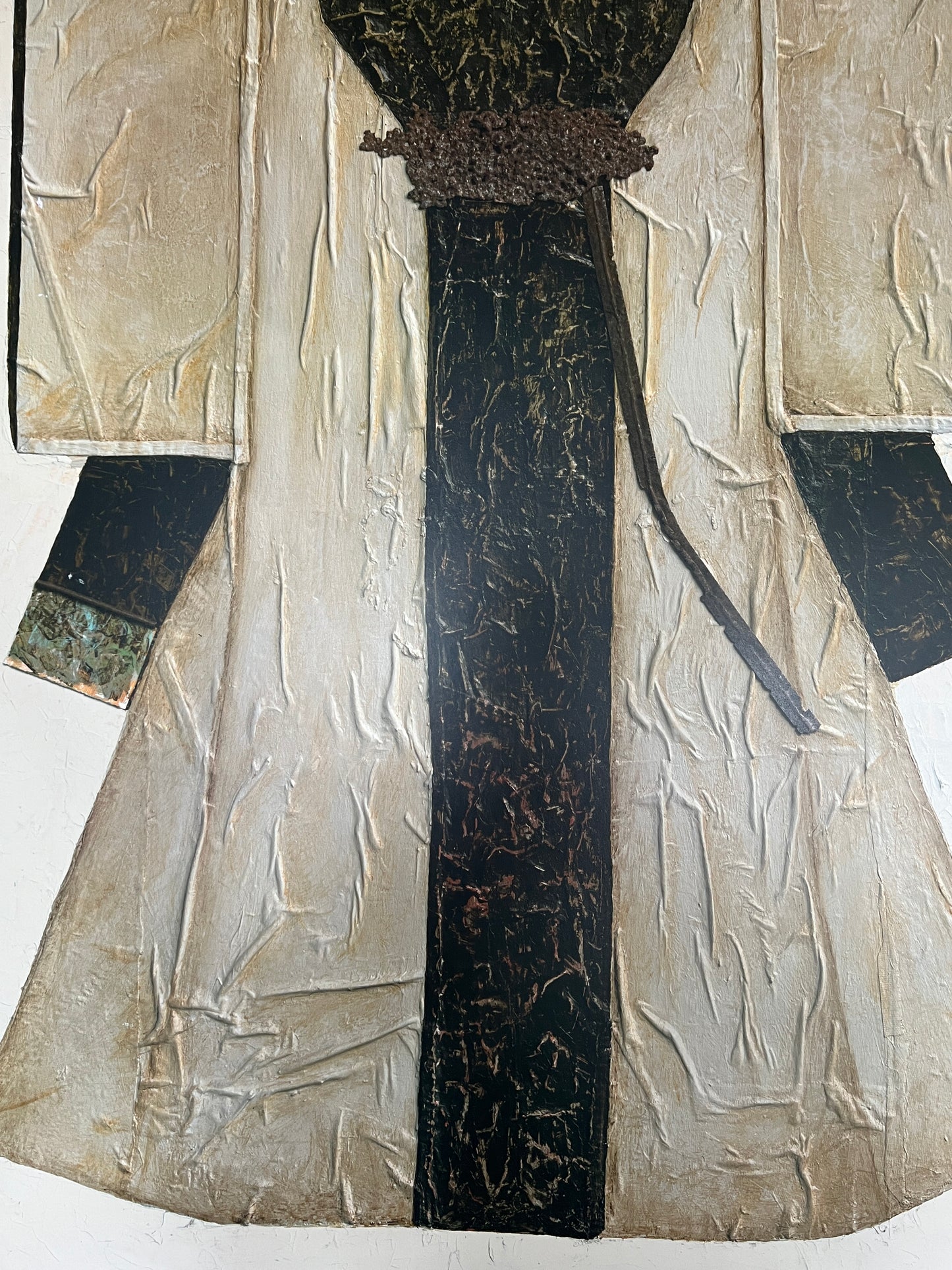 Asiatische Schule (XX) Mischtechnik Großes Gemälde Kimono 150x100cm