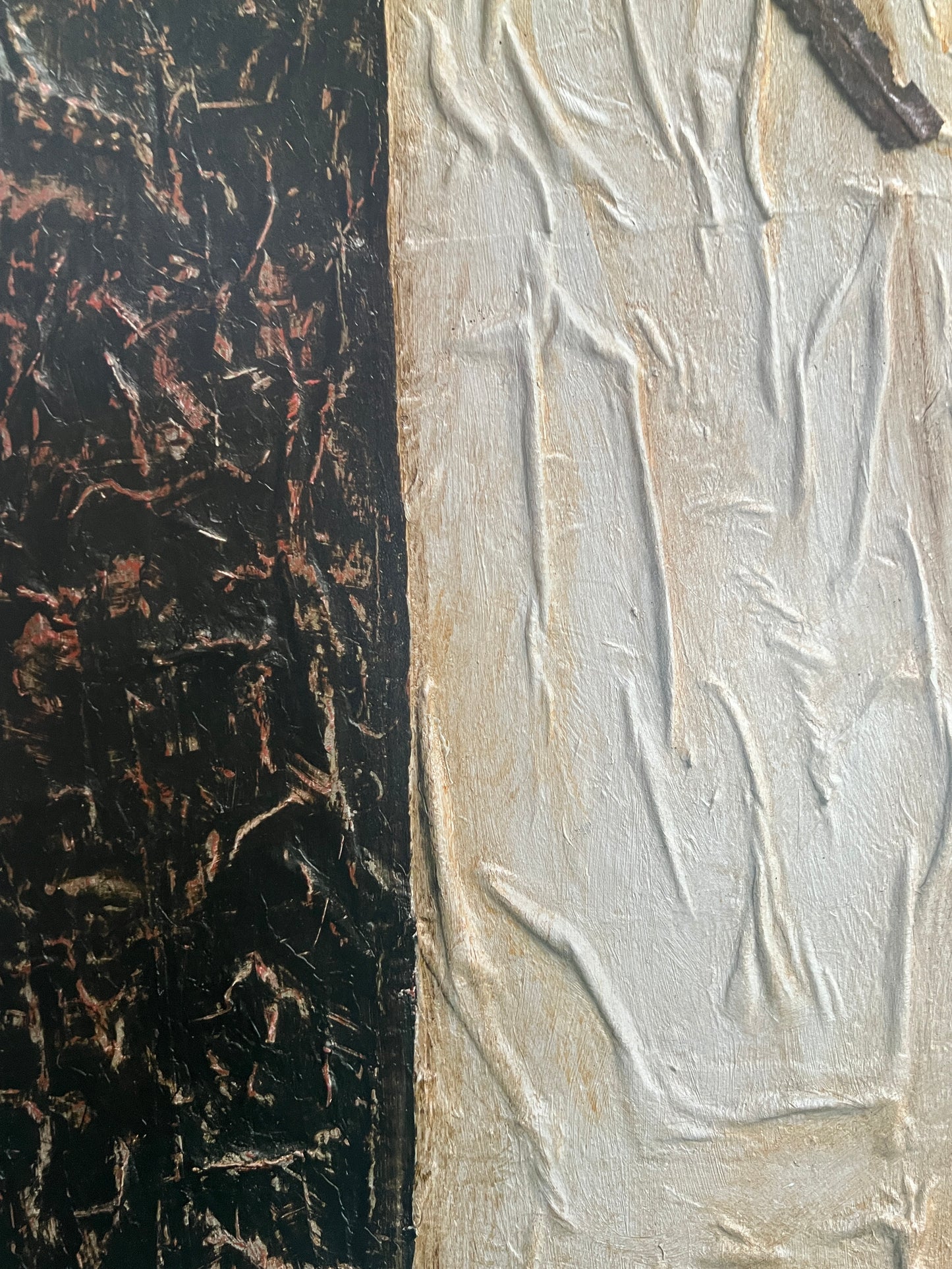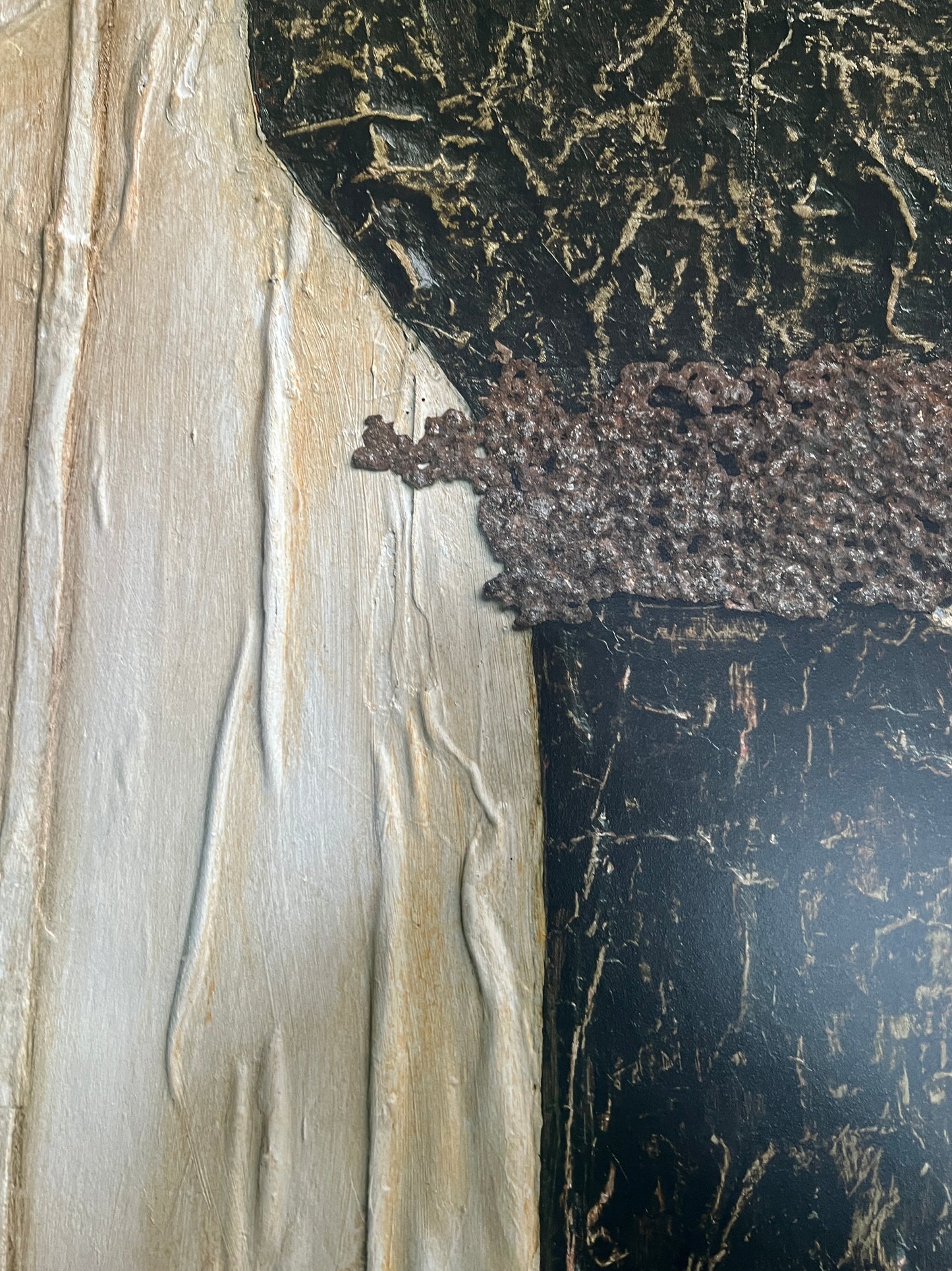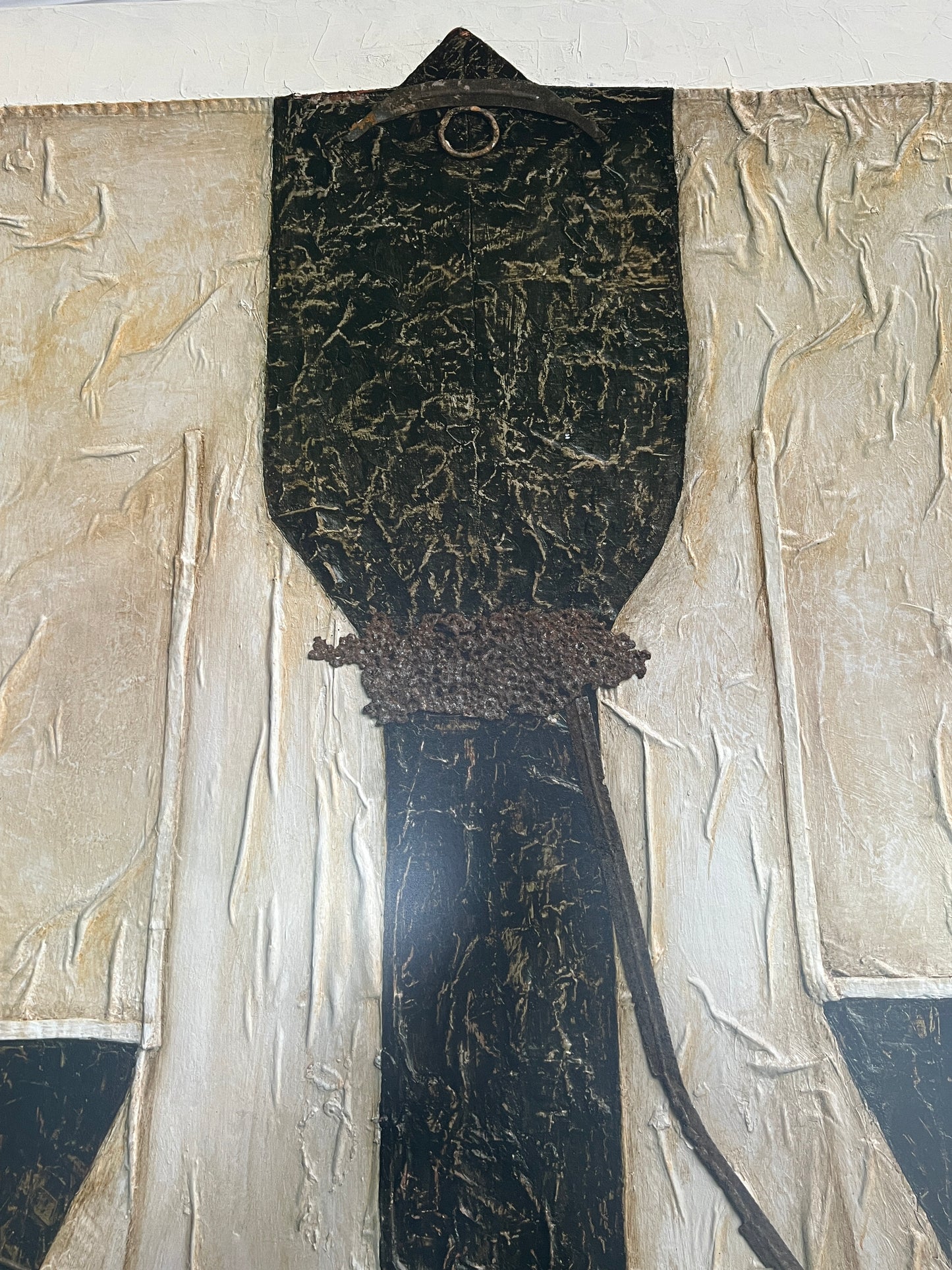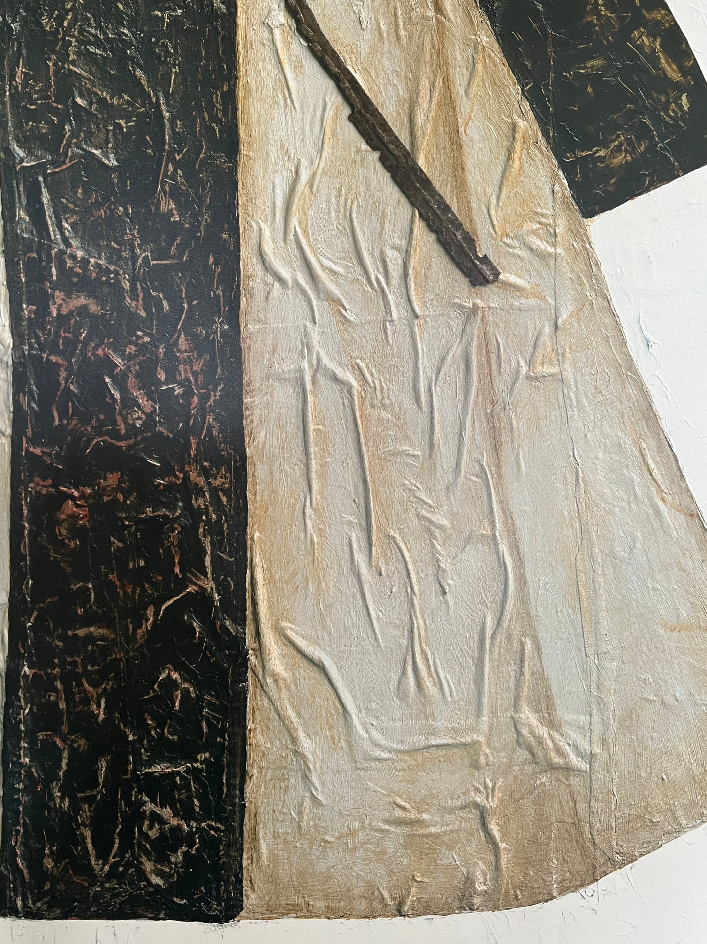 Beschreibung: Dieses großformatige Gemälde der Asiatischen Schule präsentiert einen atemberaubenden Kimono in einer modernen und zeitgenössischen Interpretation. Die Mischtechnik auf Karton erzeugt eine einzigartige visuelle Wirkung, die die Schönheit und Eleganz des Kimonos einfängt. Mit einer Größe von 150x100cm ist dieses Gemälde ein beeindruckendes Kunstwerk, das jeden Raum bereichert. Der Zustand des Gemäldes wird als sehr gut beschrieben und kann auf den beigefügten Fotos überprüft werden.