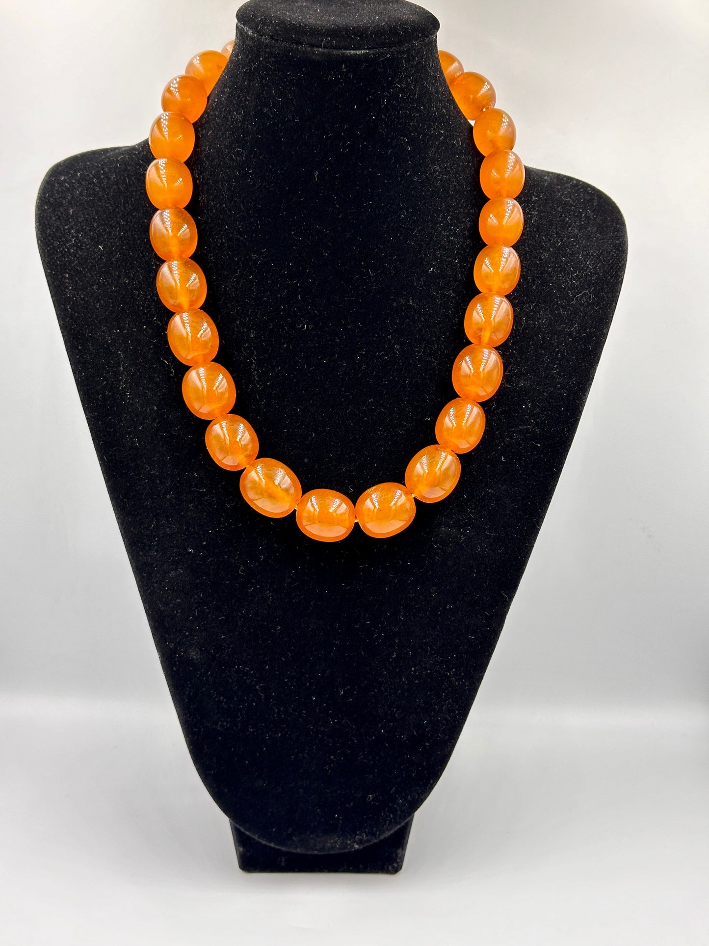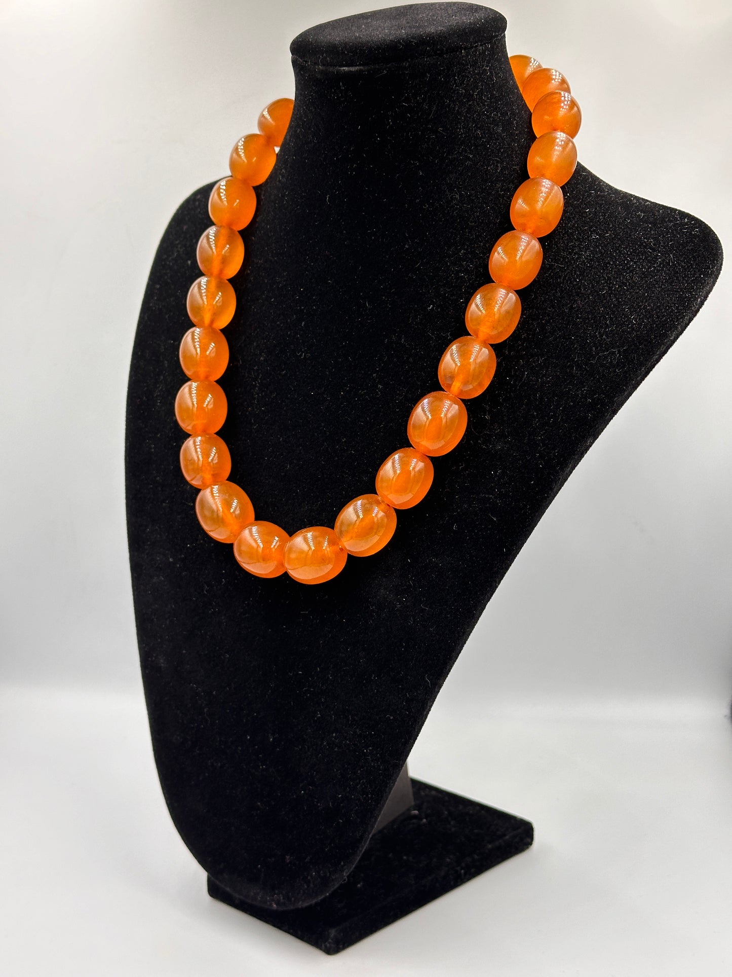 Bakelit-Kette mit orangefarbenen Kugeln und goldfarbenem Verschluss