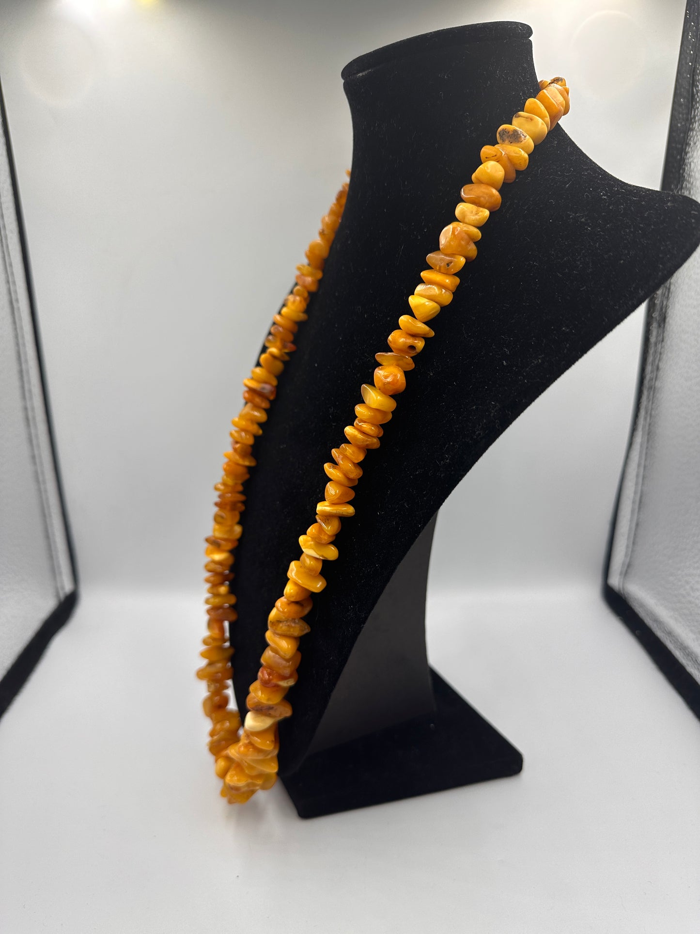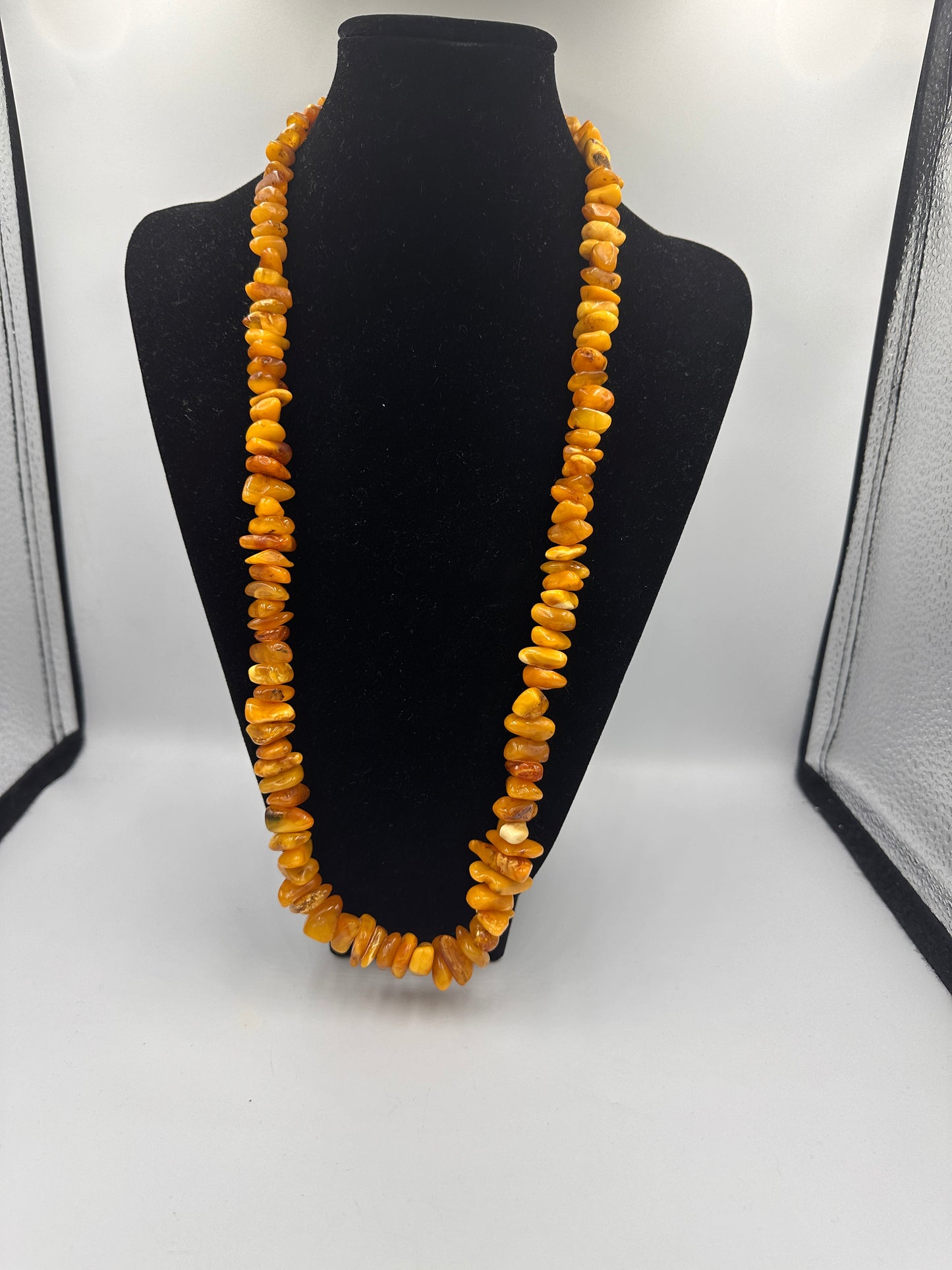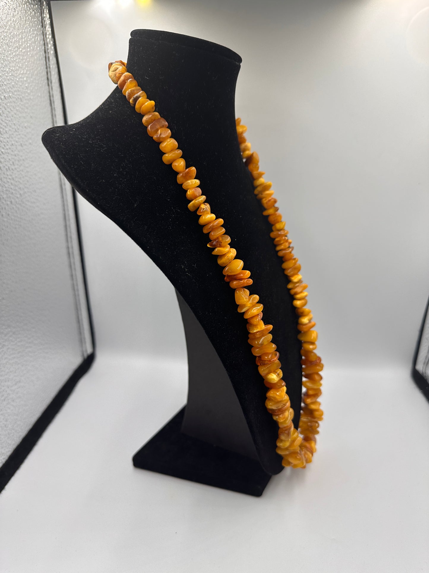 Erleben Sie die Schönheit der Natur mit dieser einzigartigen Bernstein Butterscotch Halskette. Mit einer Länge von 70 cm und einem Gewicht von 65,6 Gramm liegt die Kette angenehm und leicht auf der Haut. Trotz ihres gebrauchten Zustands ist sie gut erhalten und strahlt eine warme, honigartige Farbe aus, die charakteristisch für Butterscotch-Bernstein ist. Dieses Schmuckstück ist ein perfektes Accessoire für jeden Anlass und eignet sich auch hervorragend als besonderes Geschenk. Lassen Sie sich von der natürlichen Eleganz dieser Kette verzaubern.