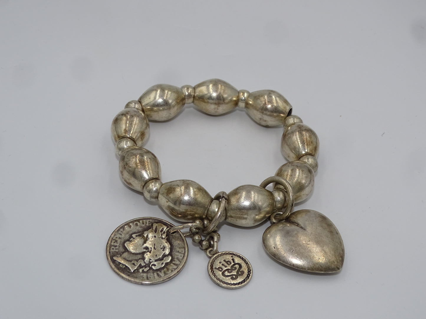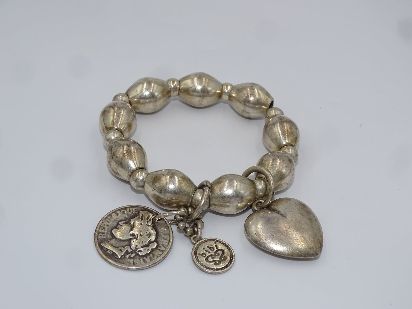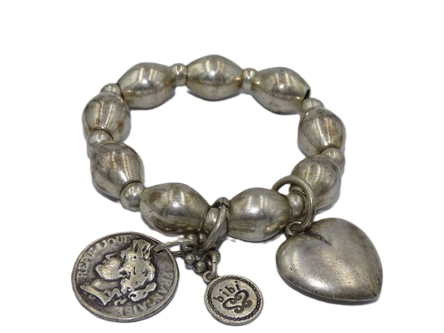 Bibi Bijoux Silvertone Massivarmband mit Herz- und Münzanhänger