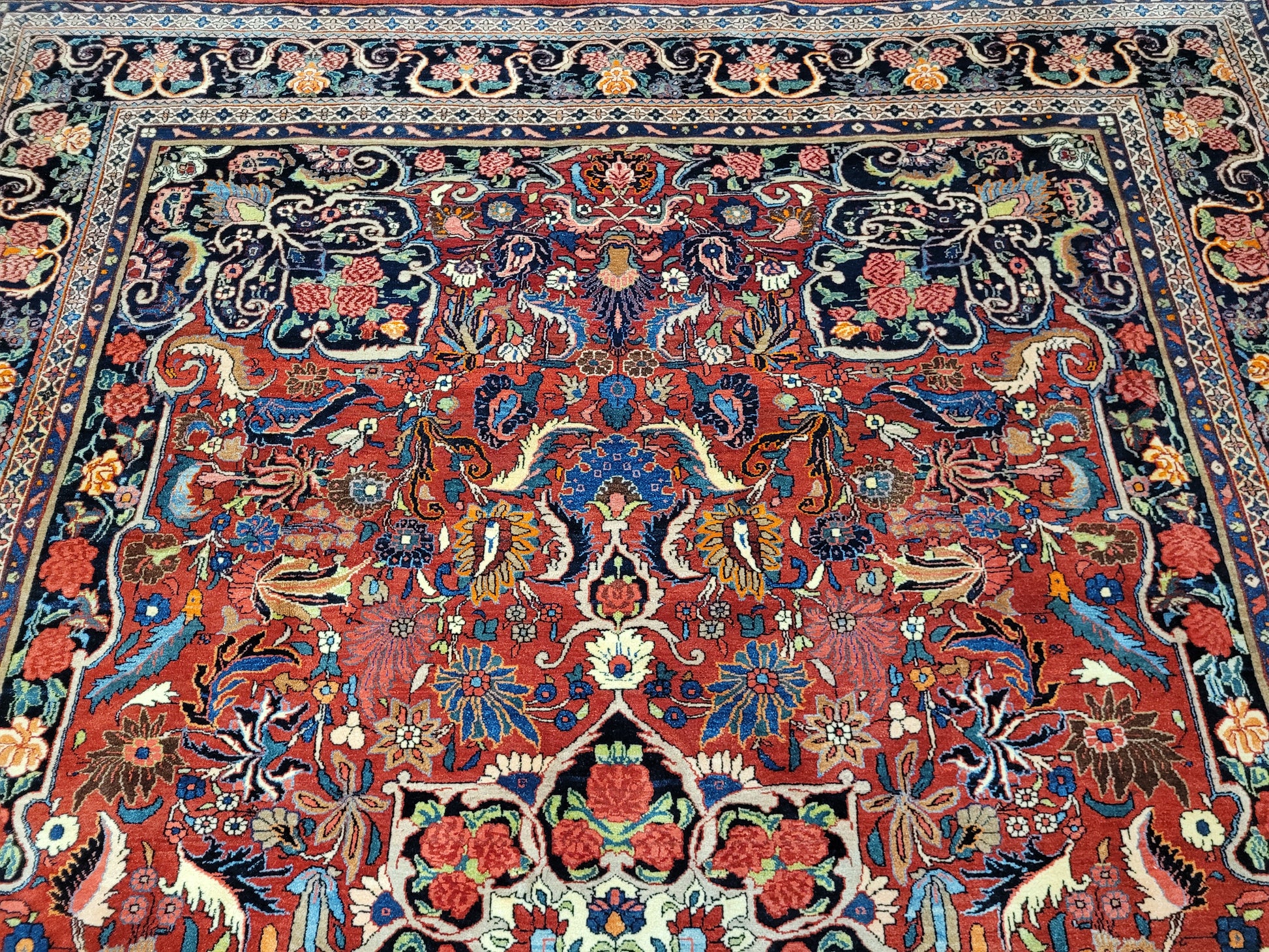 angeboten wird ein prachtvoller, handgeknüpfter Bidjar Teppich in klassischer Ausführung mit leuchtend rotem Fond und üppigem Rosenmotiv. Der Teppich besticht durch seine außergewöhnlich dichte Knüpfung und die robuste Wolle, die ihm den für Bidjar typischen, festen Griff verleiht. Das reiche Blütendekor mit floralen Arabesken und zentralem Sternmedaillon verleiht diesem Stück eine beeindruckende Tiefe und Ausdruckskraft.