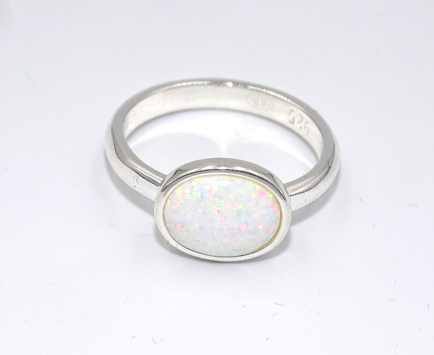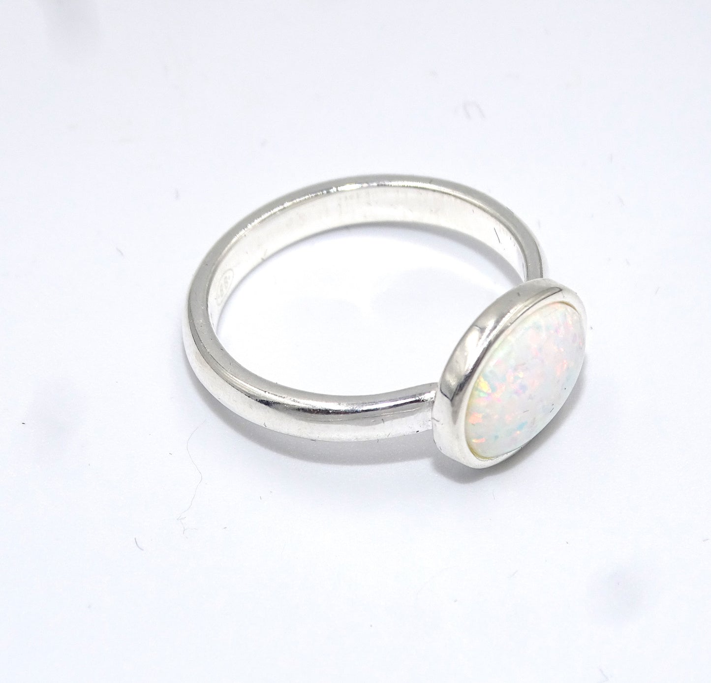 Bijou Brigitte Silberring mit Weißem Opal – Größe 57