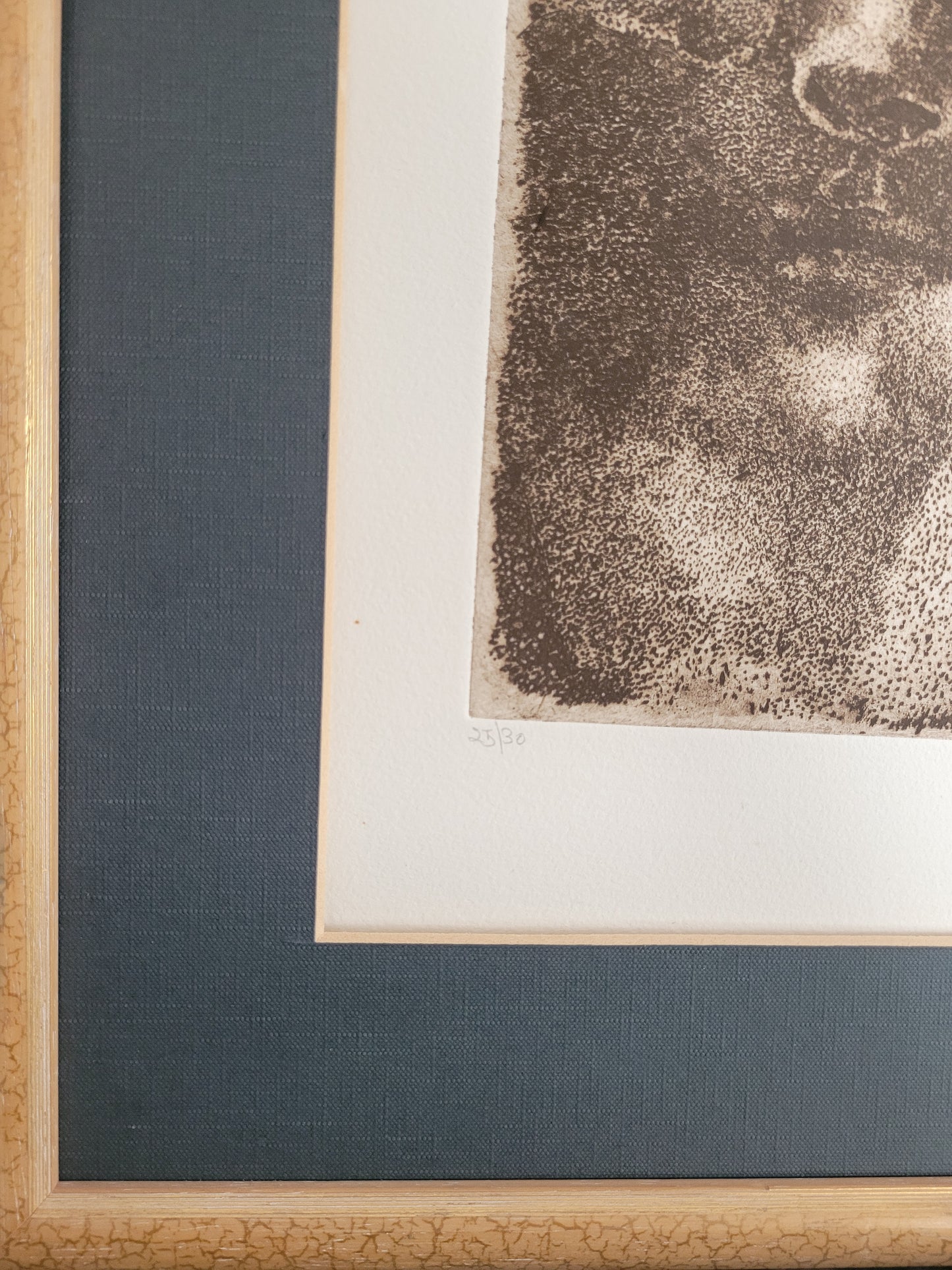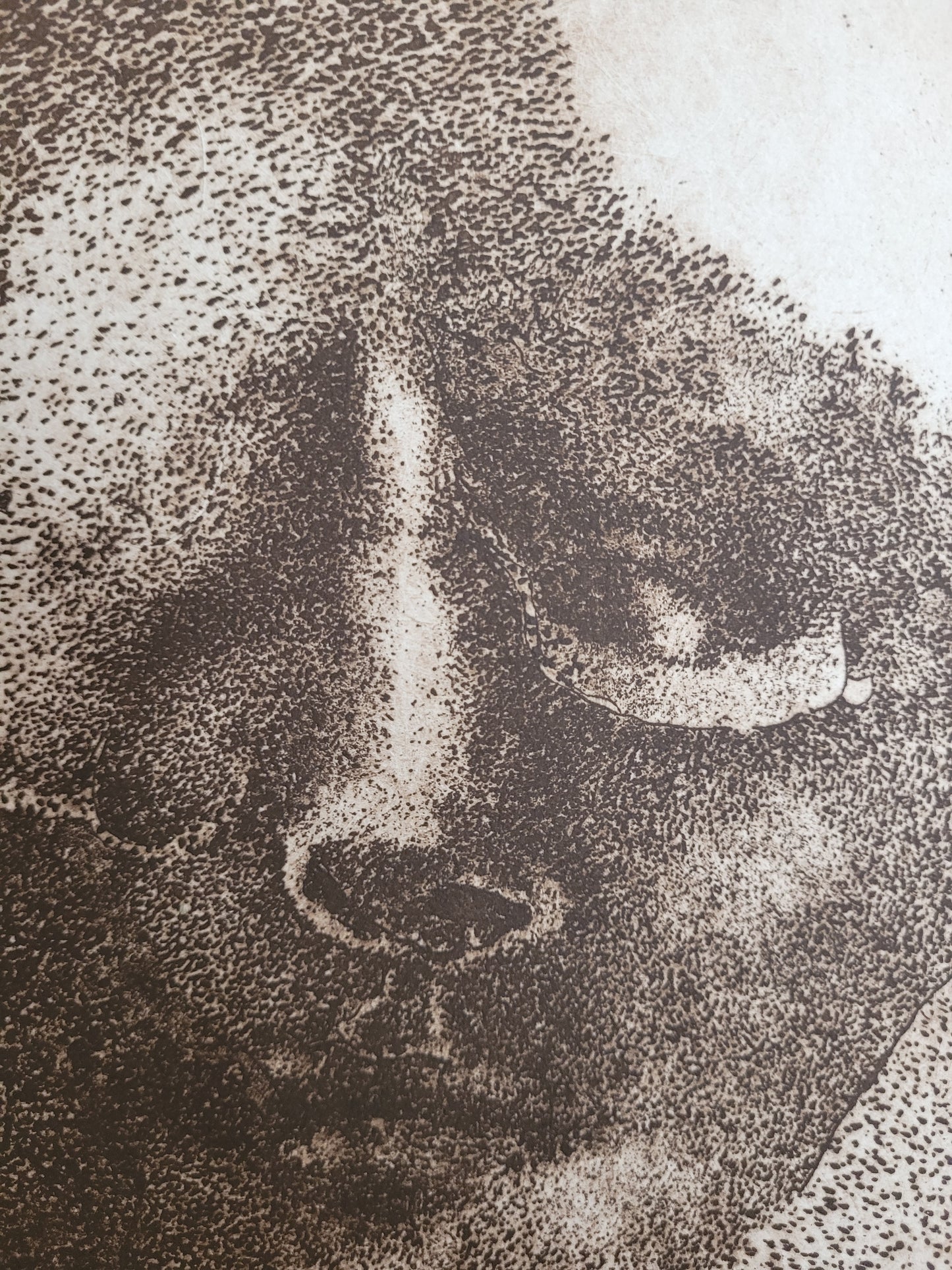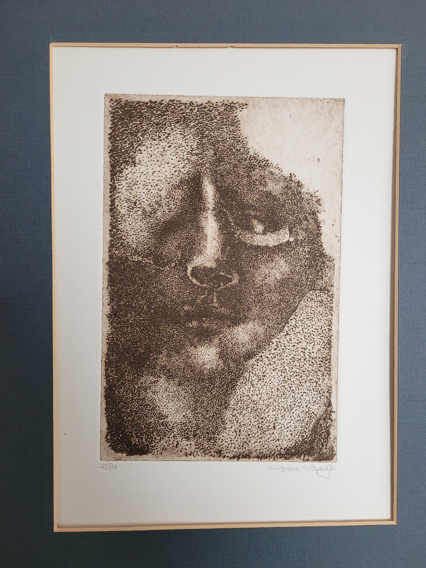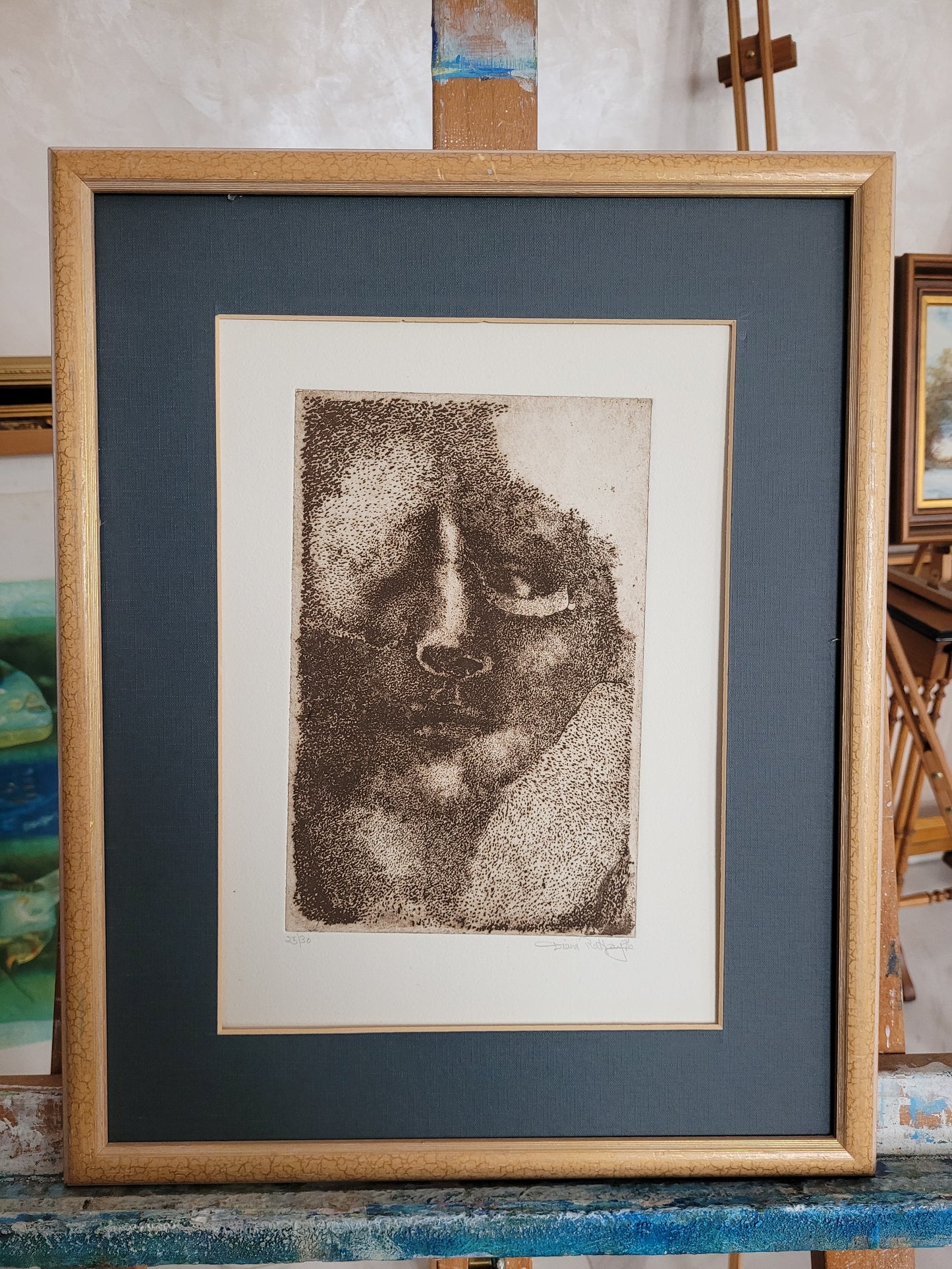 Beschreibung: Entdecken Sie die zeitlose Schönheit eines Frauenporträts mit unserer beeindruckenden Radierung. Dieses kunstvolle Werk fängt die Anmut und Eleganz eines weiblichen Gesichts auf eindrucksvolle Weise ein und verleiht jedem Raum eine subtile, aber bemerkenswerte Note.
