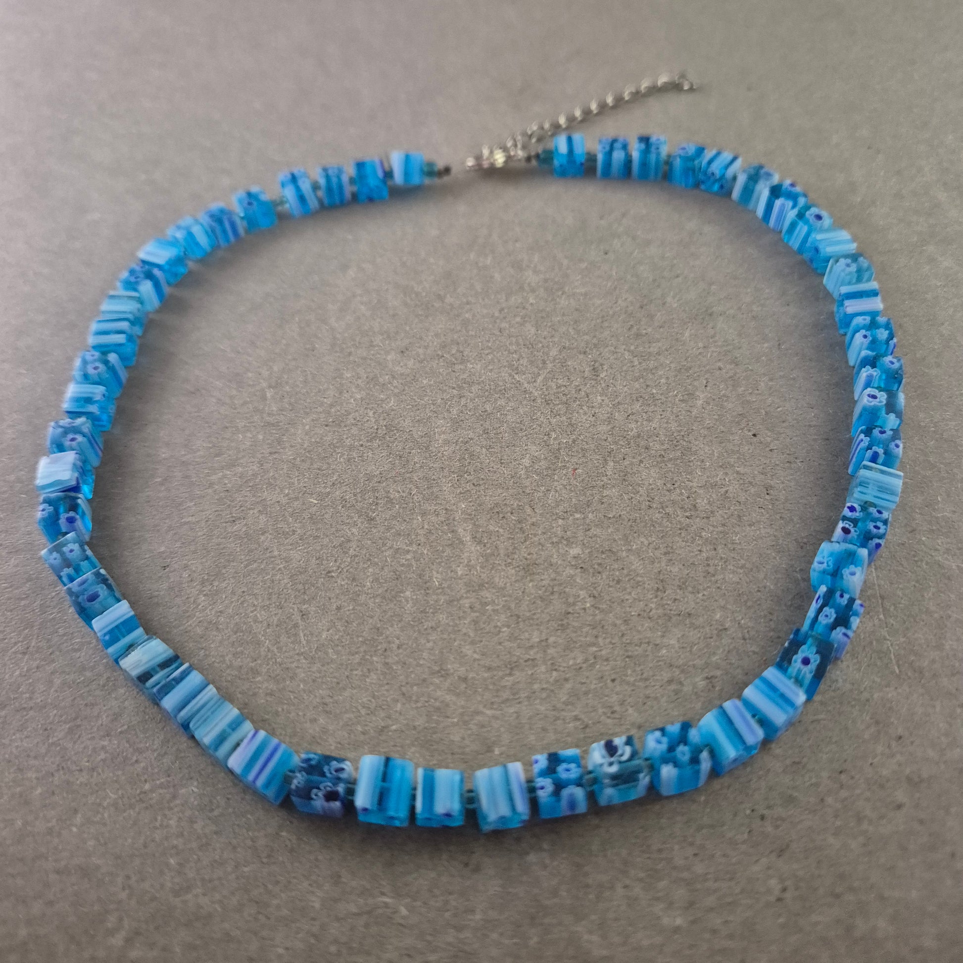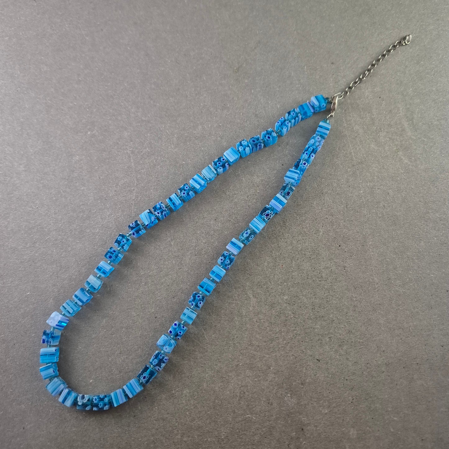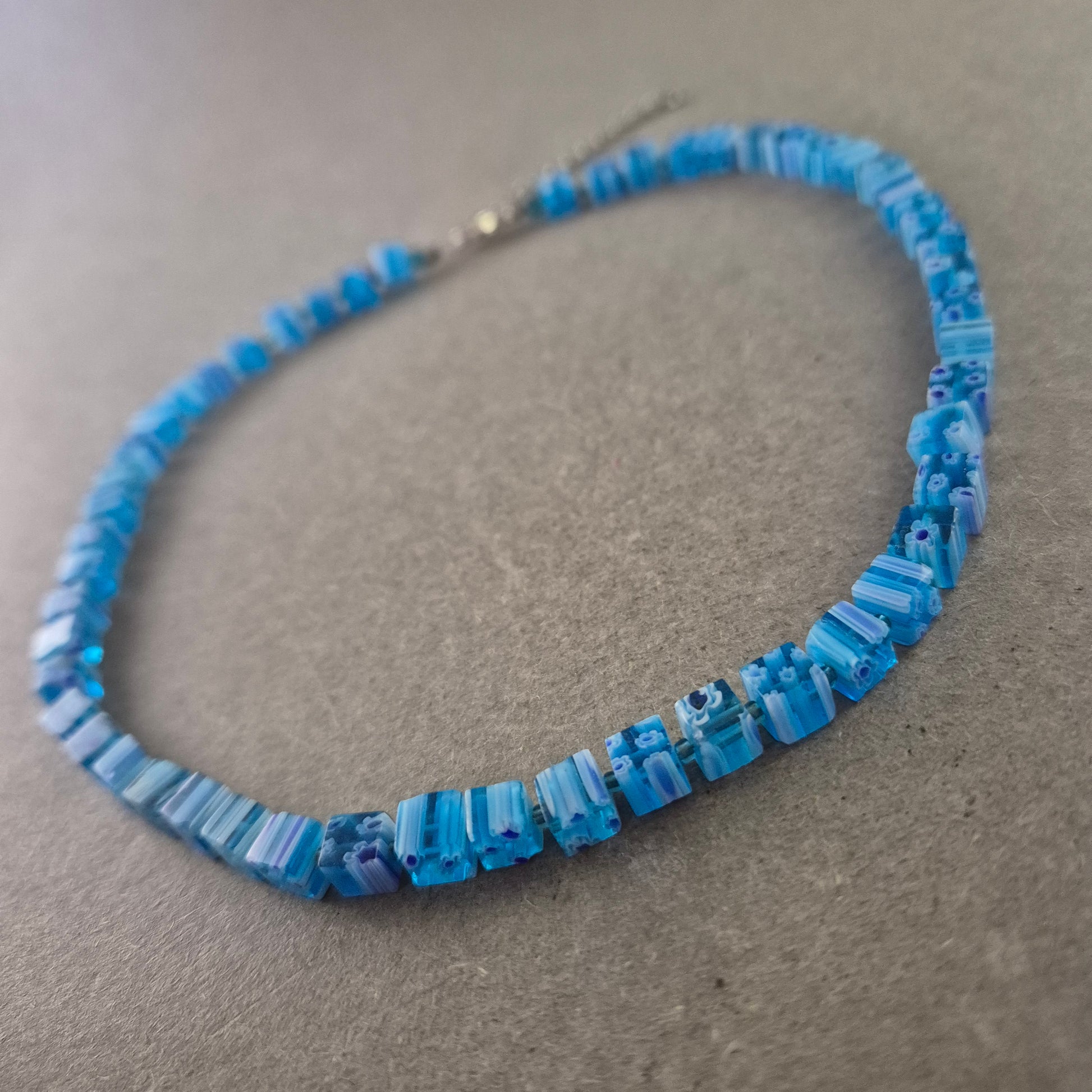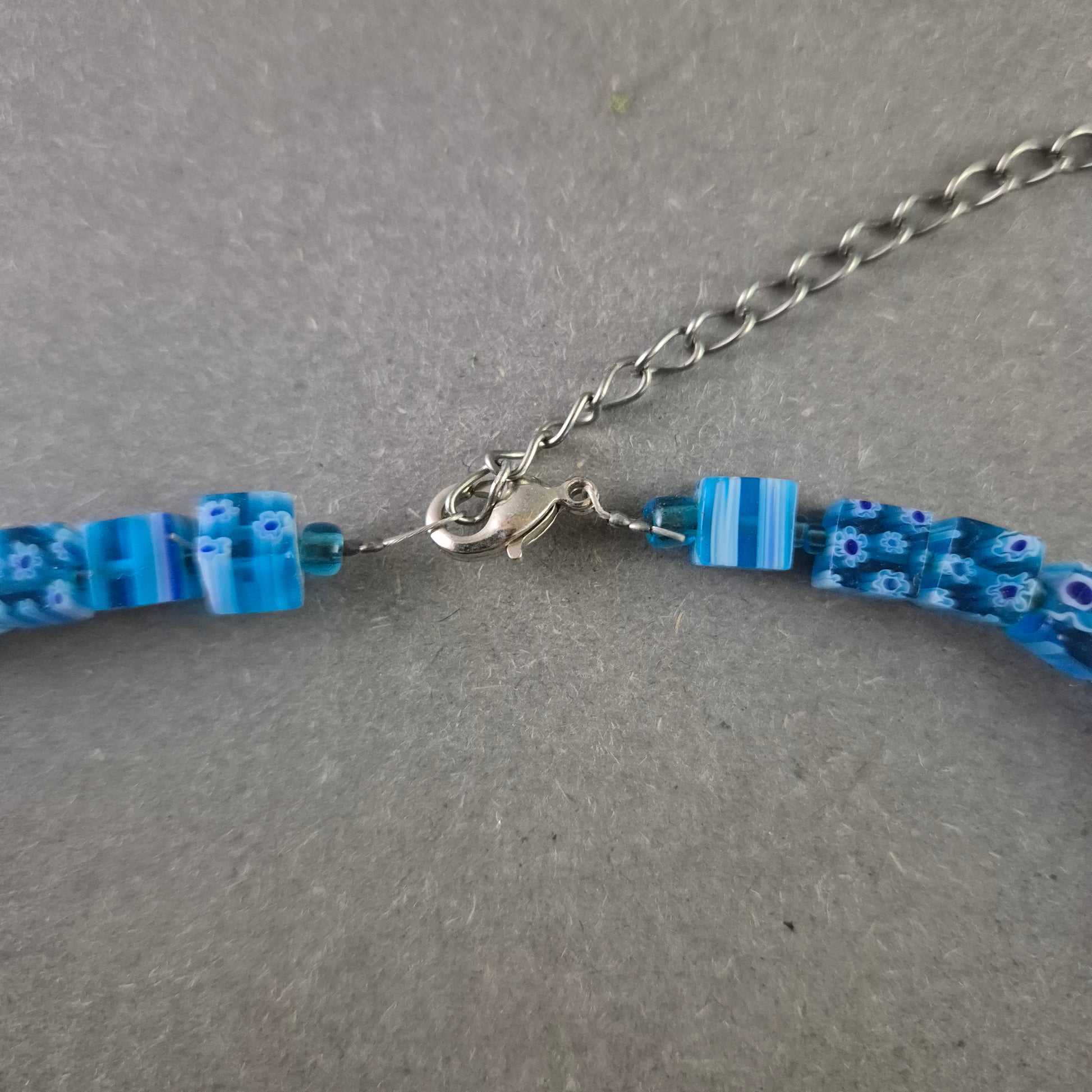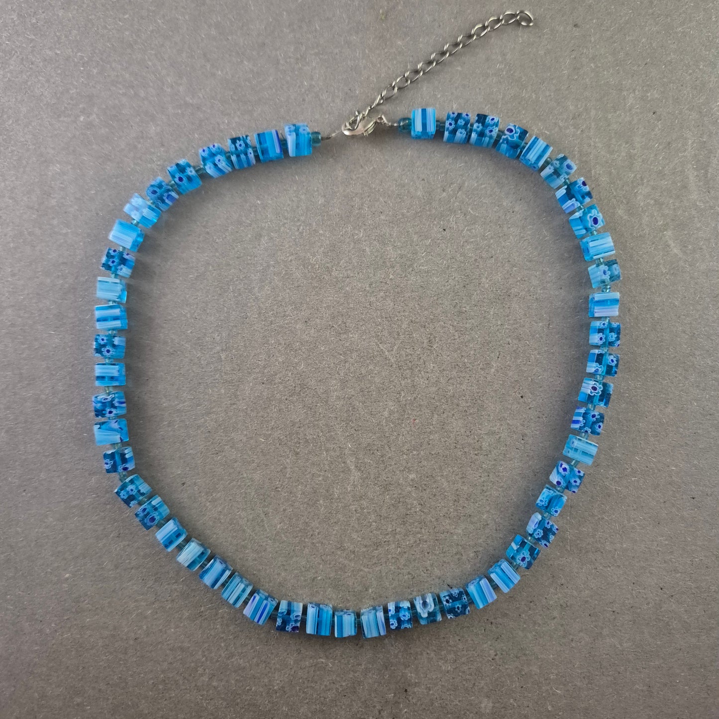 Blaue Millefiori Halskette – Farbspiel im Mosaik-Look