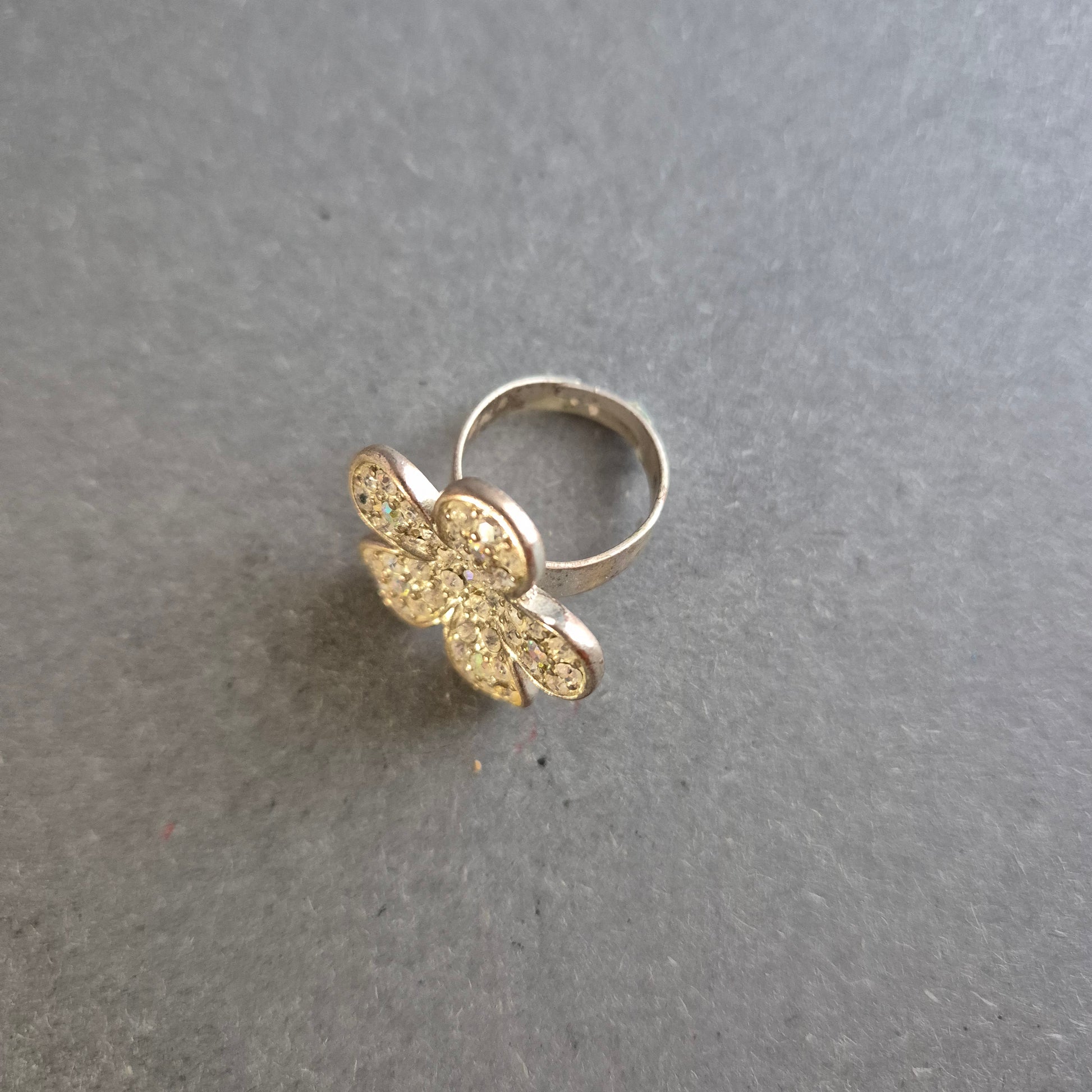 Blumenring mit Strass – Verstellbarer goldfarbener Vintage-Ring