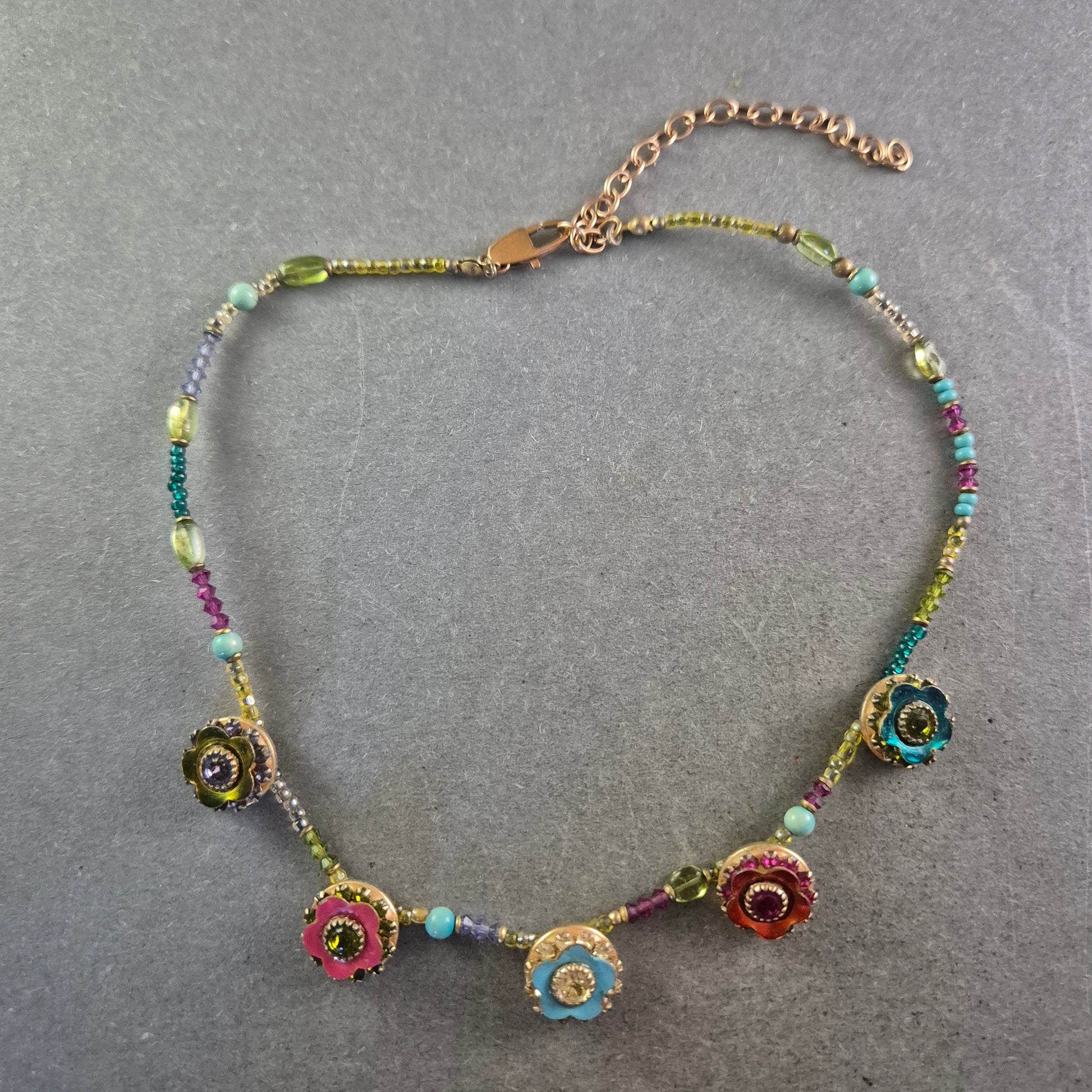 Bunte Damen Kette mit Blumenanhängern – Verspieltes Design