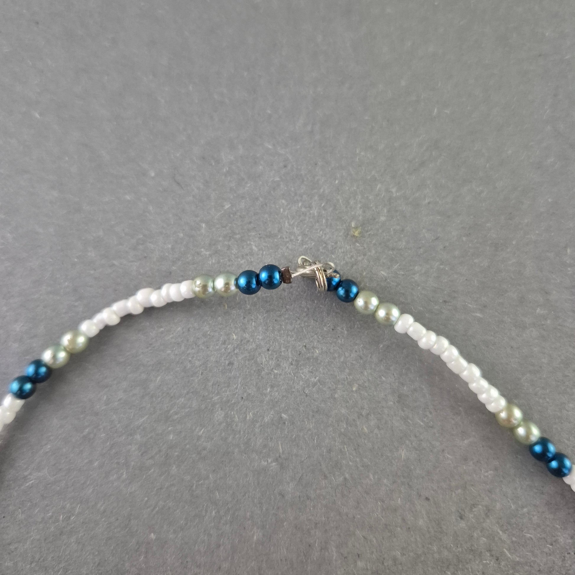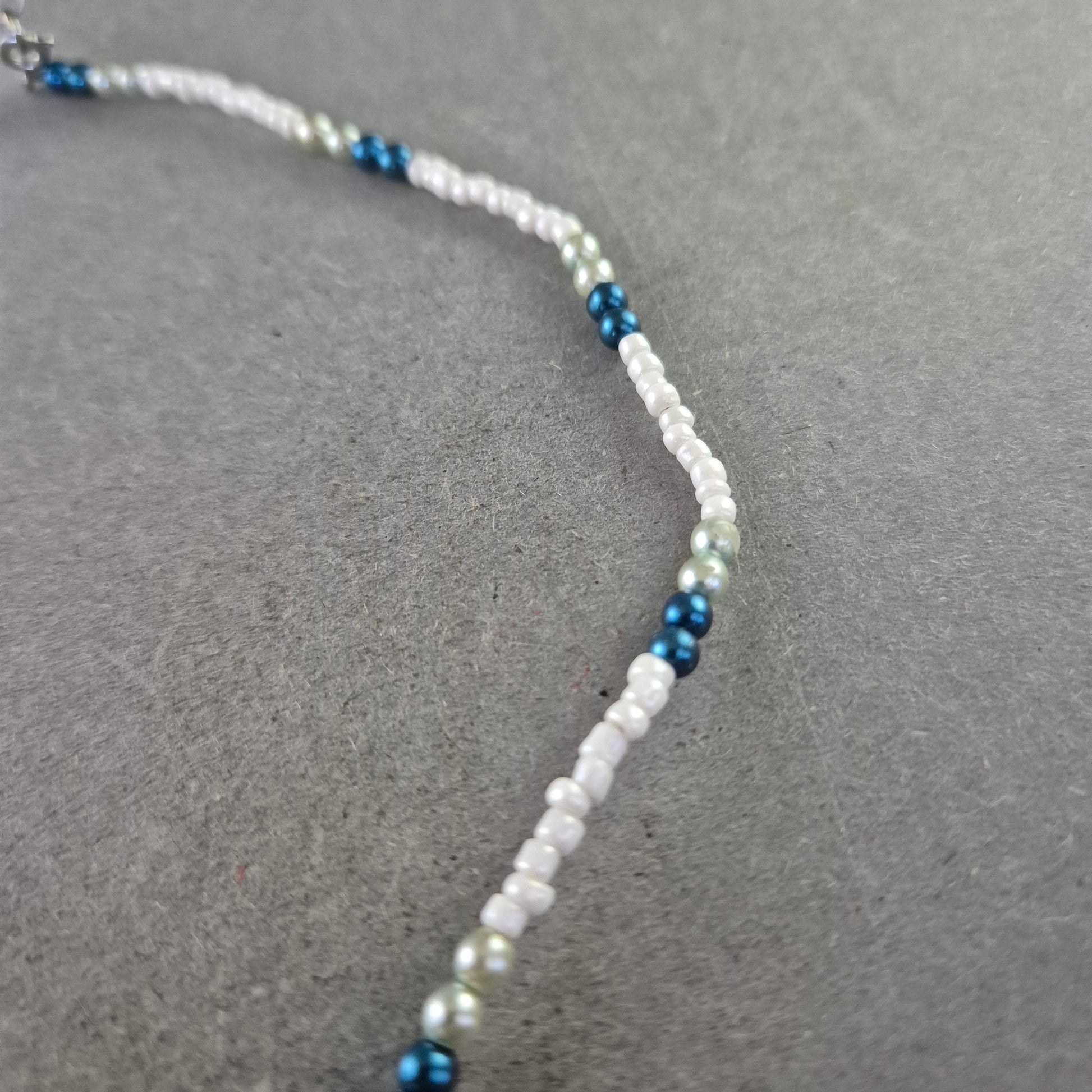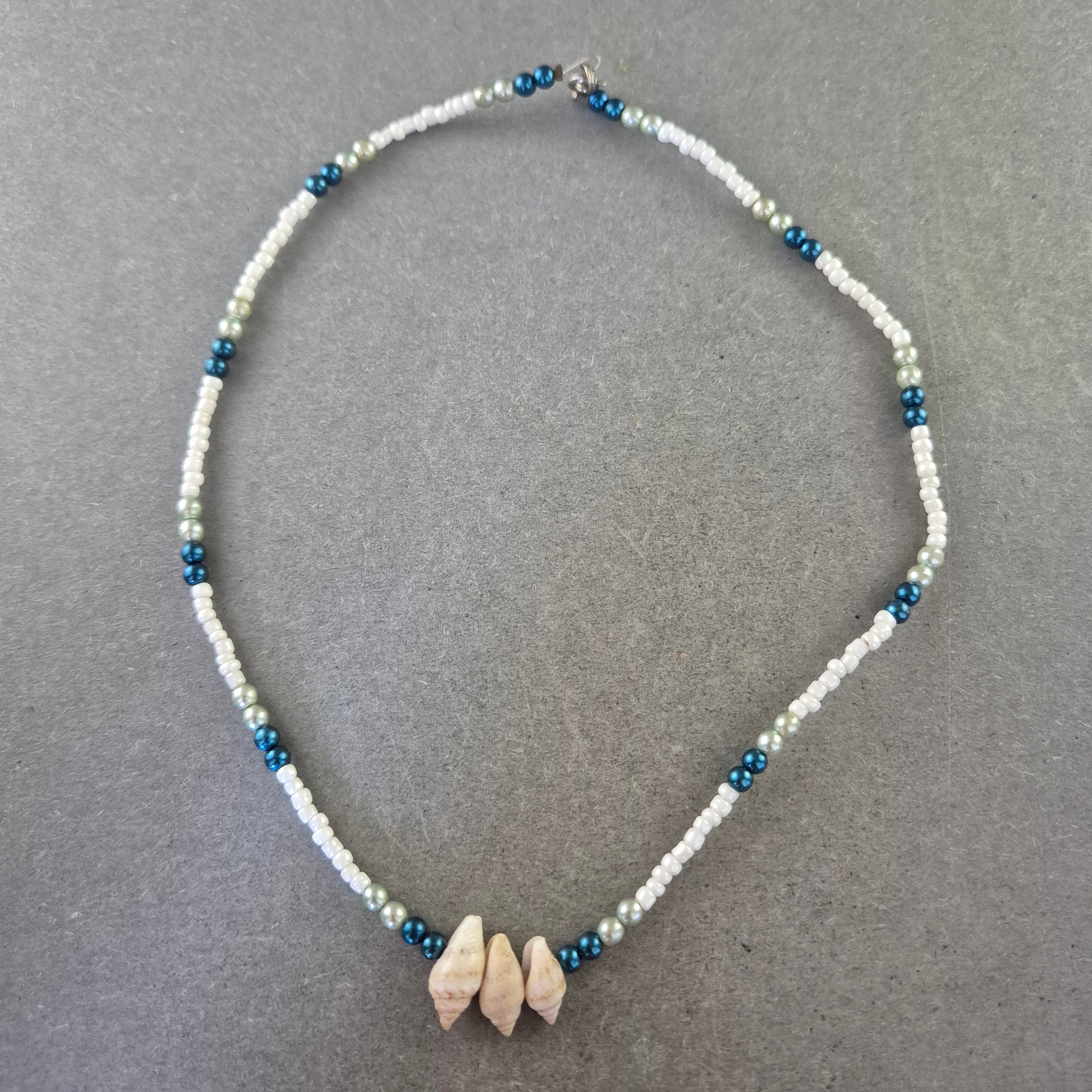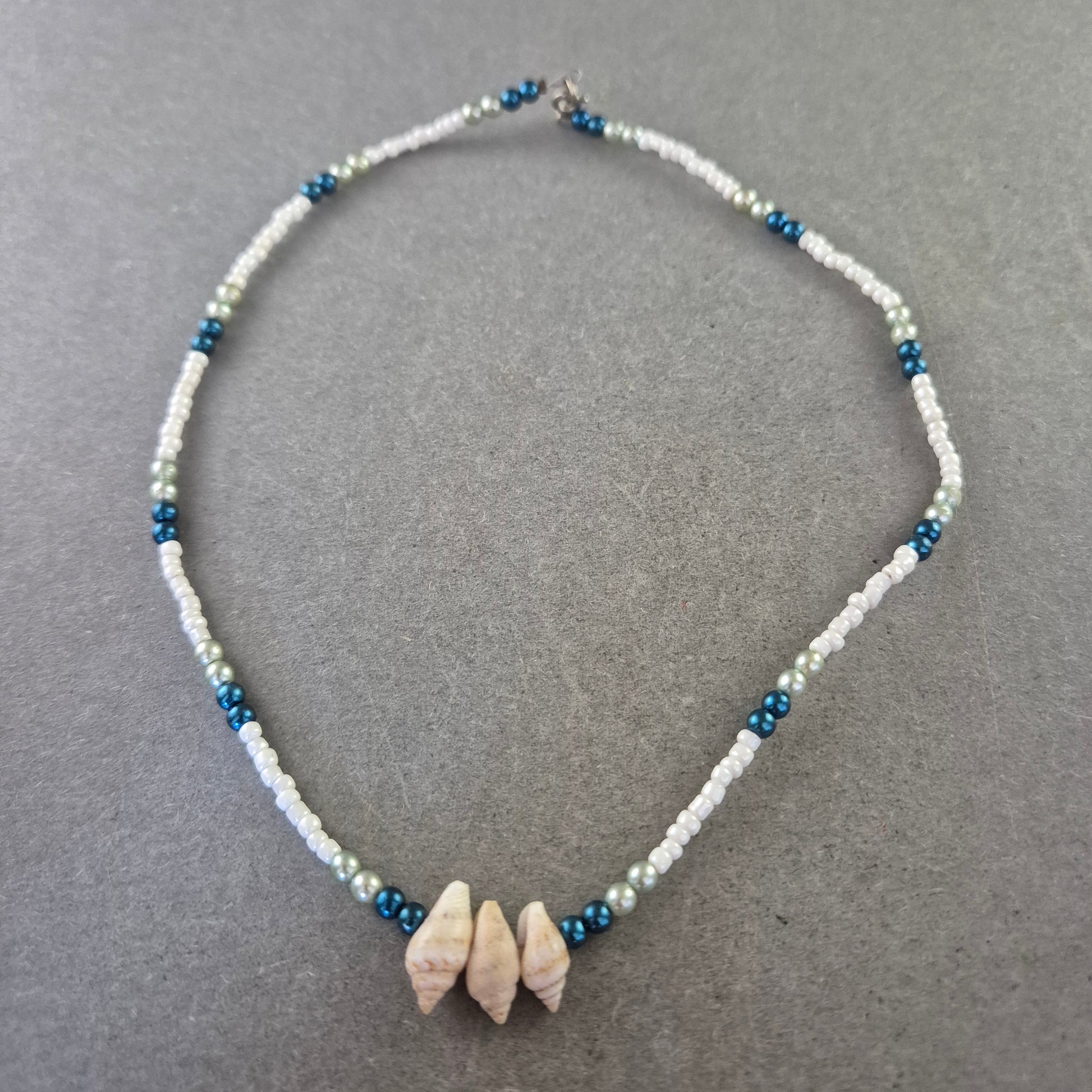 Diese verspielte Perlenkette bringt mit ihren zarten Farben und natürlichen Muschelelementen sommerliche Leichtigkeit in jedes Outfit. Weiße, grüne und blaue Perlen wechseln sich harmonisch ab und werden durch drei kleine Muscheln im Zentrum abgerundet. Perfekt für Strandtage oder als farbenfroher Akzent im Alltag.